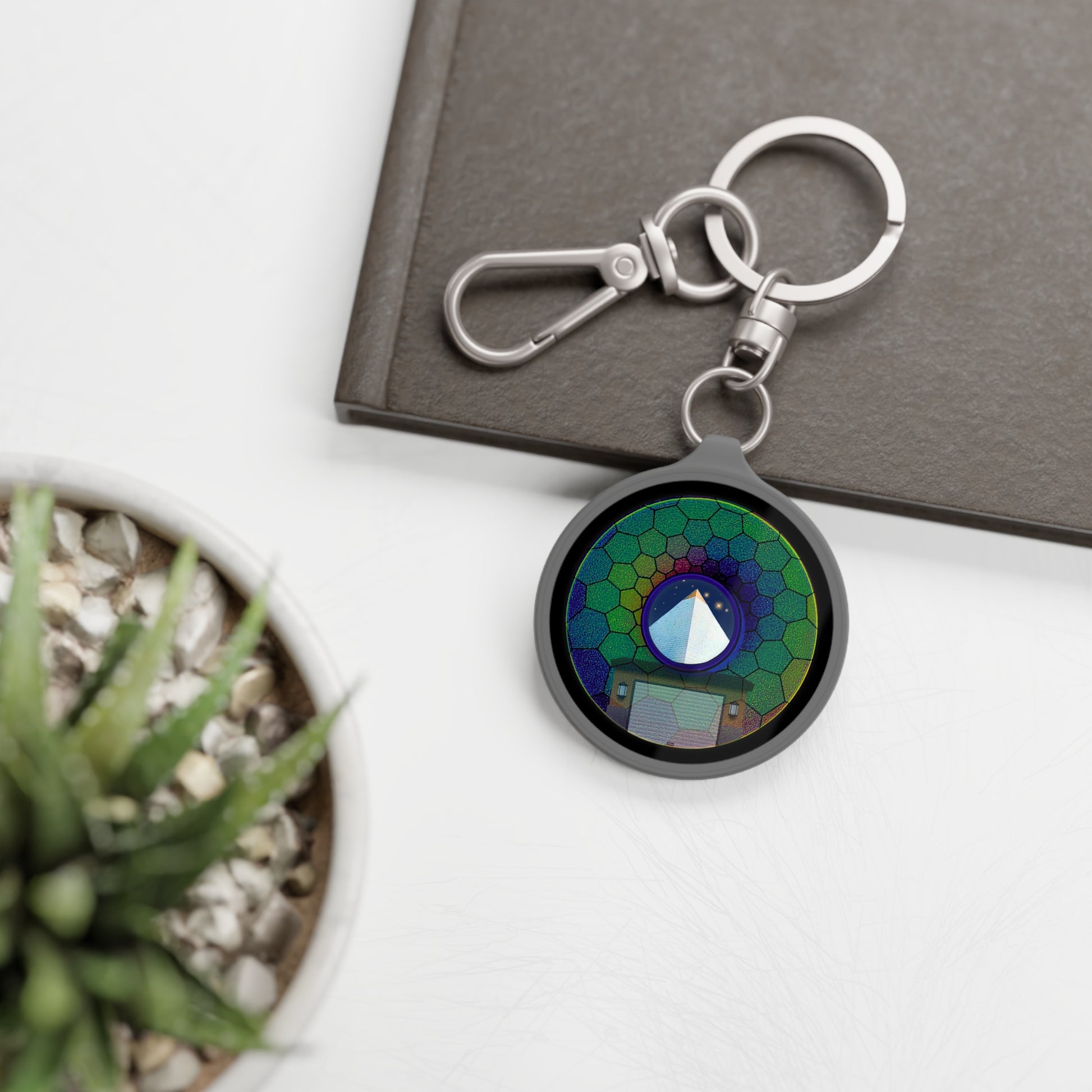 Lumpy Donut Keychain - "Limestone Donuts so Large" - series 1.0 - variant 6 - green hexadonut w/garage
