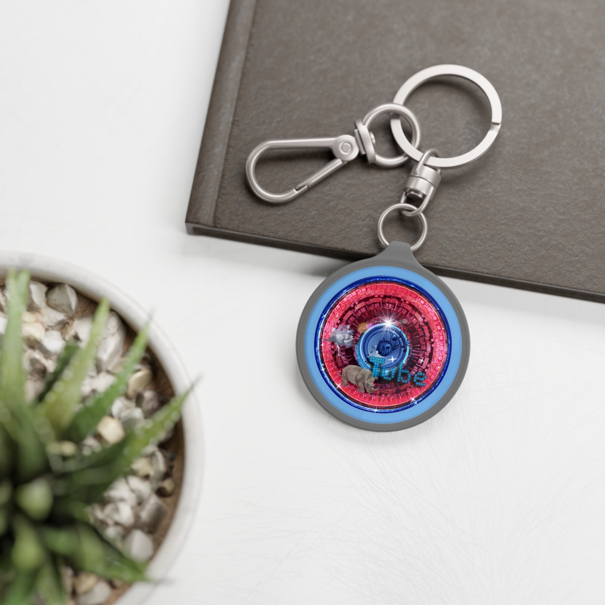 Lumpy Donut Keychain - "Rhinos Do Run From Thunder" - series 1.0 - variant 1 - red/blue donut
