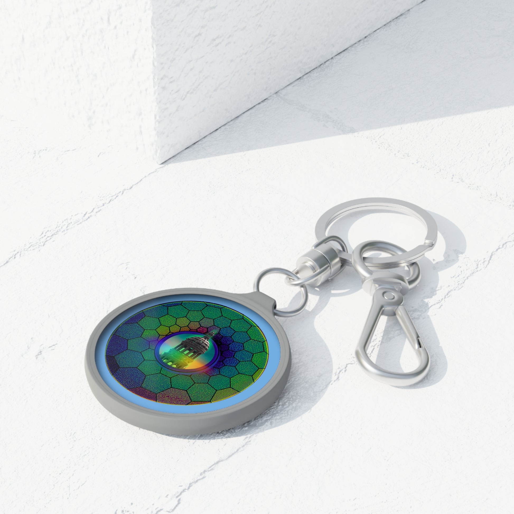 Lumpy Donut Keychain - "Save the Mondegreen City Hall Clock Tower" - series 1.0 - variant 2 - green hexadonut