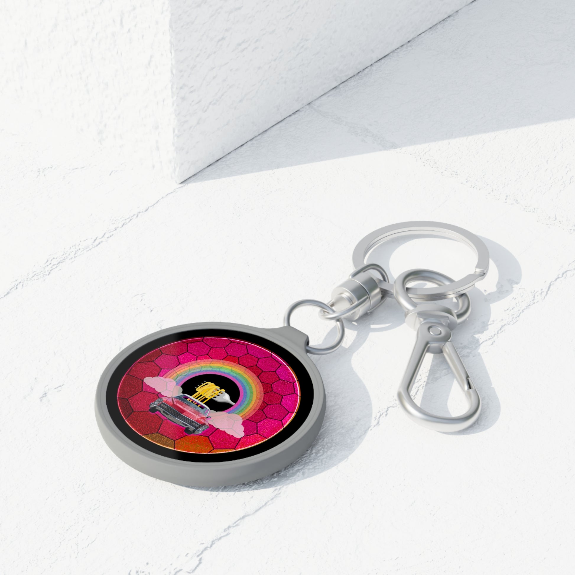 Lumpy Donut Keychain - "Spaghetti Incident in my Caddy" - series 1.0 - variant 3 - magenta hexadonut - w/red Caddy