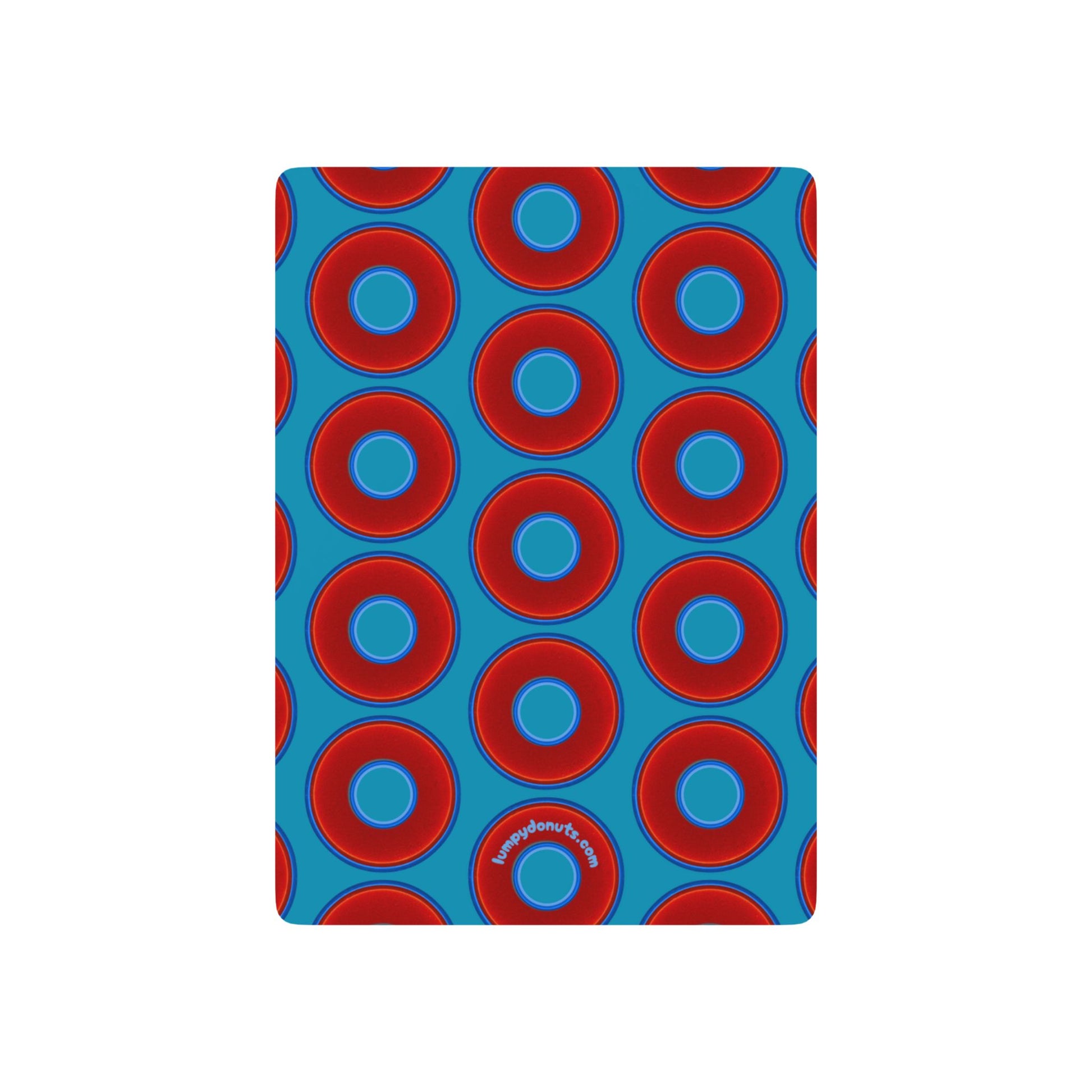 Lumpy Donut Playing Decks - 52-cards - red vivid donuts w/aquamarine blue background