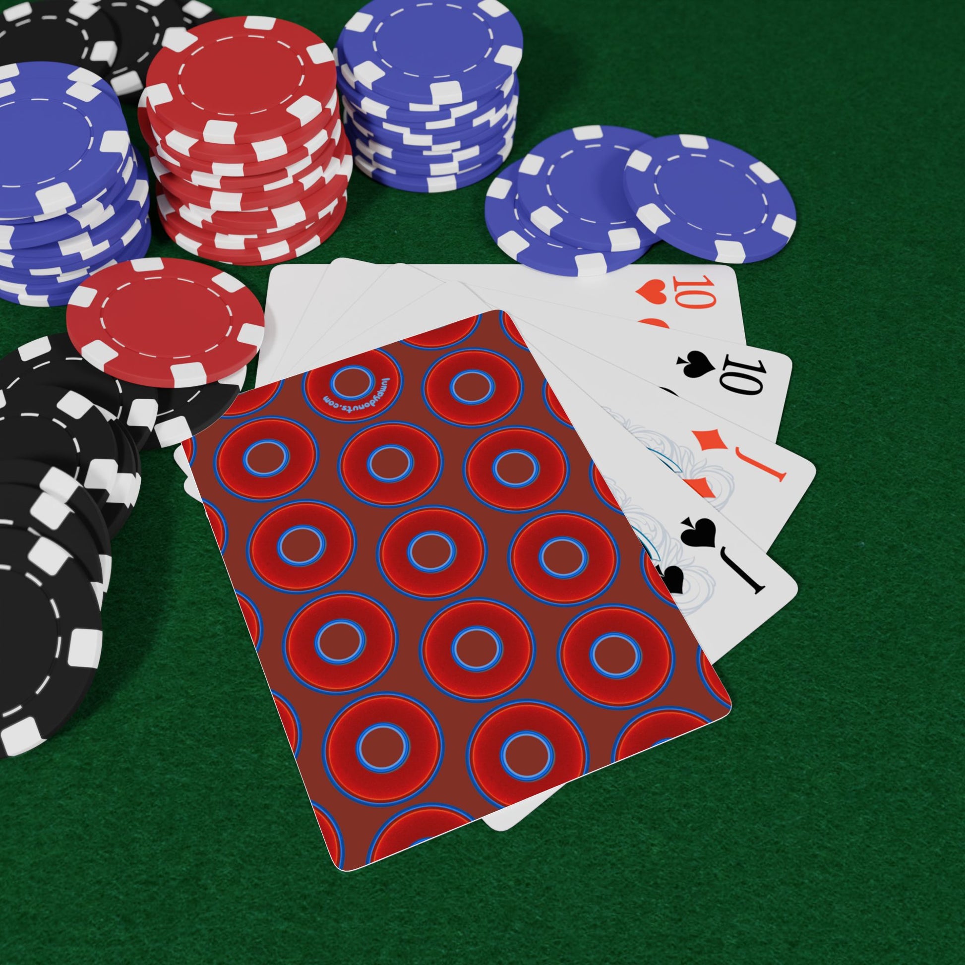 Lumpy Donut Playing Decks - 52-cards - red vivid donuts w/burnt umber background