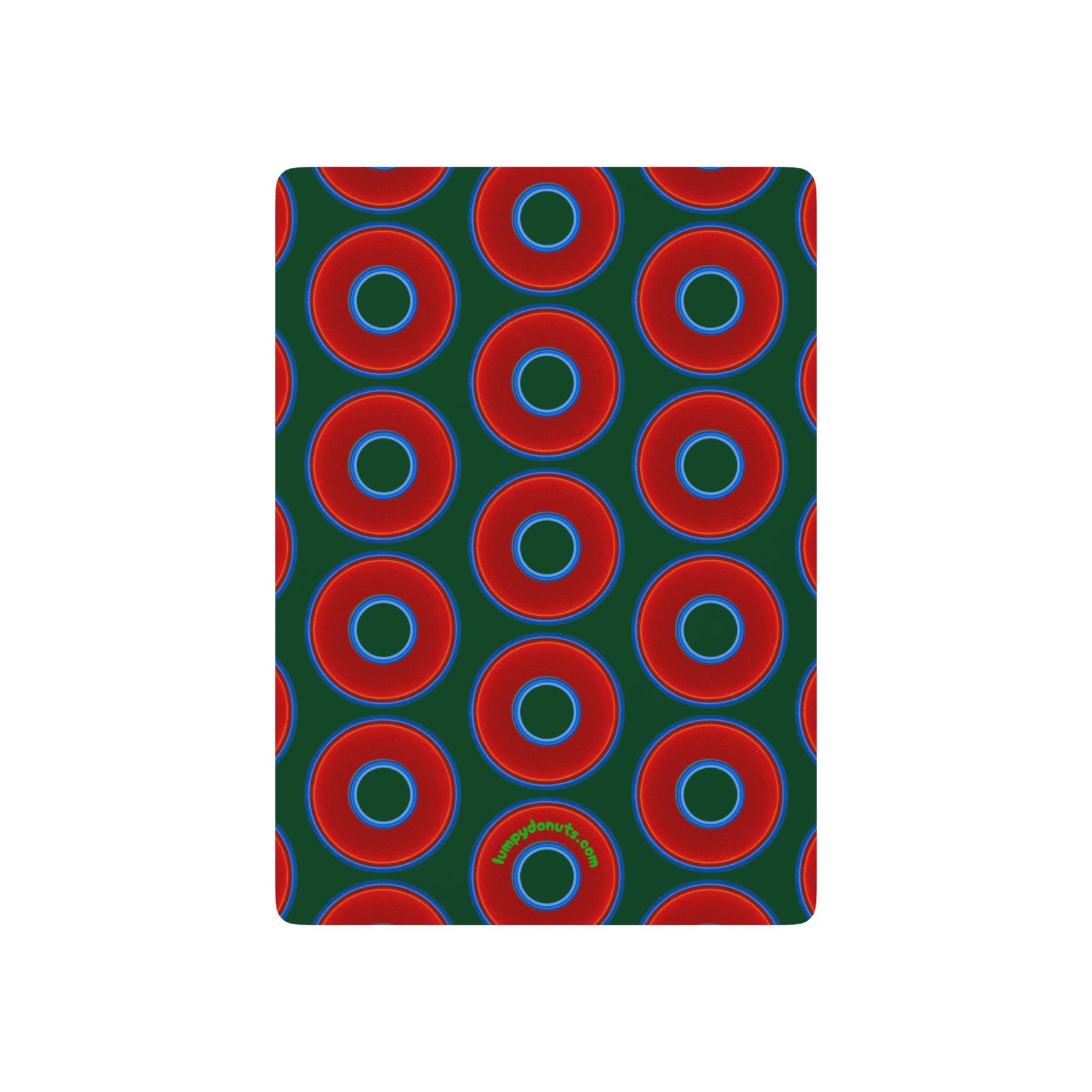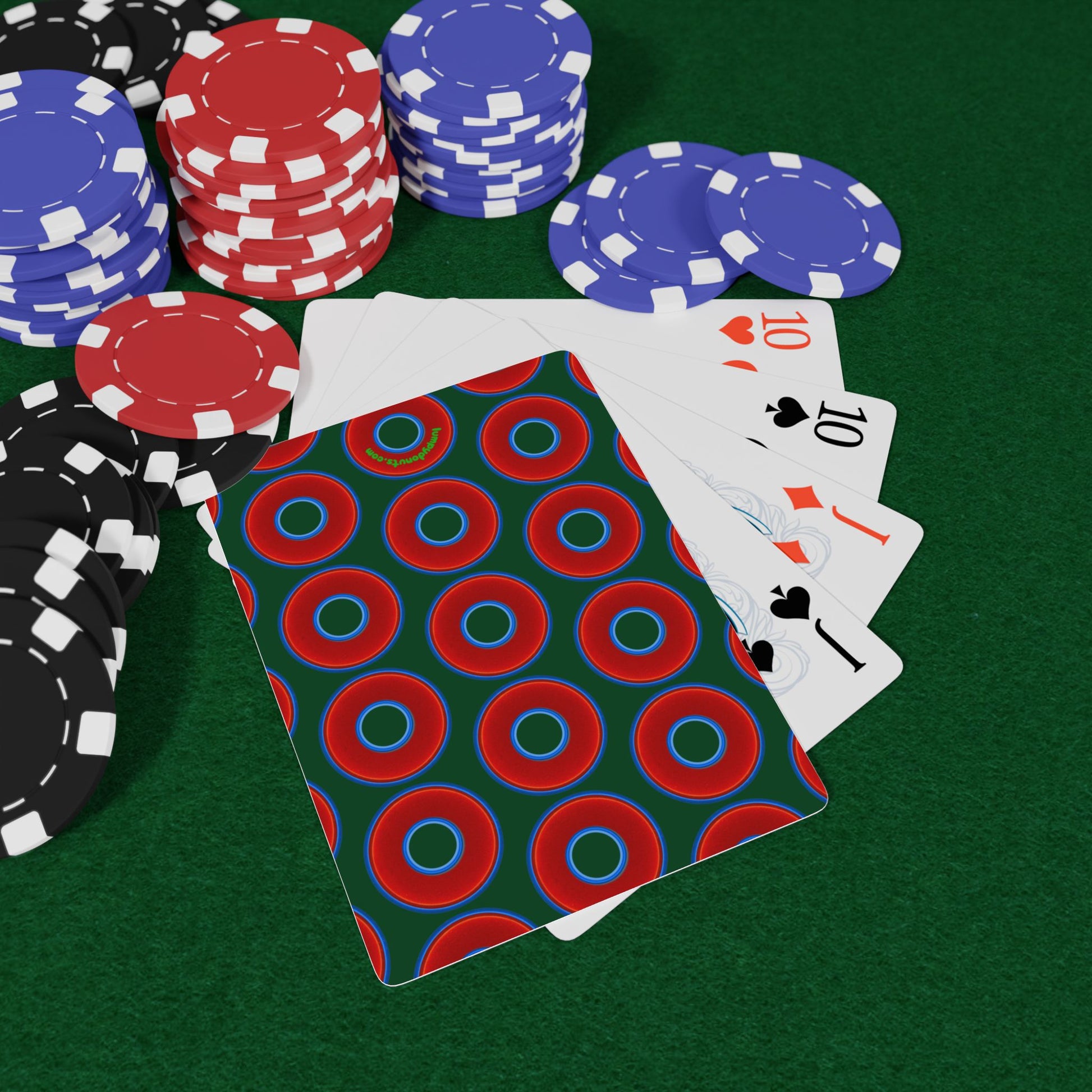 Lumpy Donut Playing Decks - 52-cards - red vivid donuts w/deep pond green background