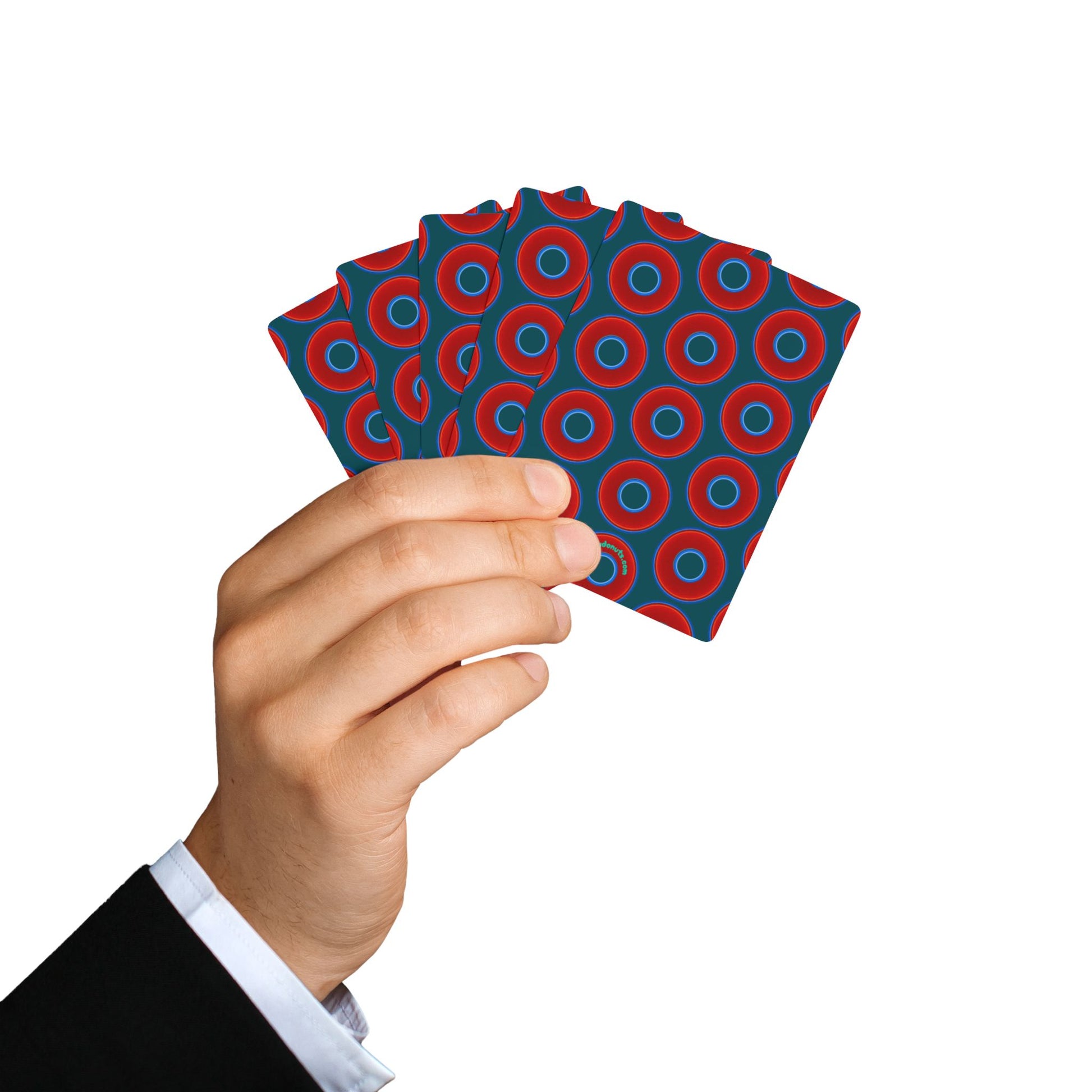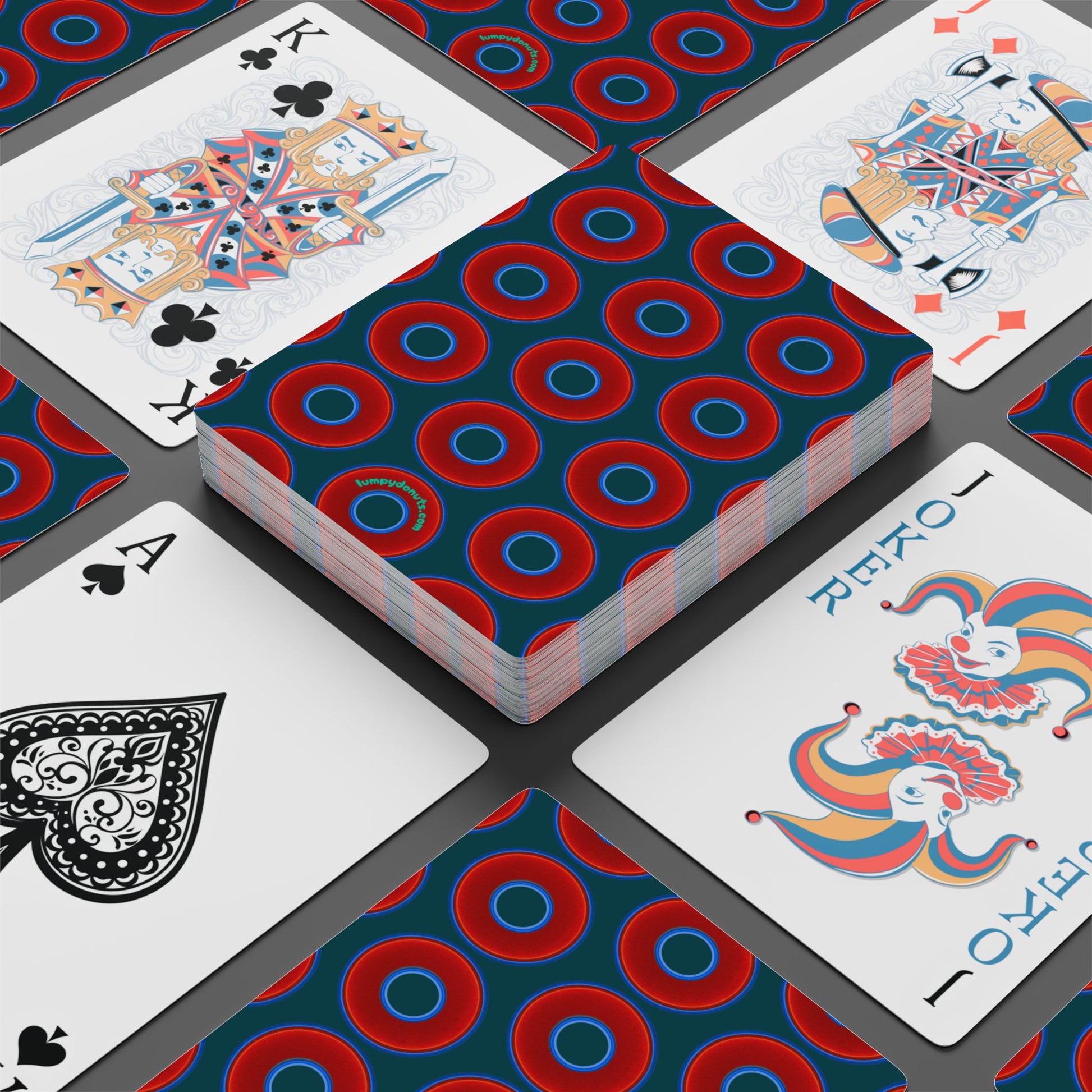 Lumpy Donut Playing Decks - 52-cards - red vivid donuts w/midnight green background