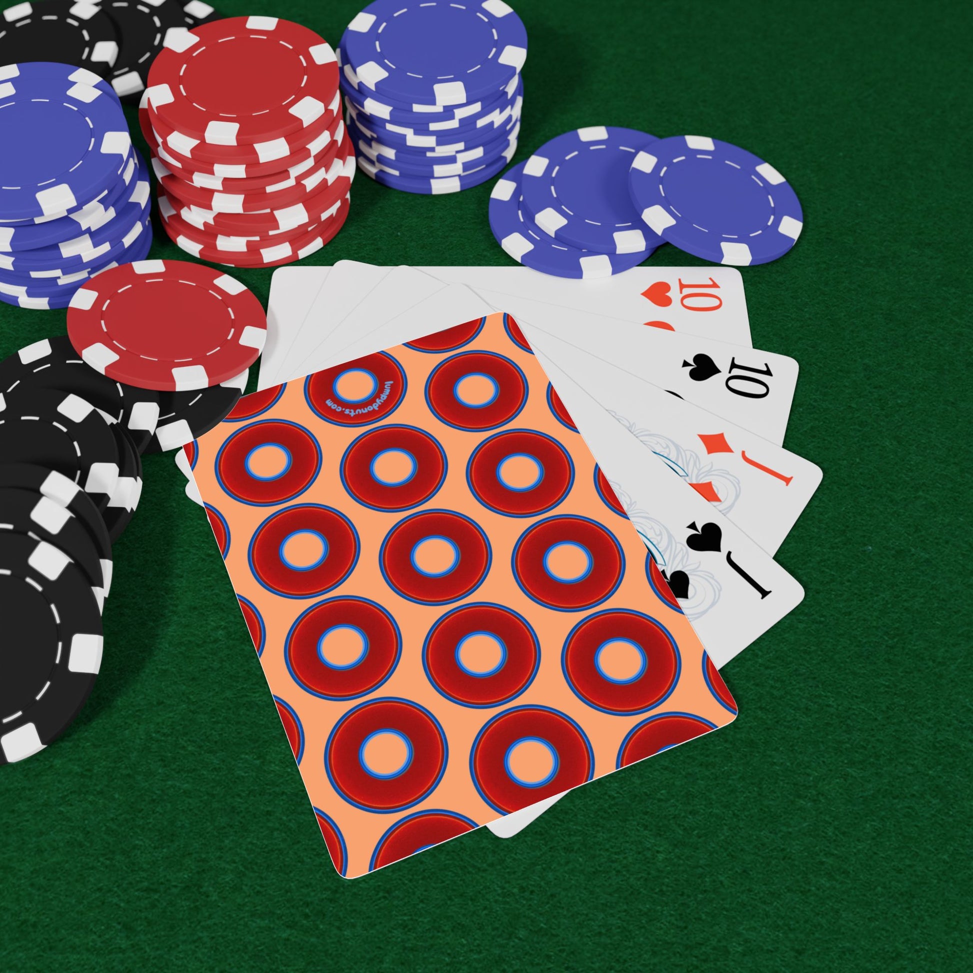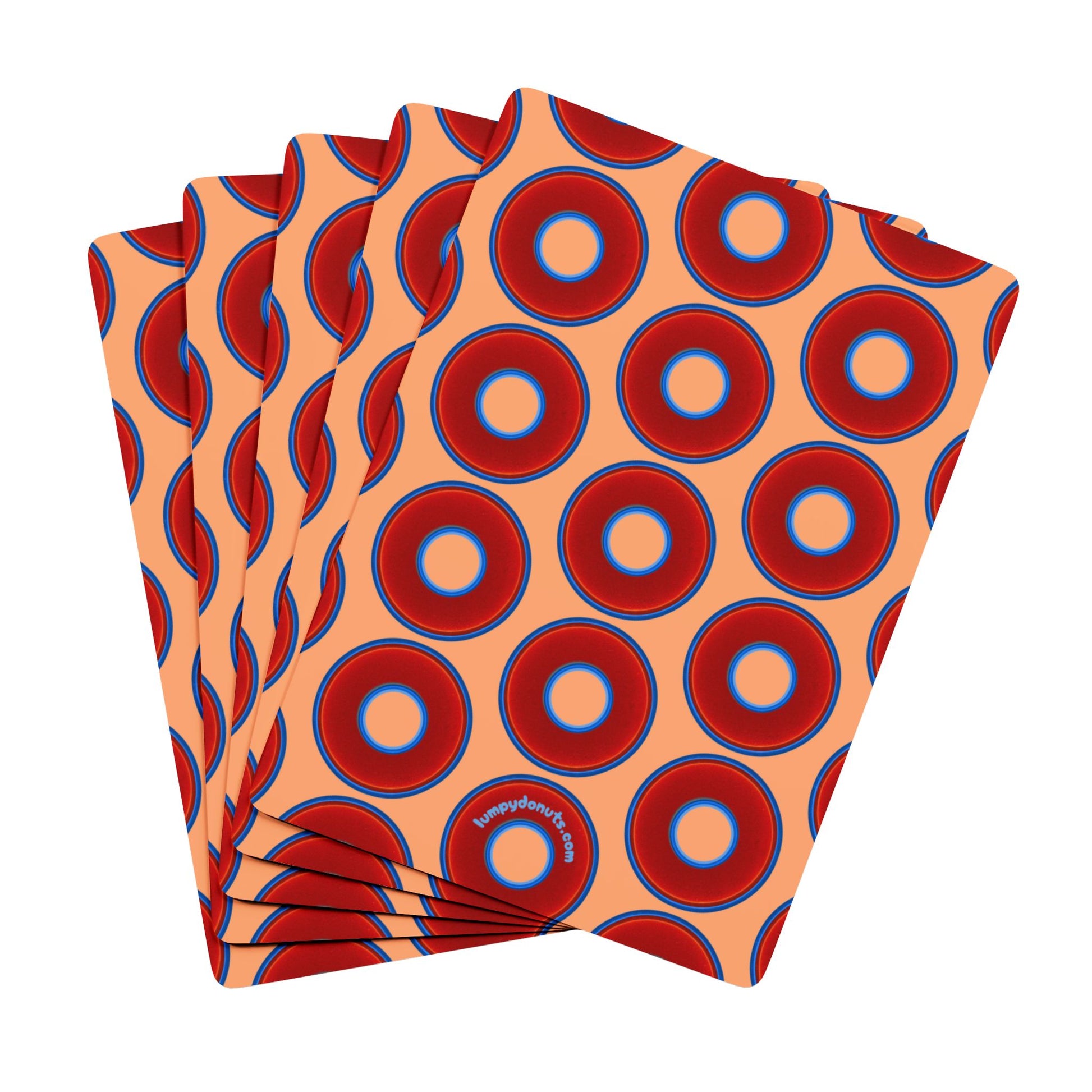 Lumpy Donut Playing Decks - 52-cards - red vivid donuts w/peach background