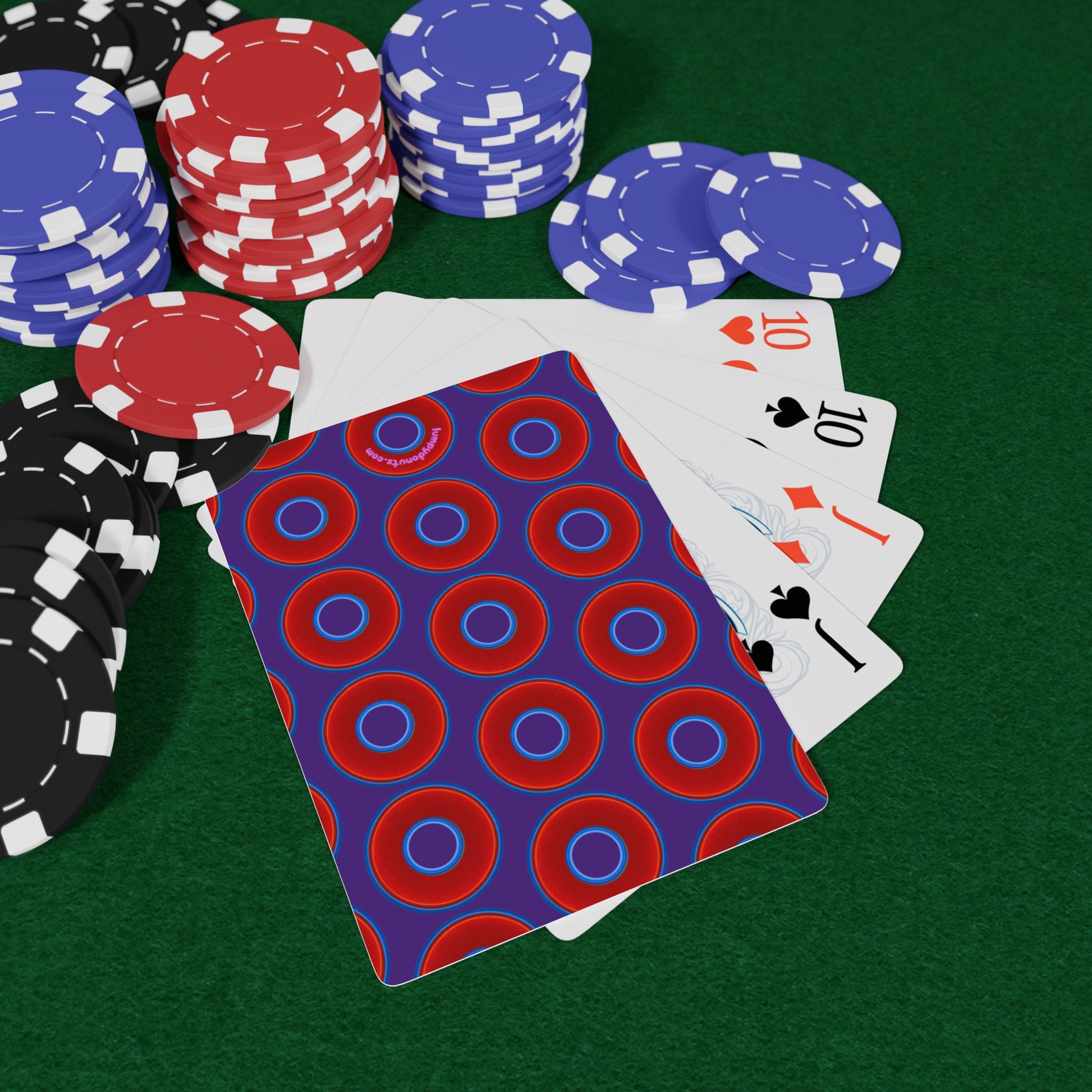 Lumpy Donut Playing Decks - 52-cards - red vivid donuts w/purple background