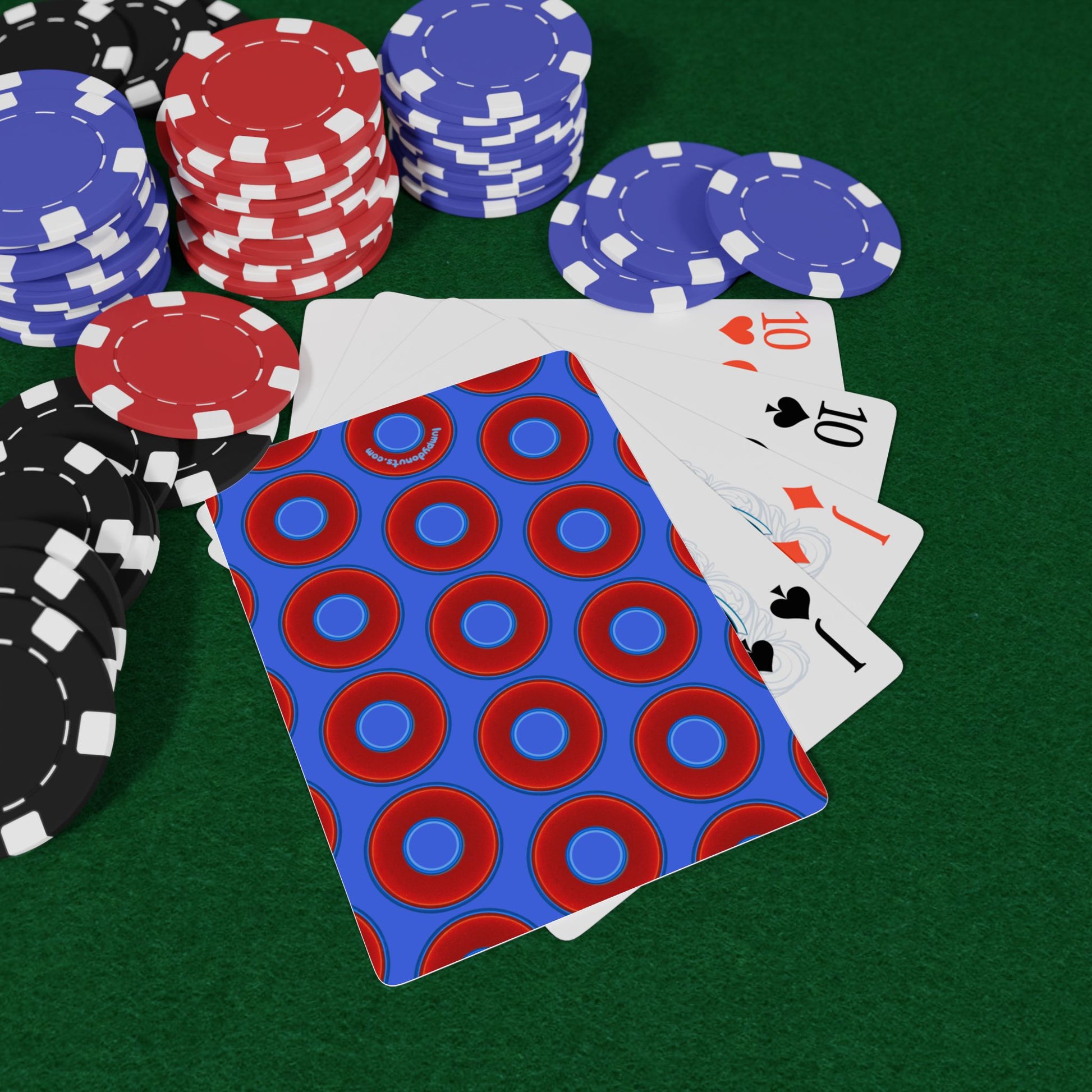 Lumpy Donut Playing Decks - 52-cards - red vivid donuts w/royal blue background