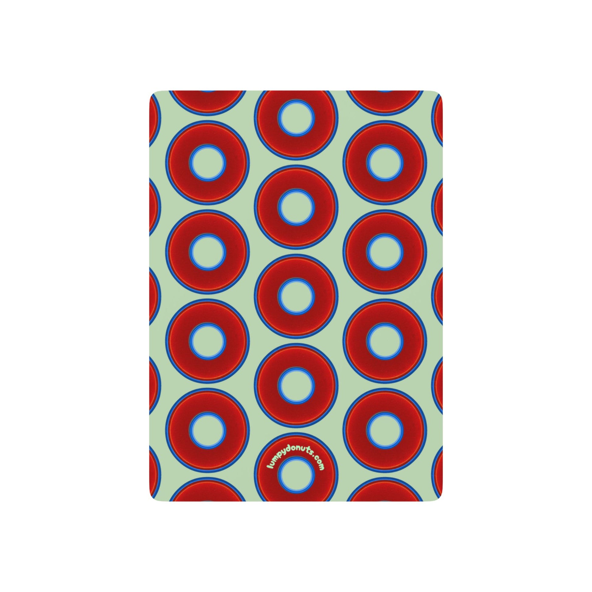 Lumpy Donut Playing Decks - 52-cards - red vivid donuts w/seafoam green background