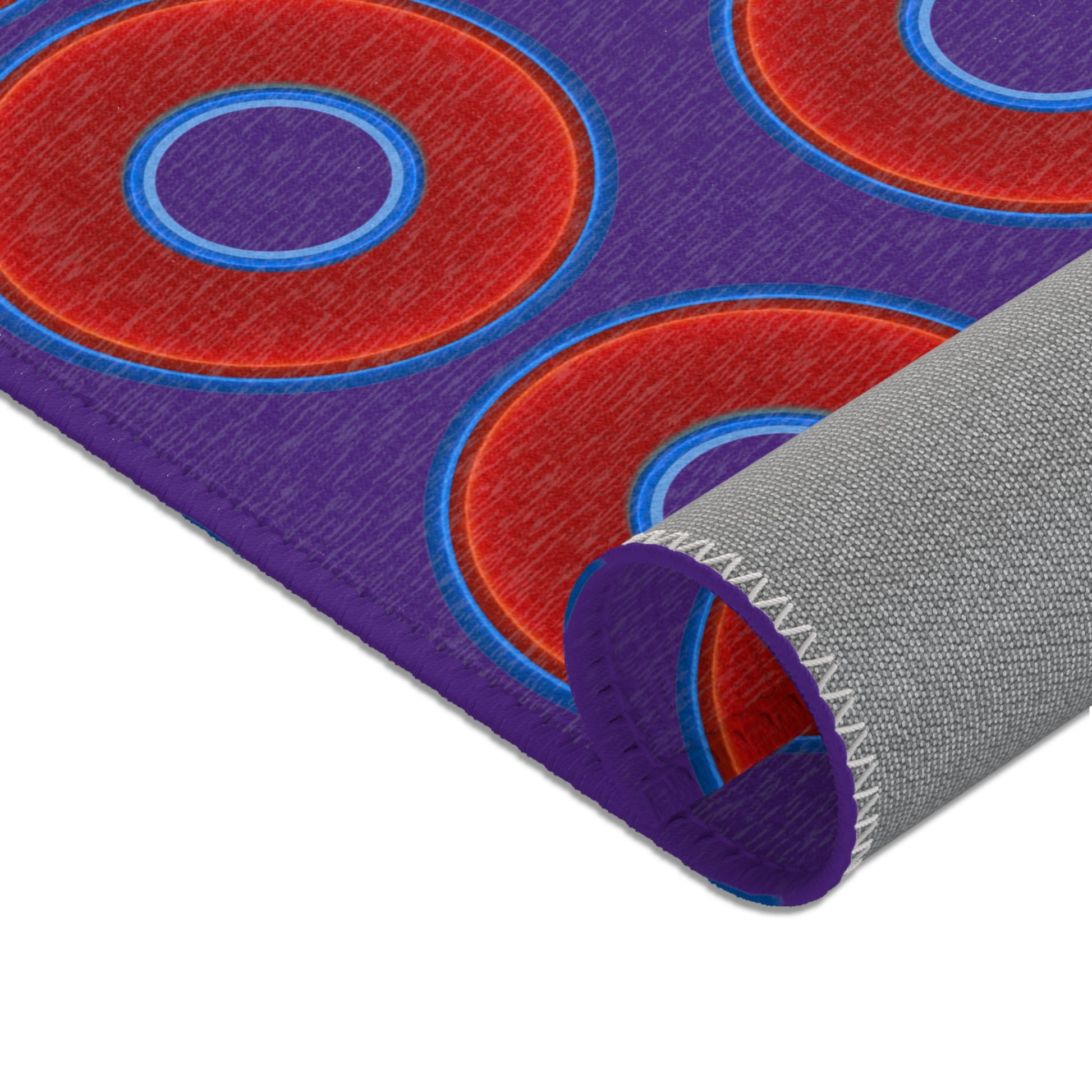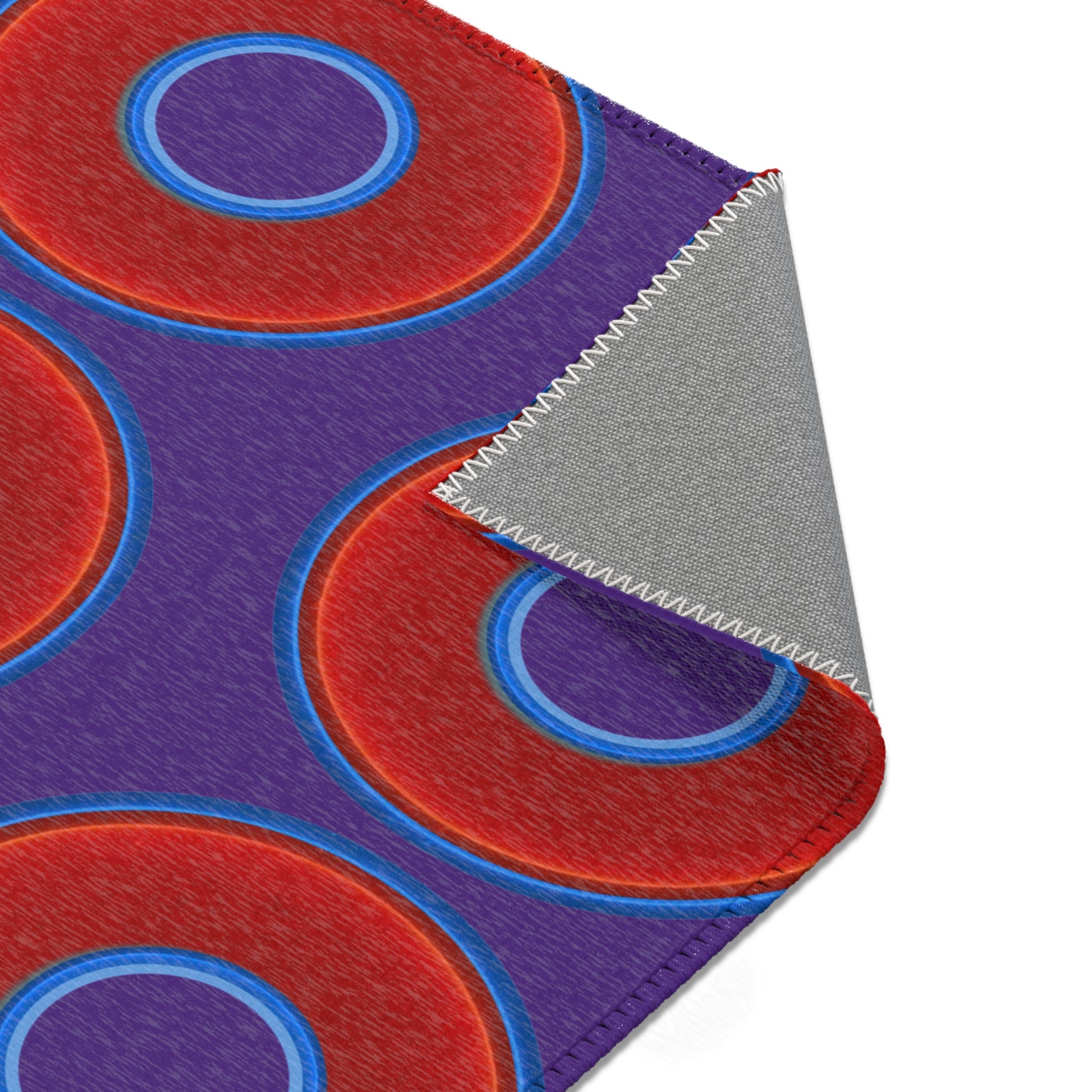 Lumpy Donut Print Rug - choice of 3 sizes - vivid red donut print w/purple background