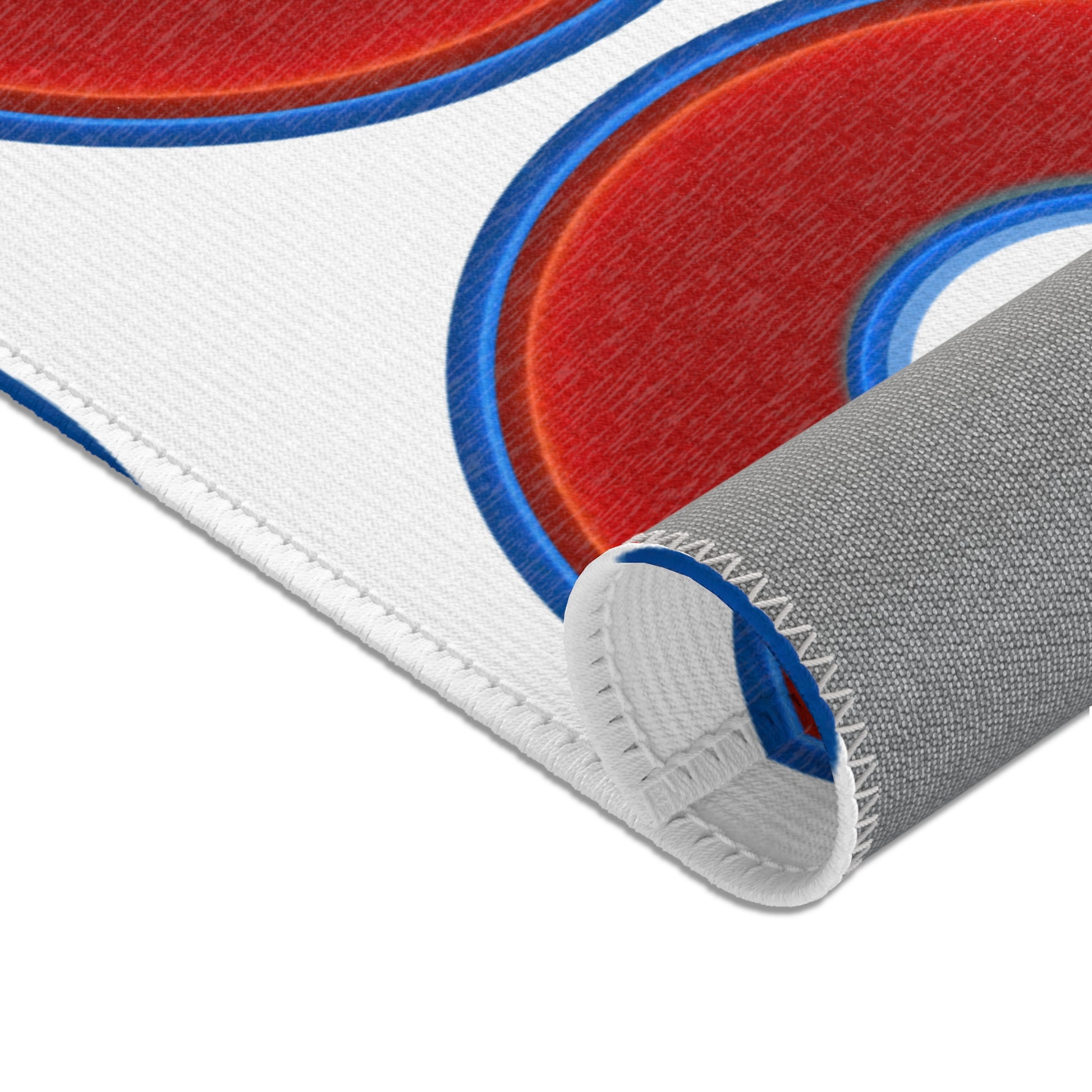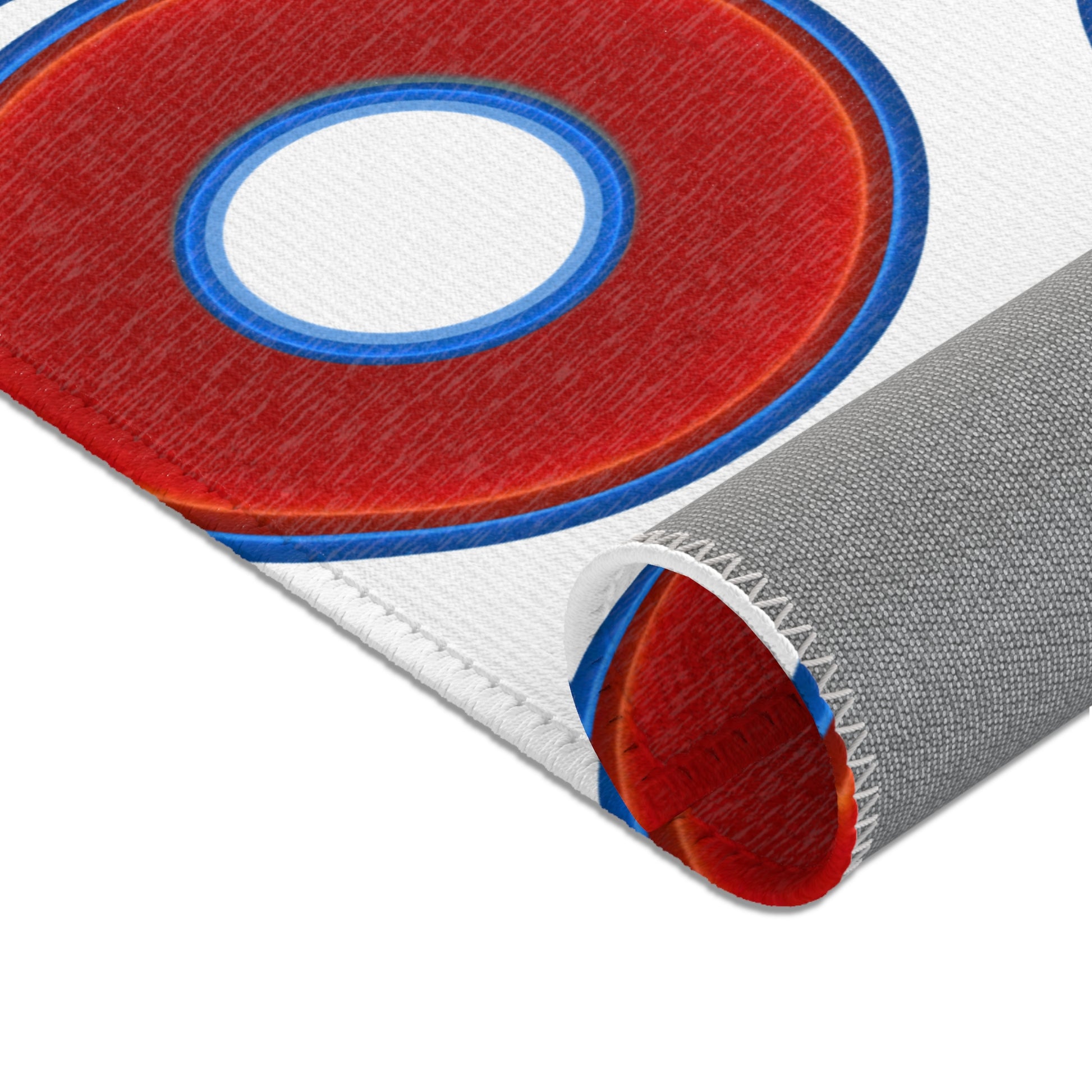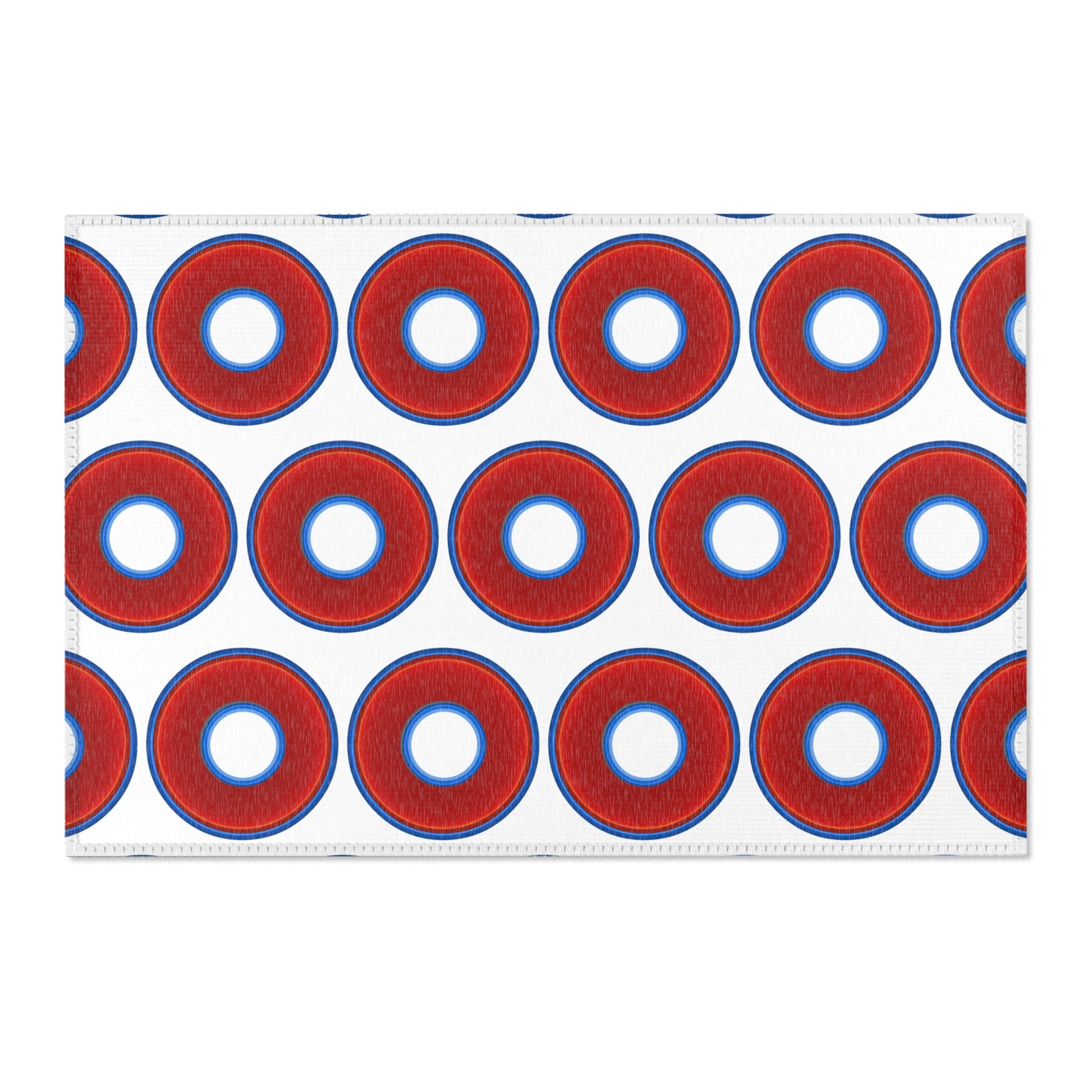 Lumpy Donut Print Rug - choice of 3 sizes - vivid red donut print w/white background