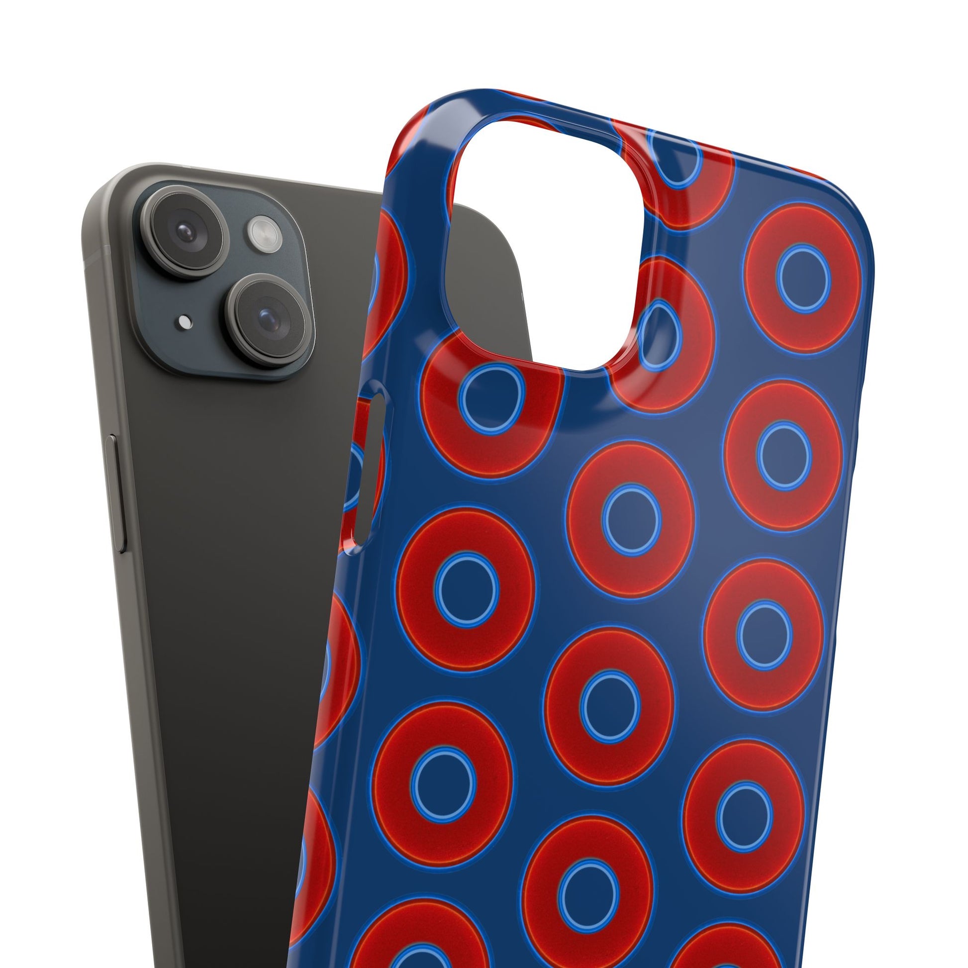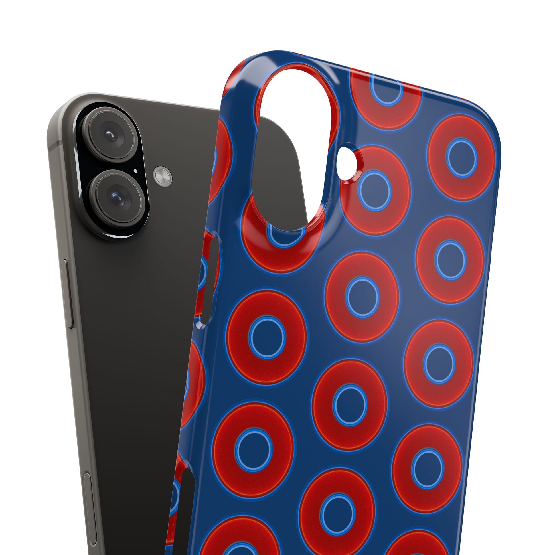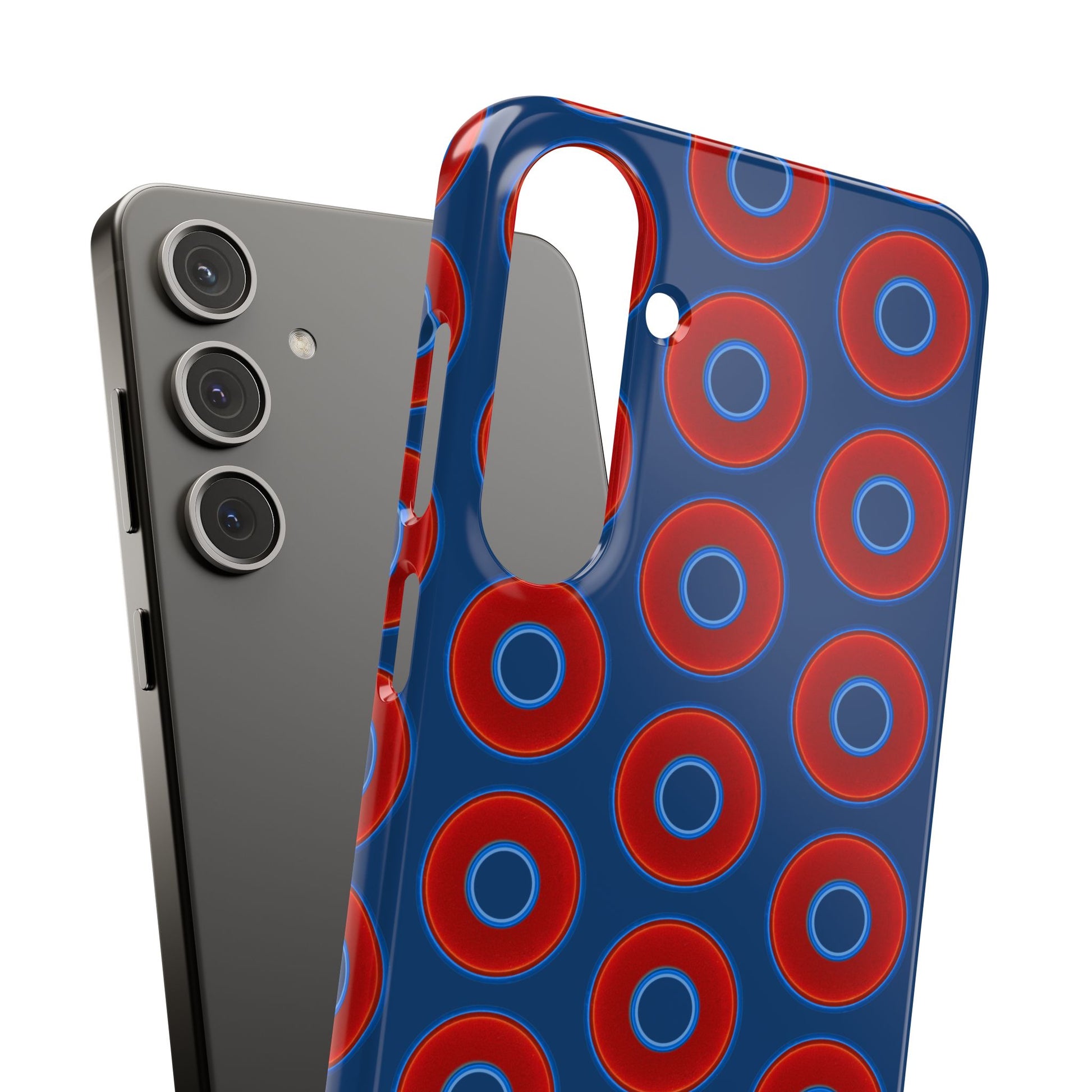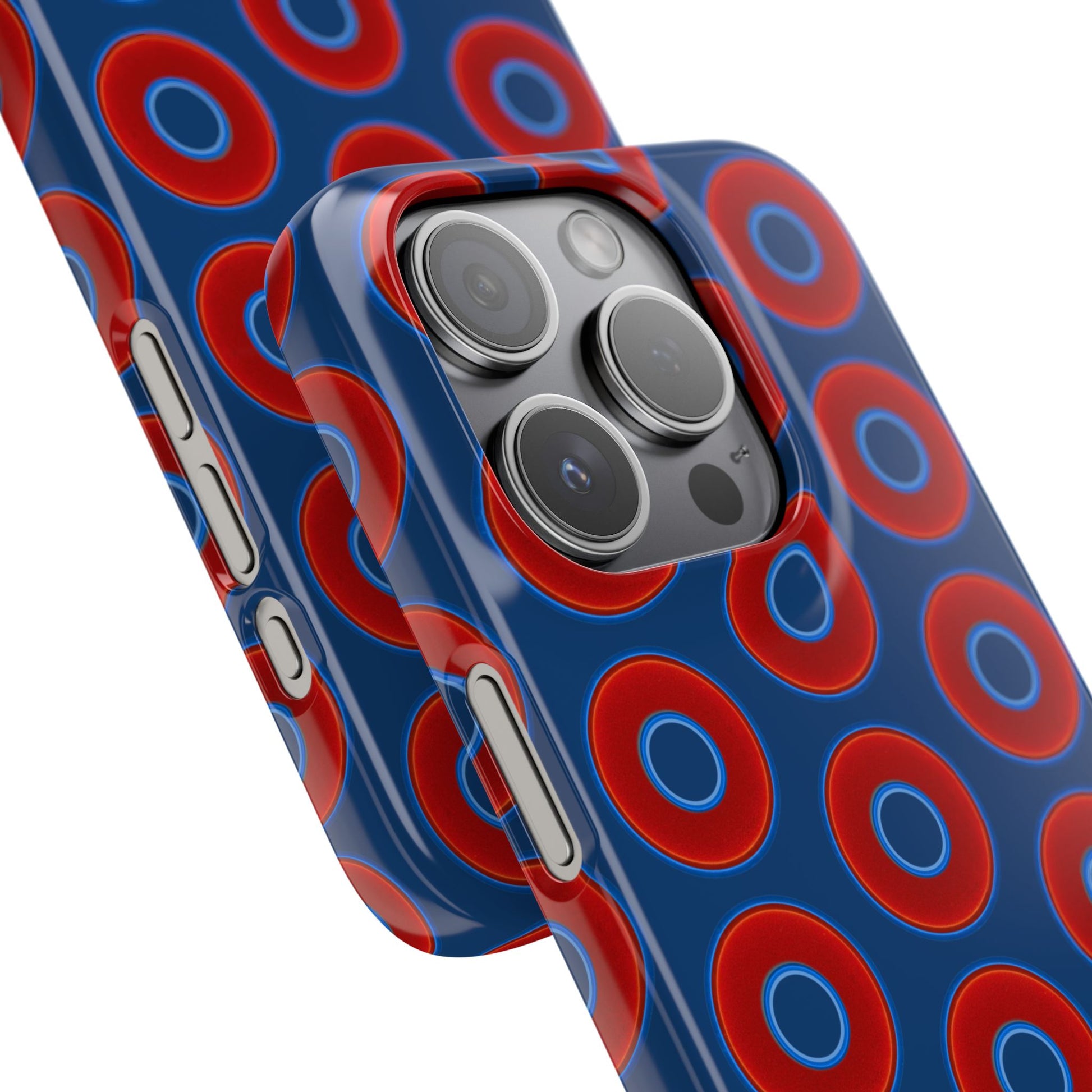 Lumpy Donut Snap Case - red vivid donut print w/Atlantic navy blue background