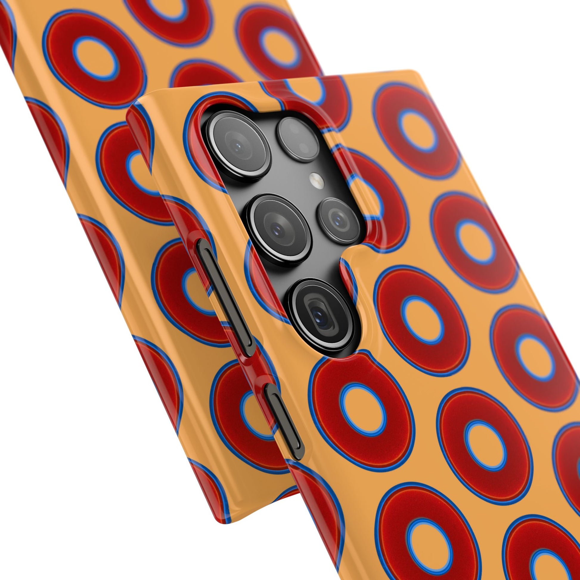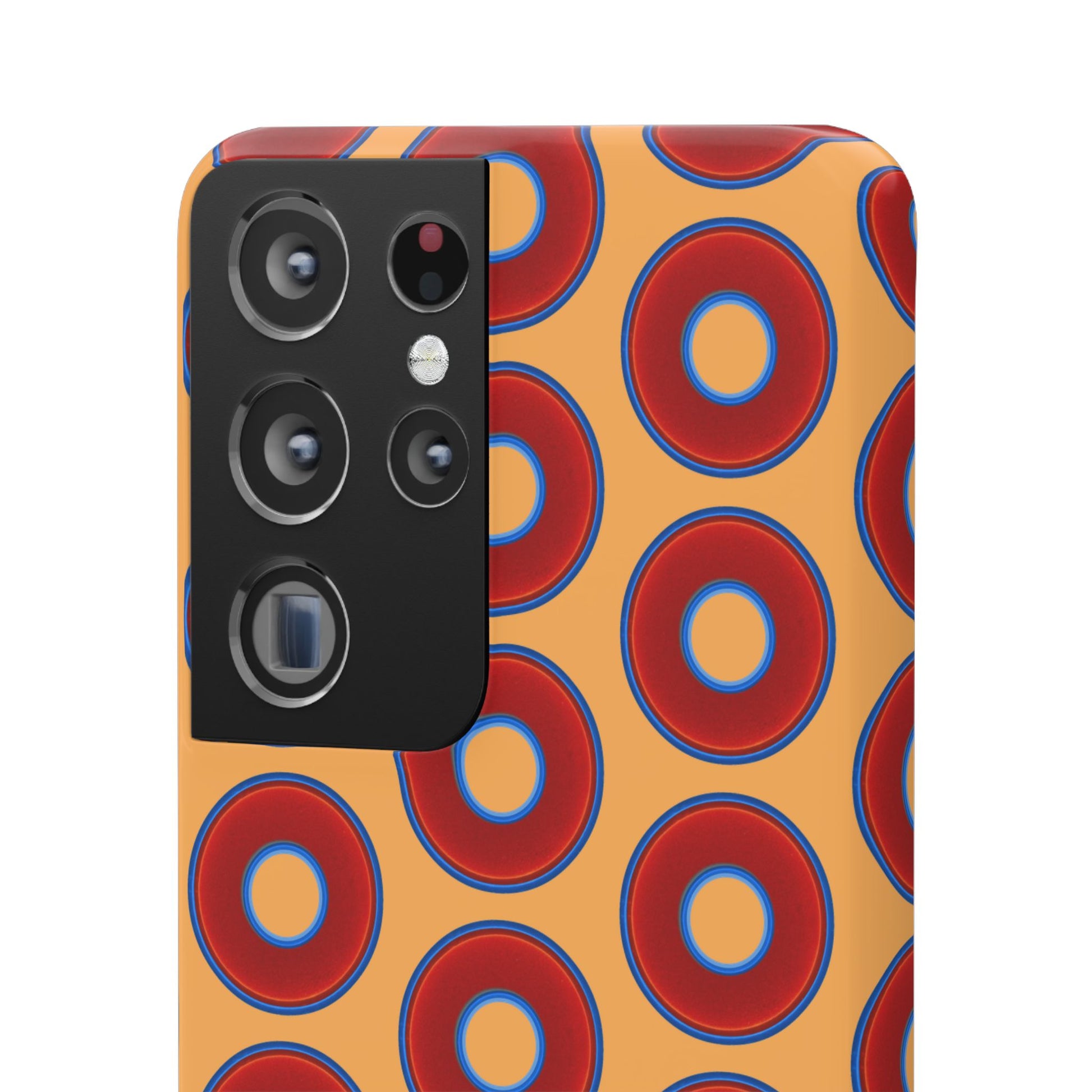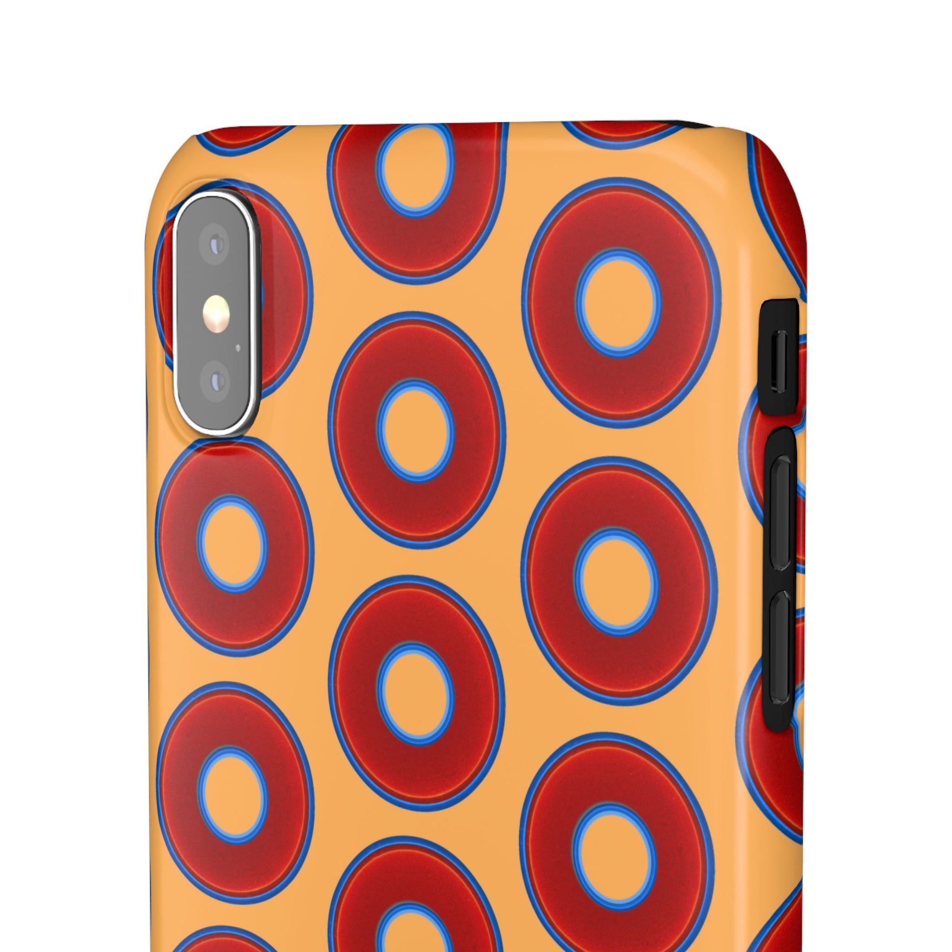 Lumpy Donut Snap Case - red vivid donut print w/creamcicle orange background