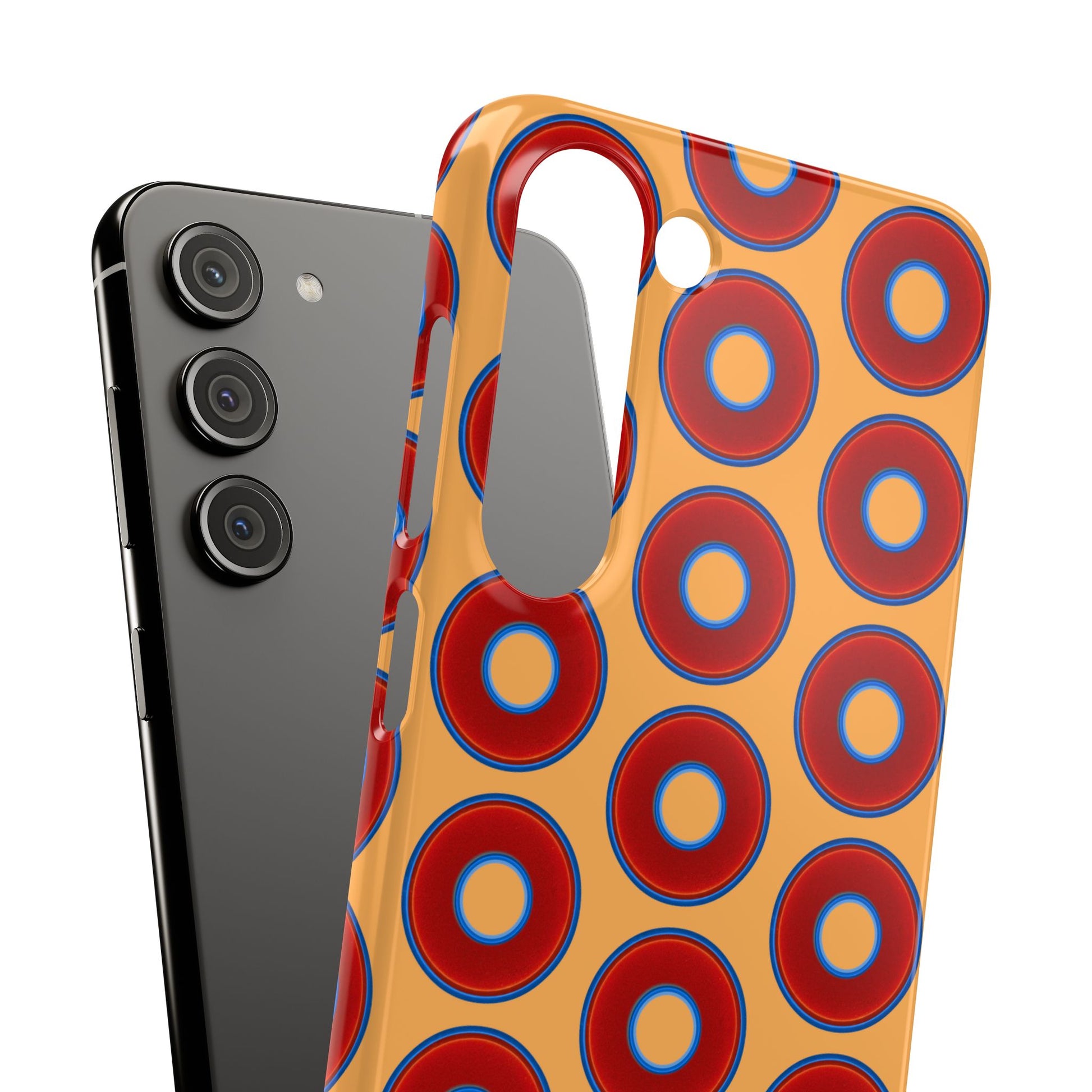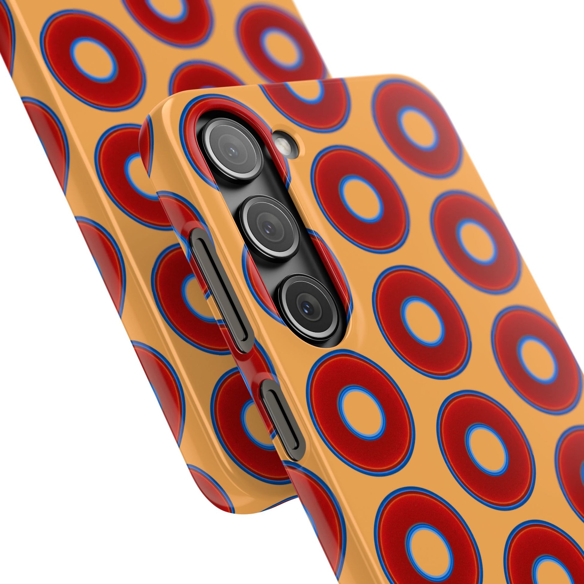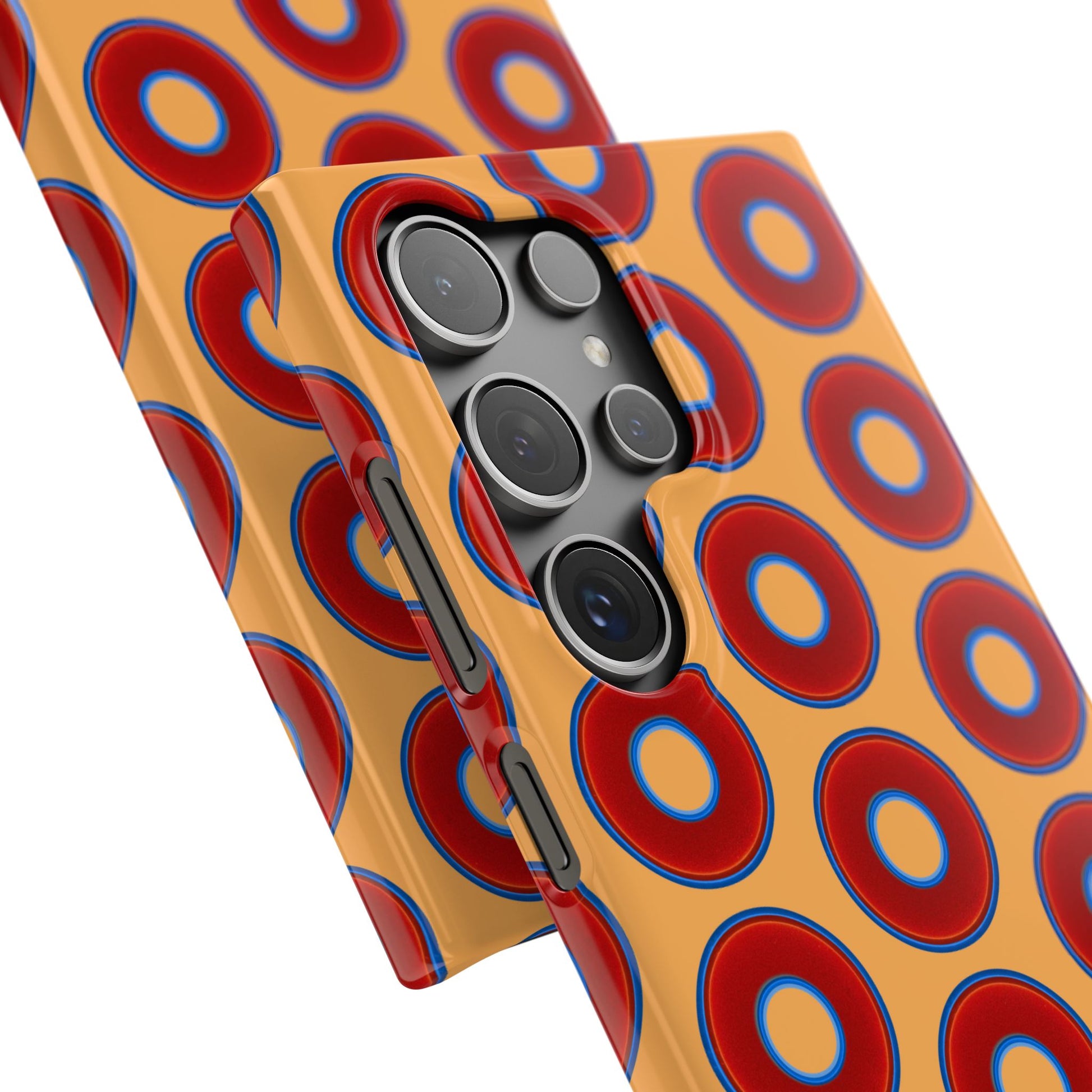 Lumpy Donut Snap Case - red vivid donut print w/creamcicle orange background