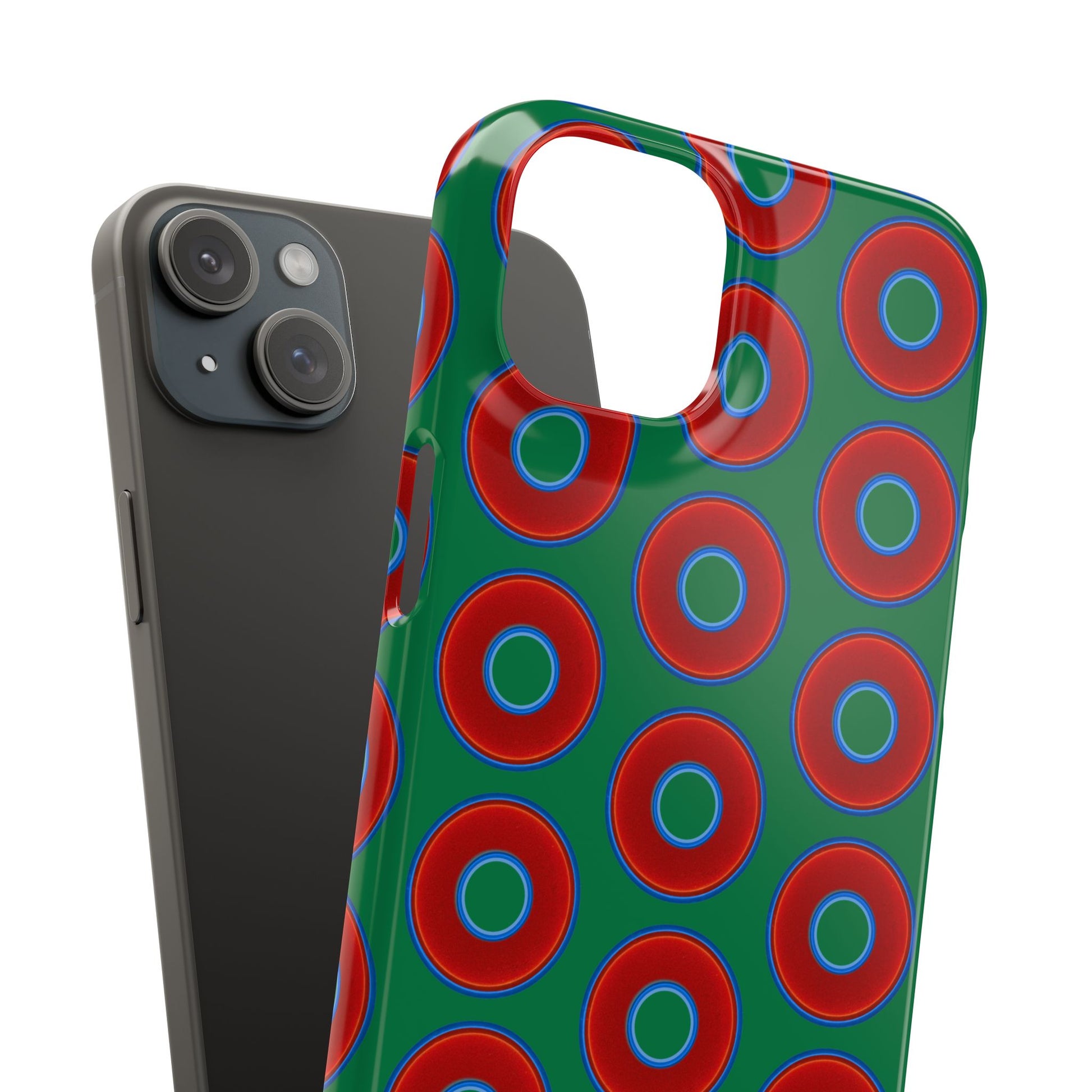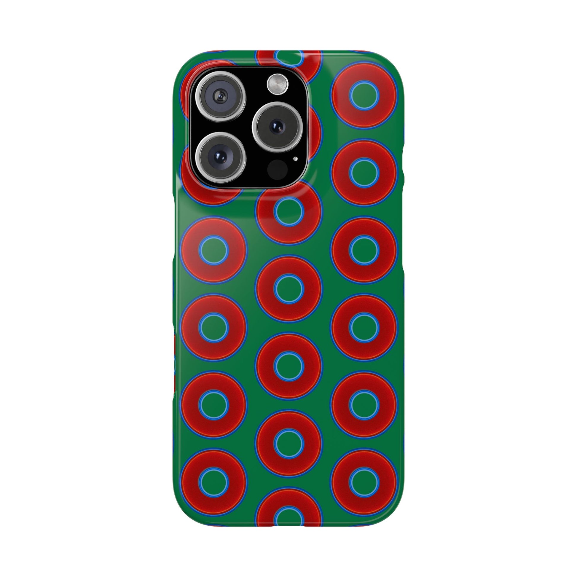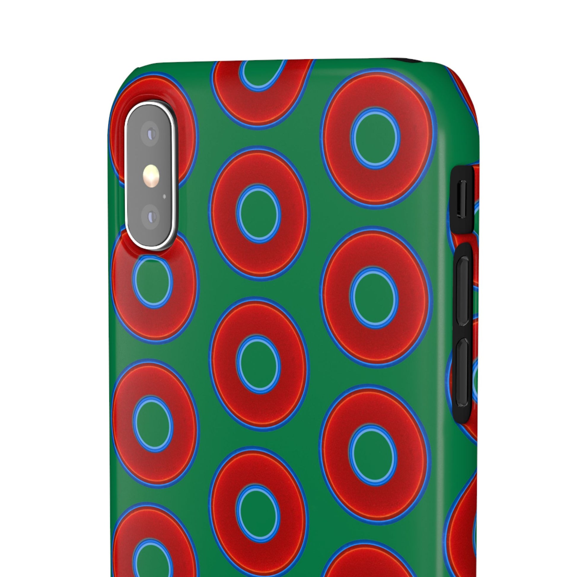 Lumpy Donut Snap Case - red vivid donut print w/green background