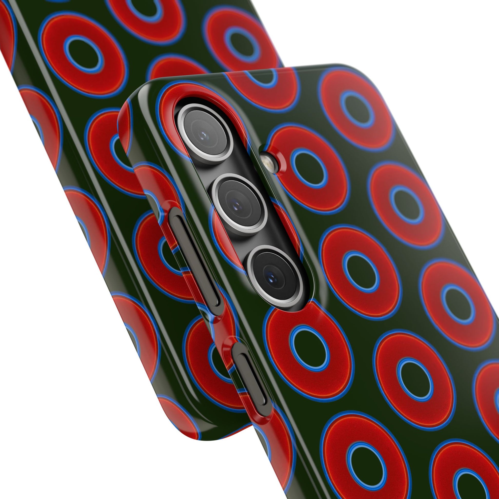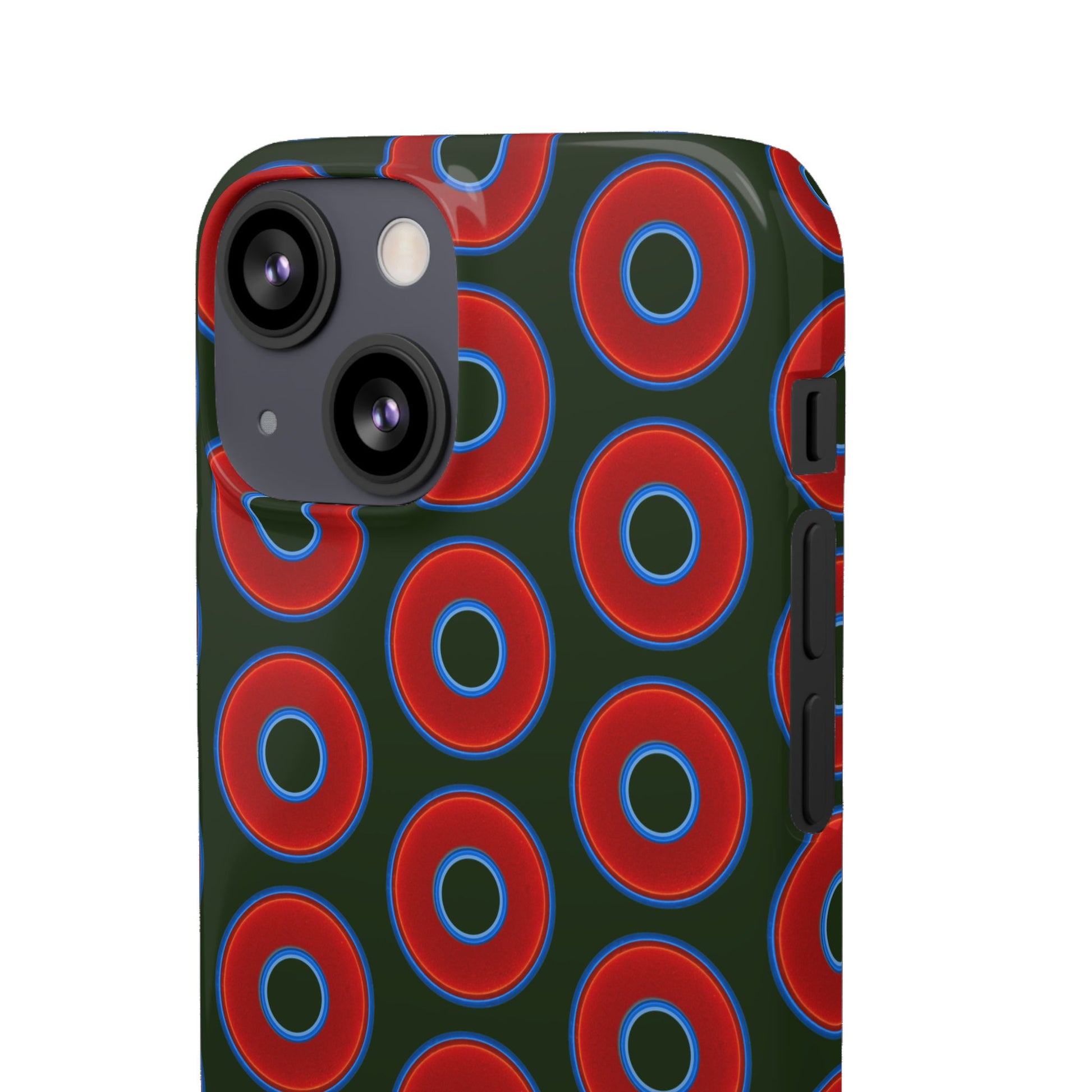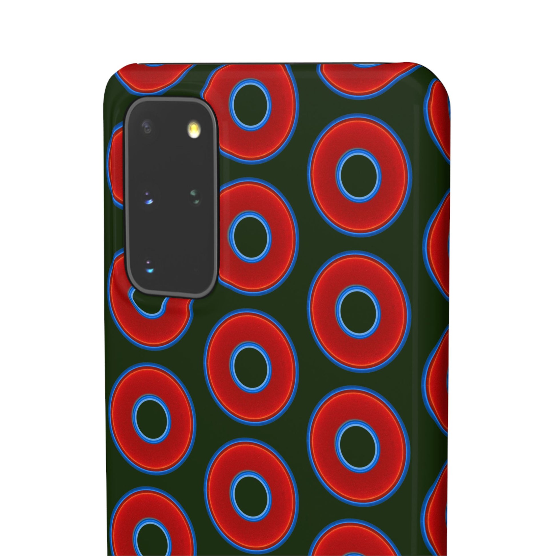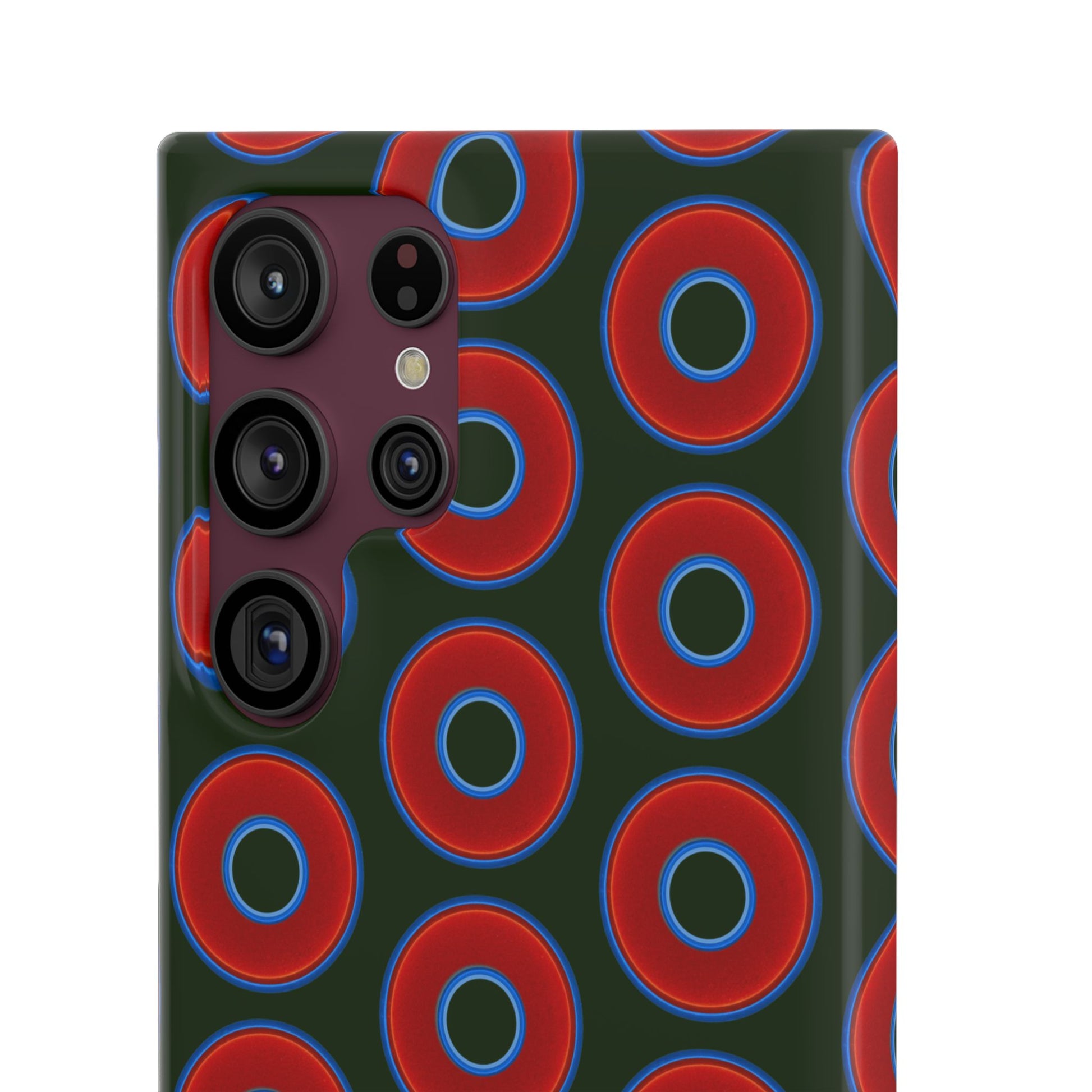 Lumpy Donut Snap Case - red vivid donut print w/deep forest green background