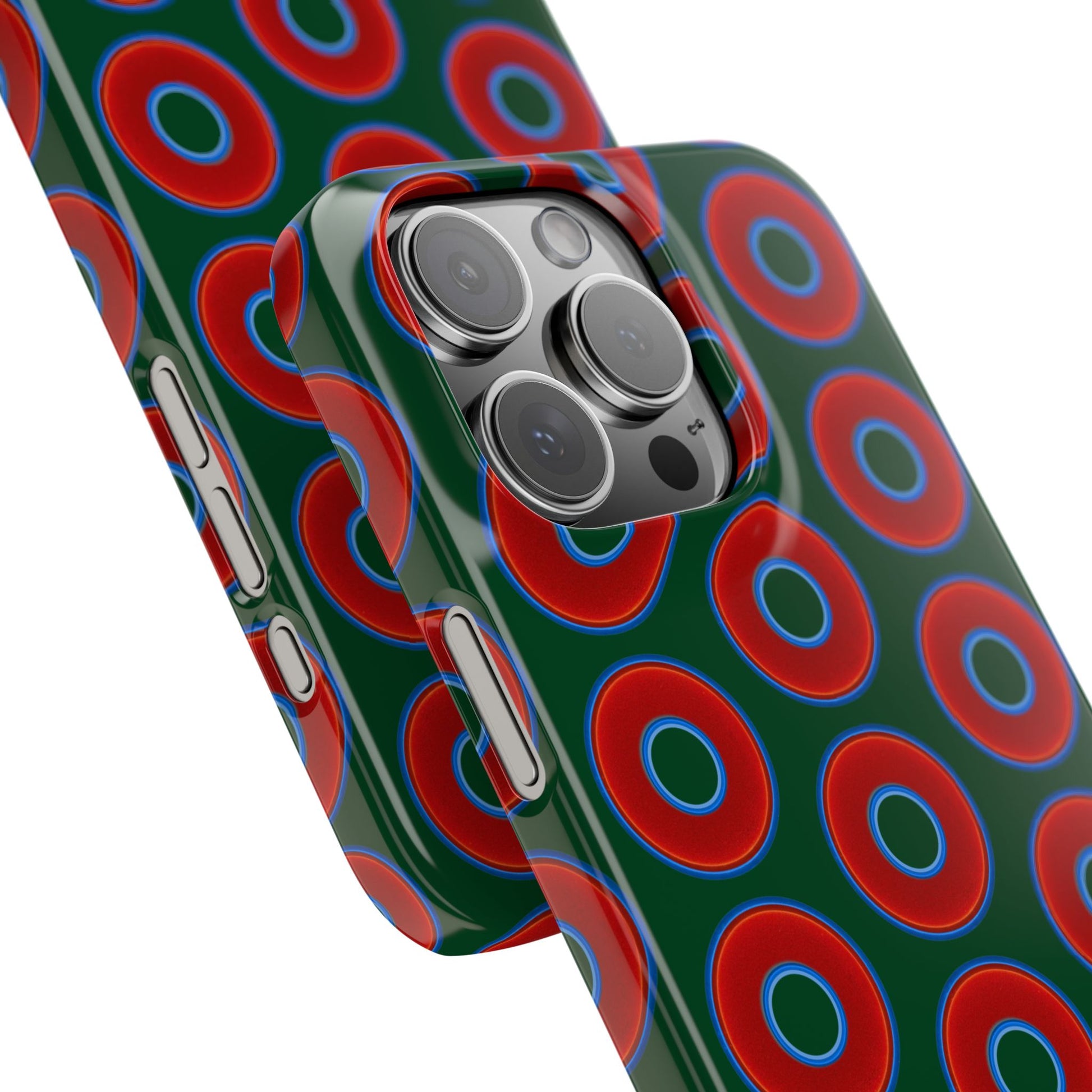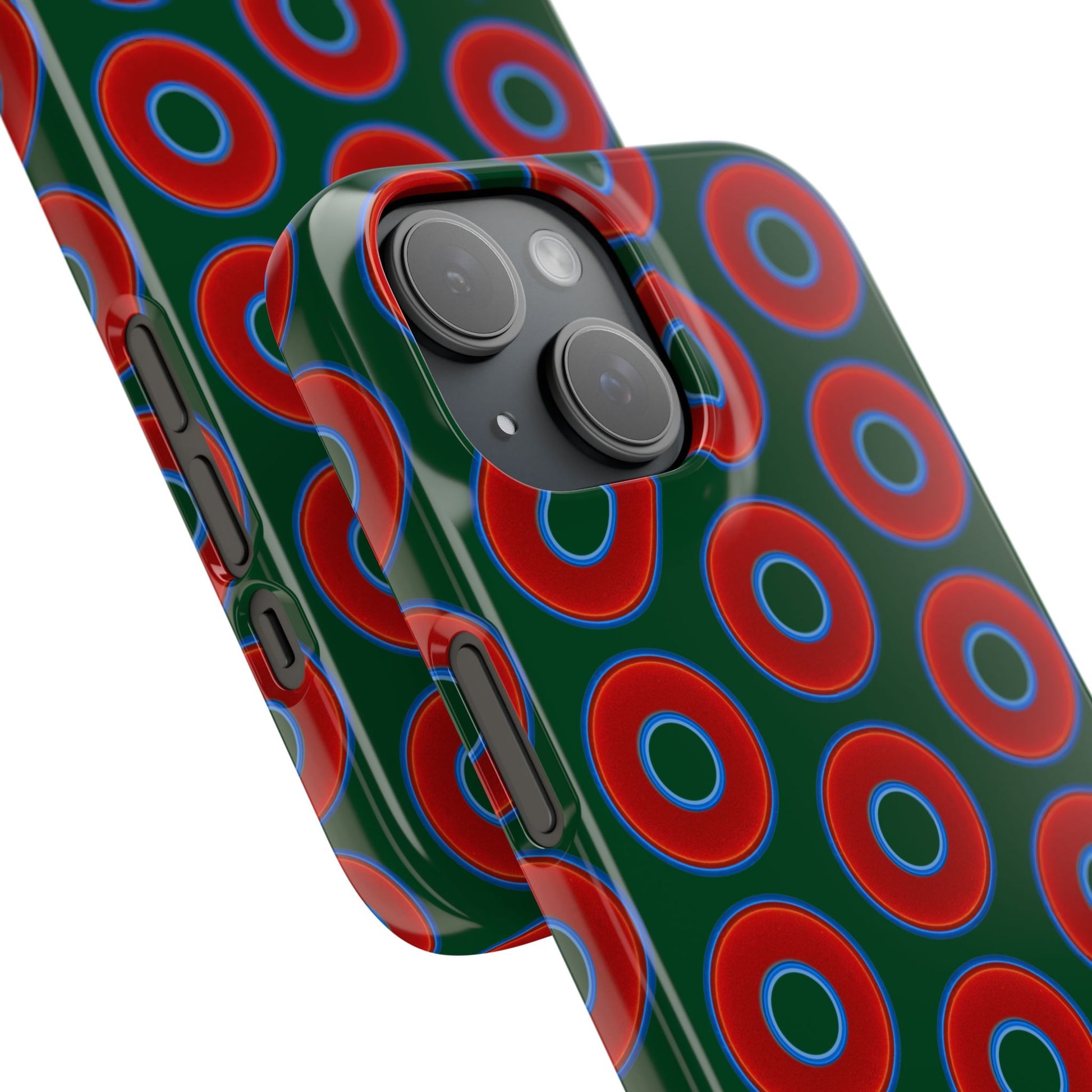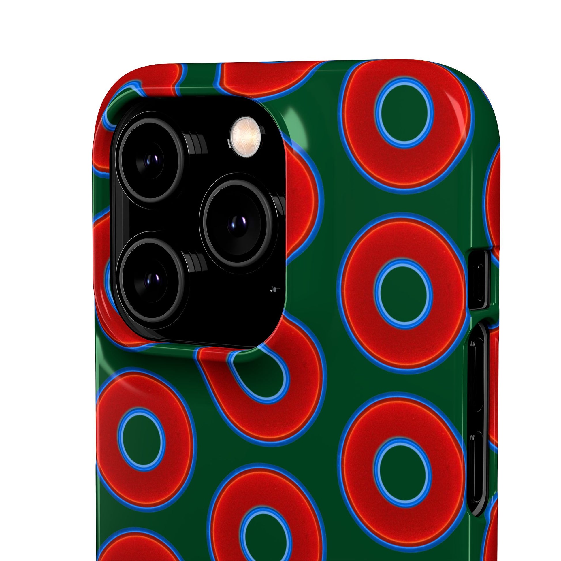 Lumpy Donut Snap Case - red vivid donut print w/deep pond green background