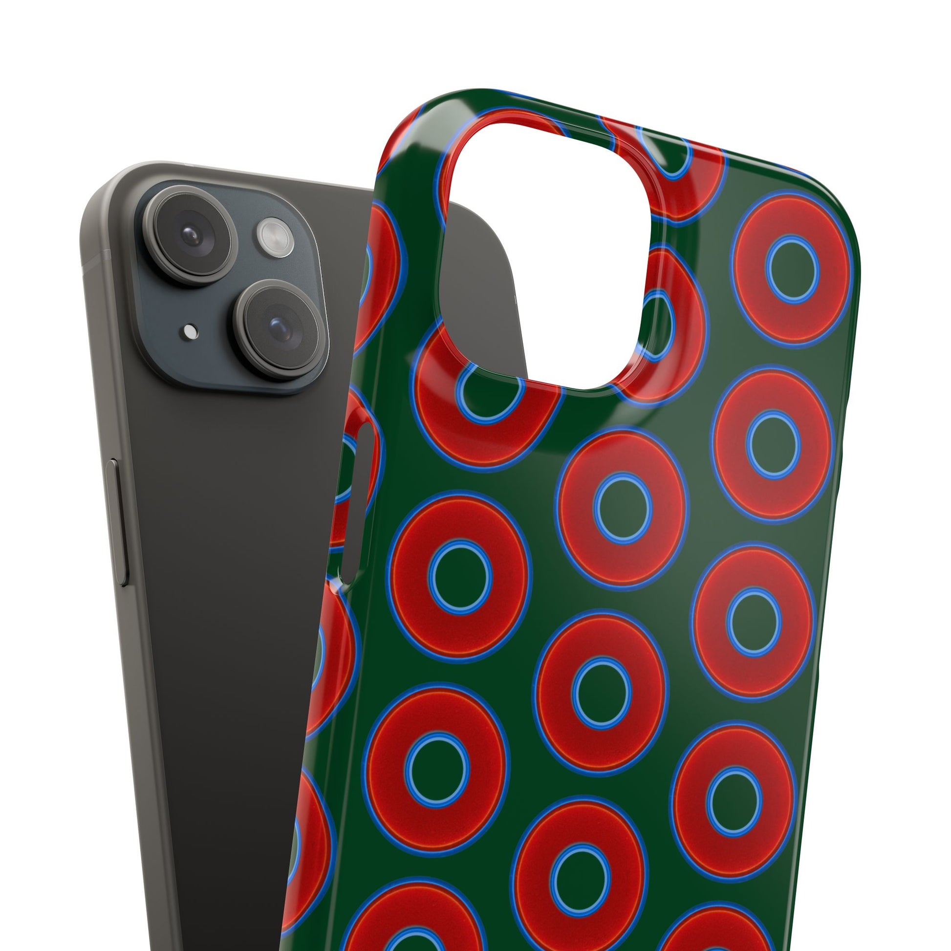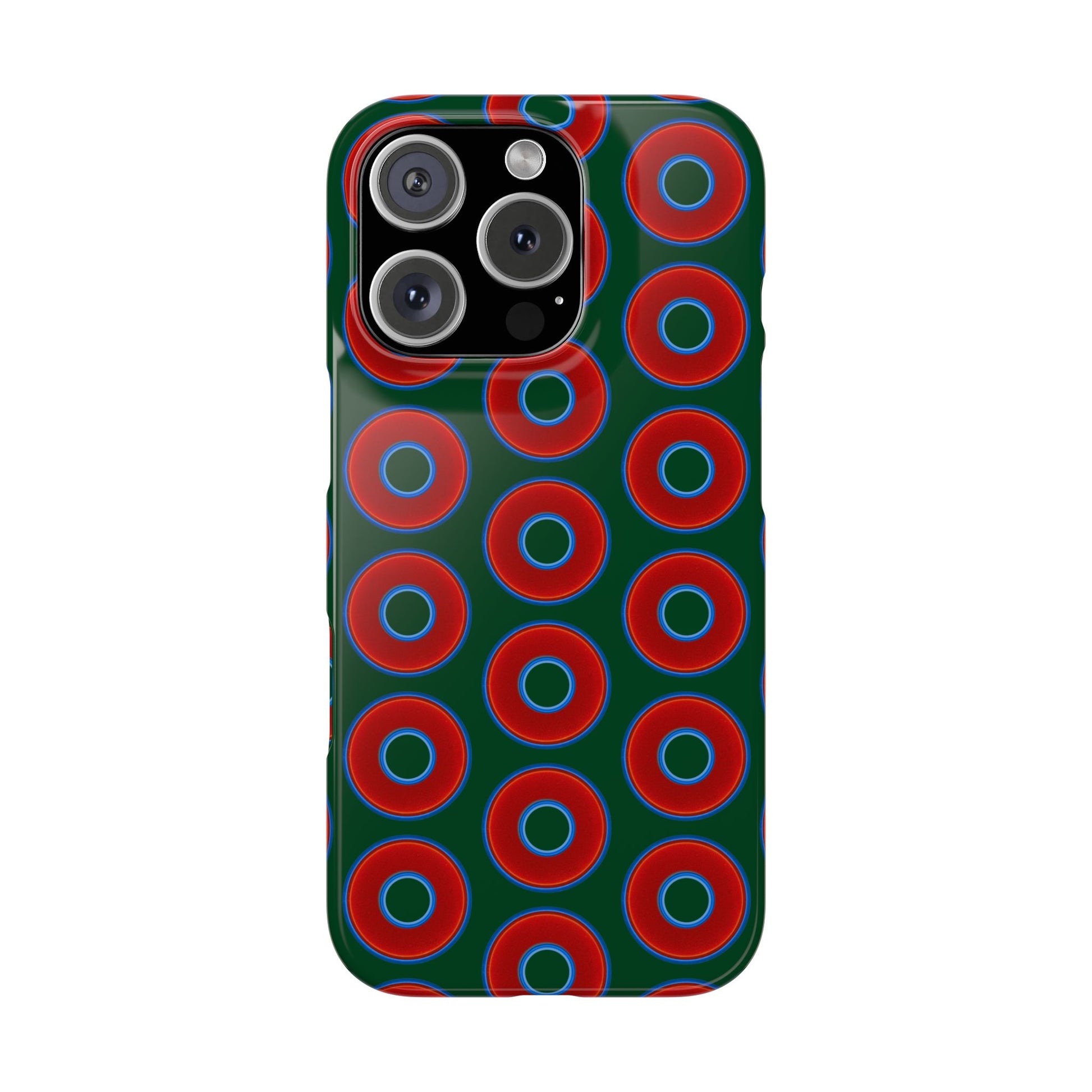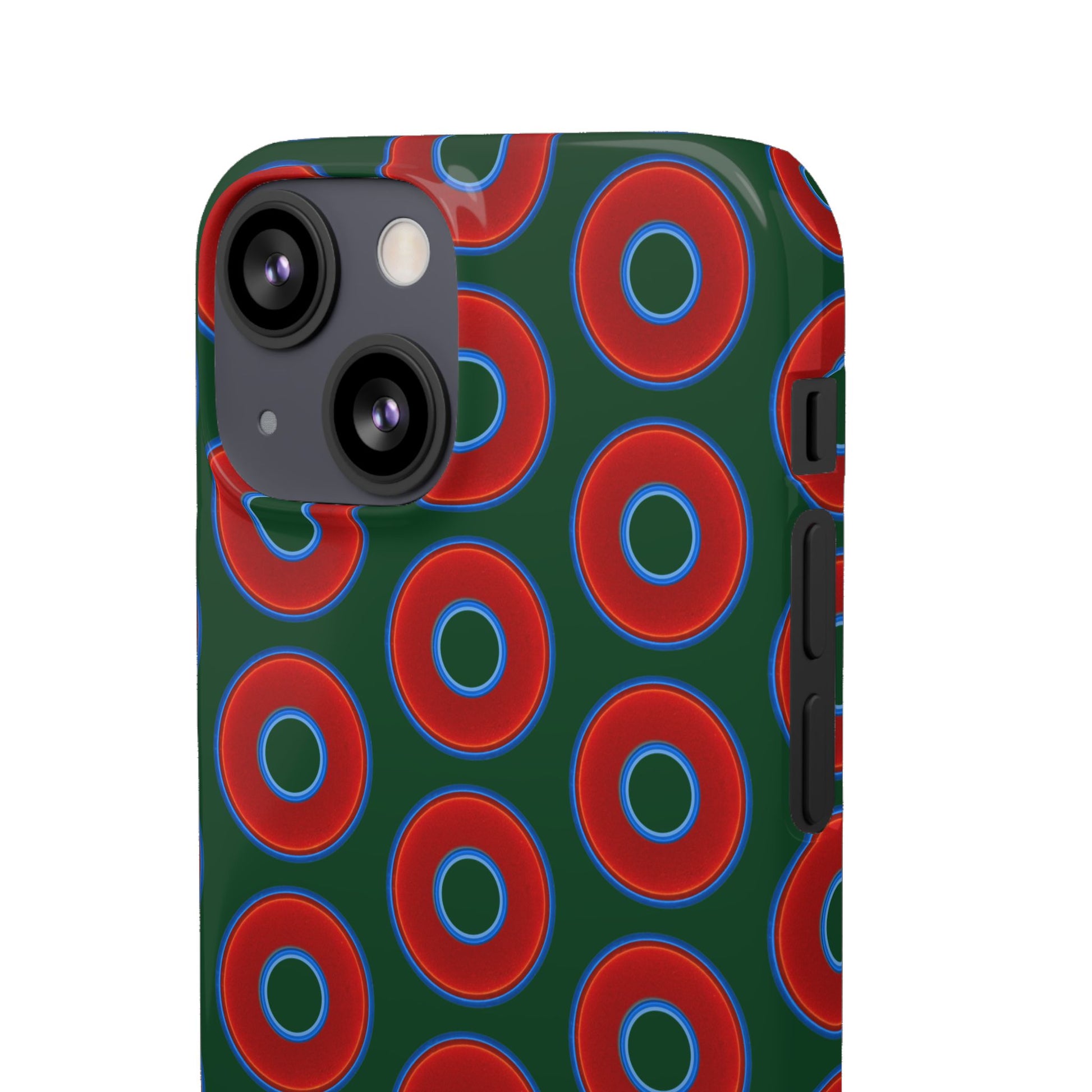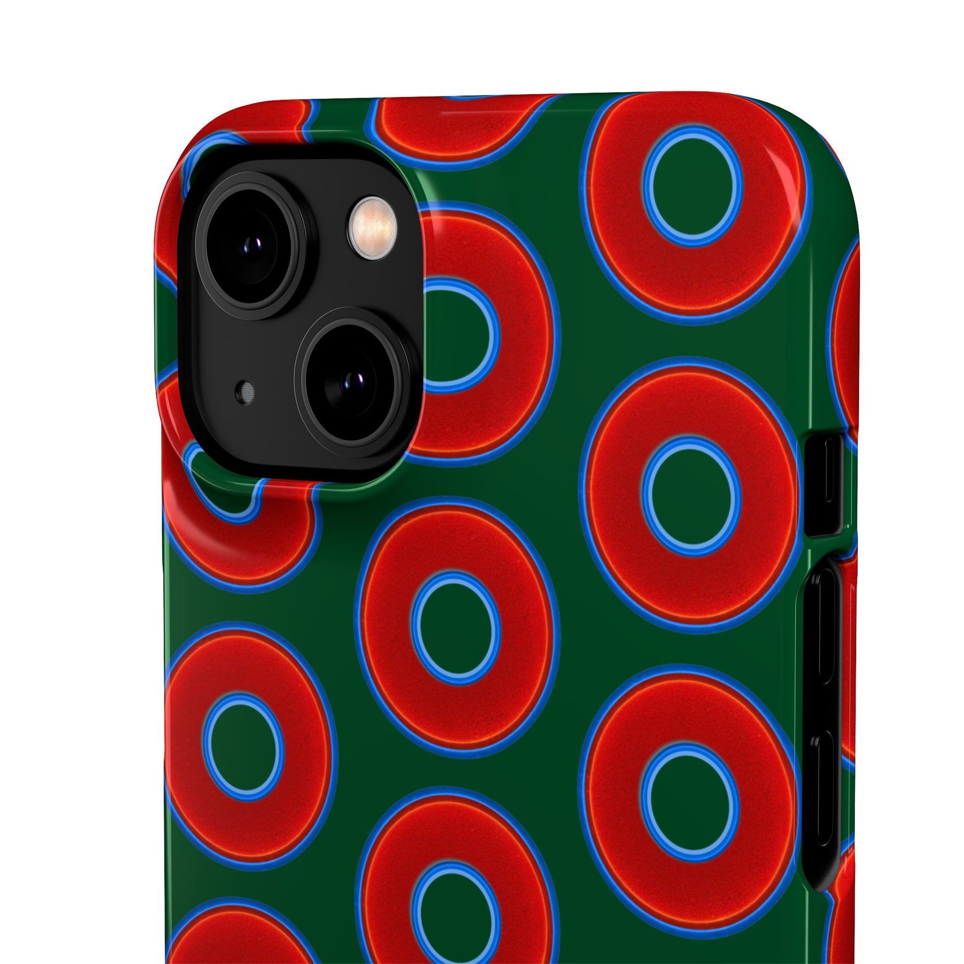 Lumpy Donut Snap Case - red vivid donut print w/deep pond green background