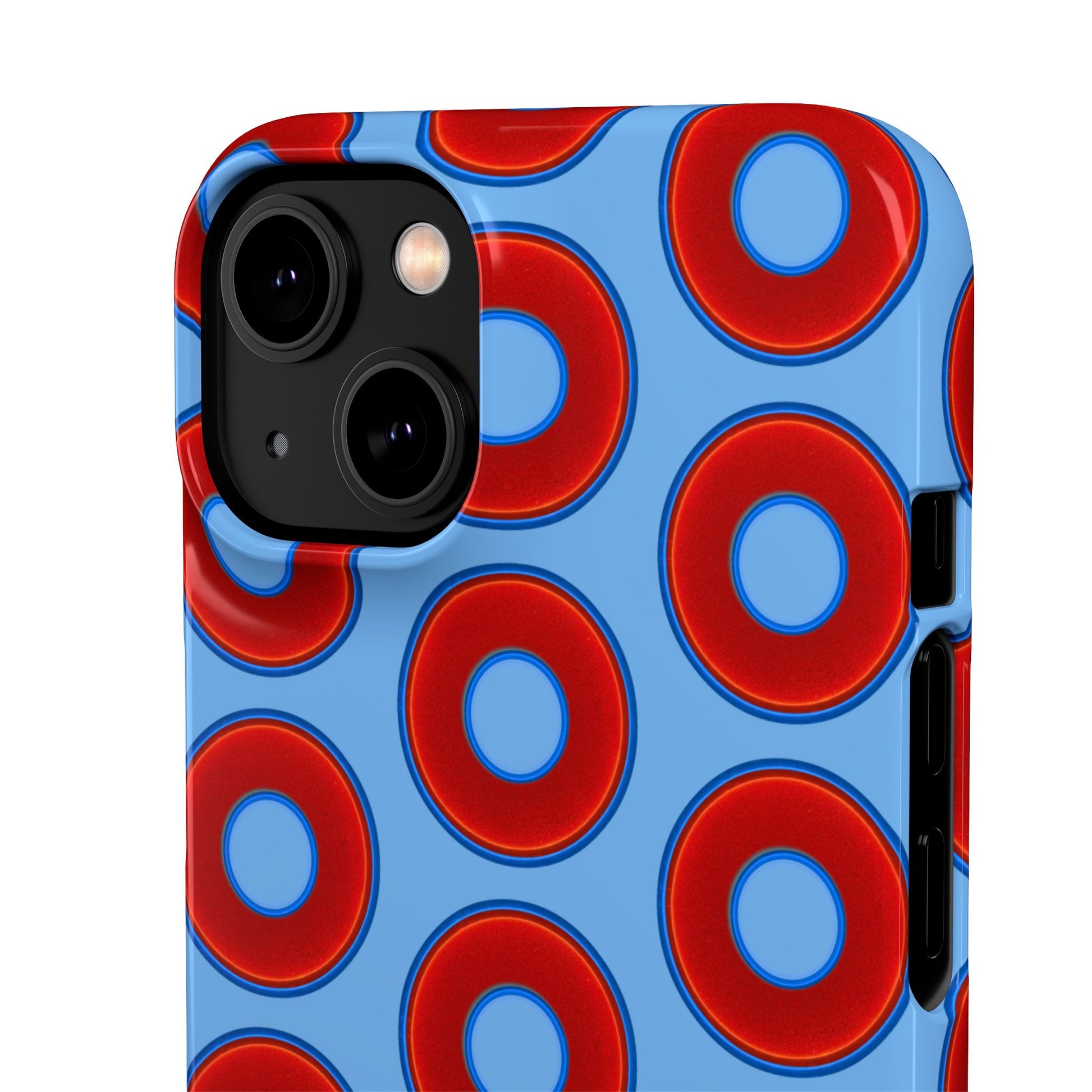 Lumpy Donut Snap Case - red vivid donut print w/light blue background