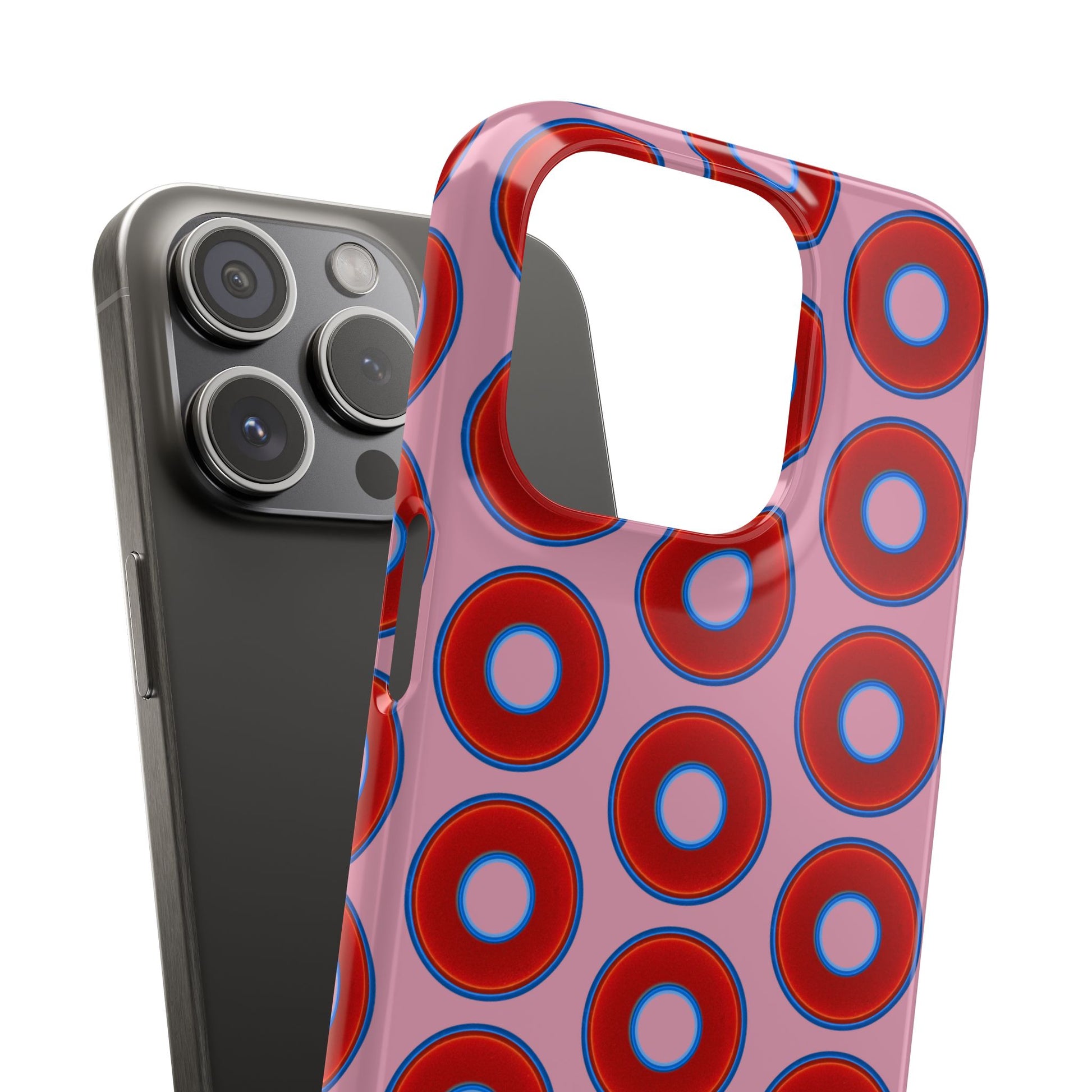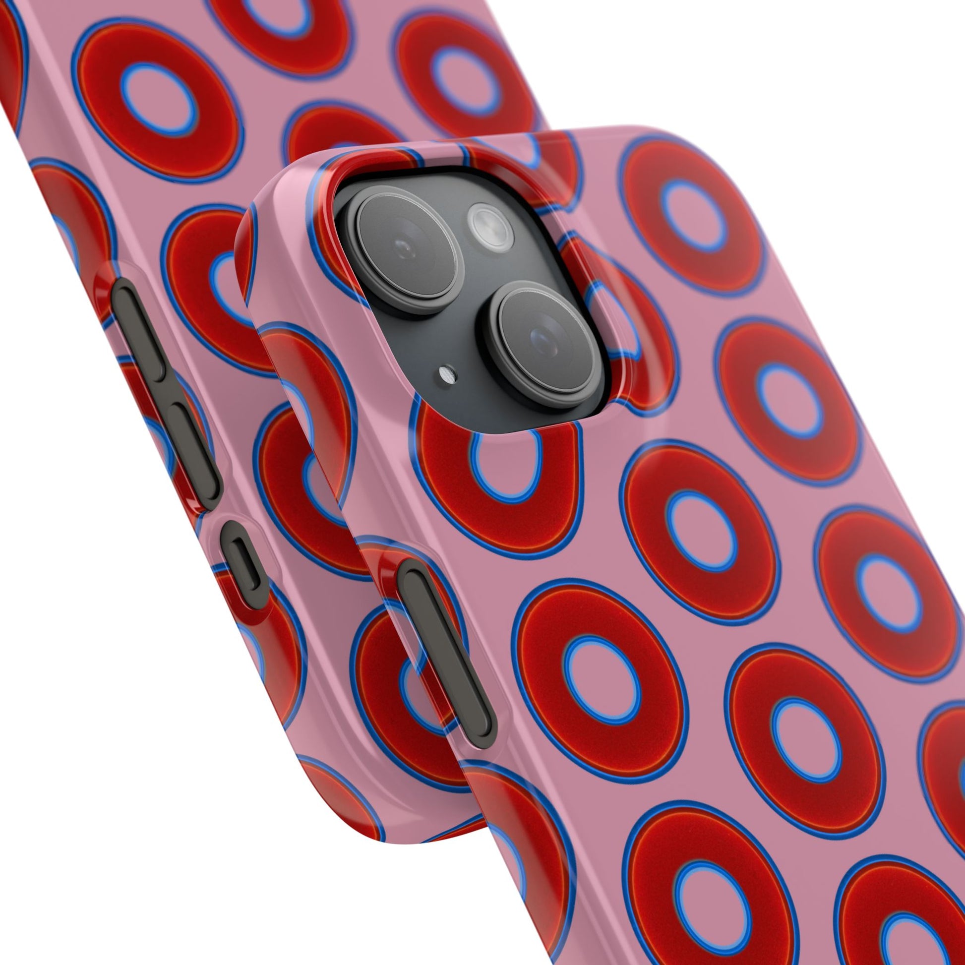 Lumpy Donut Snap Case - red vivid donut print w/pale magenta background