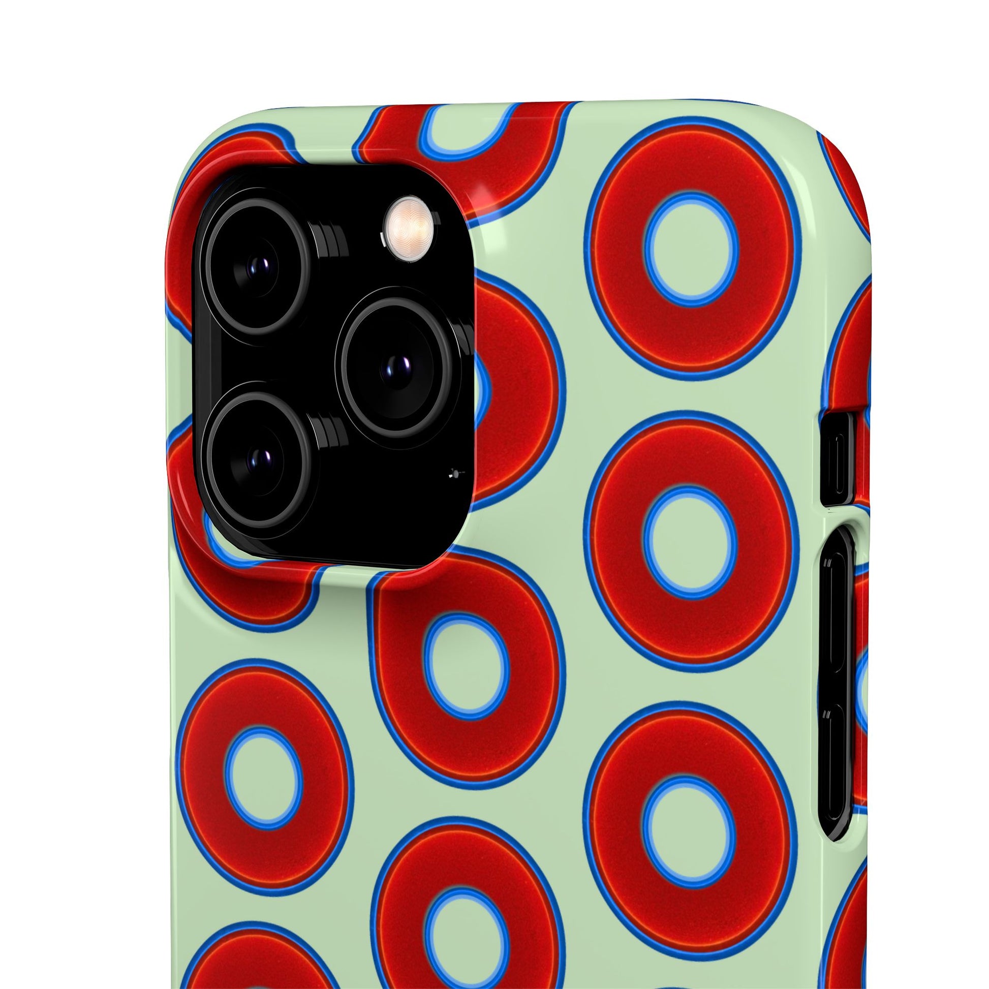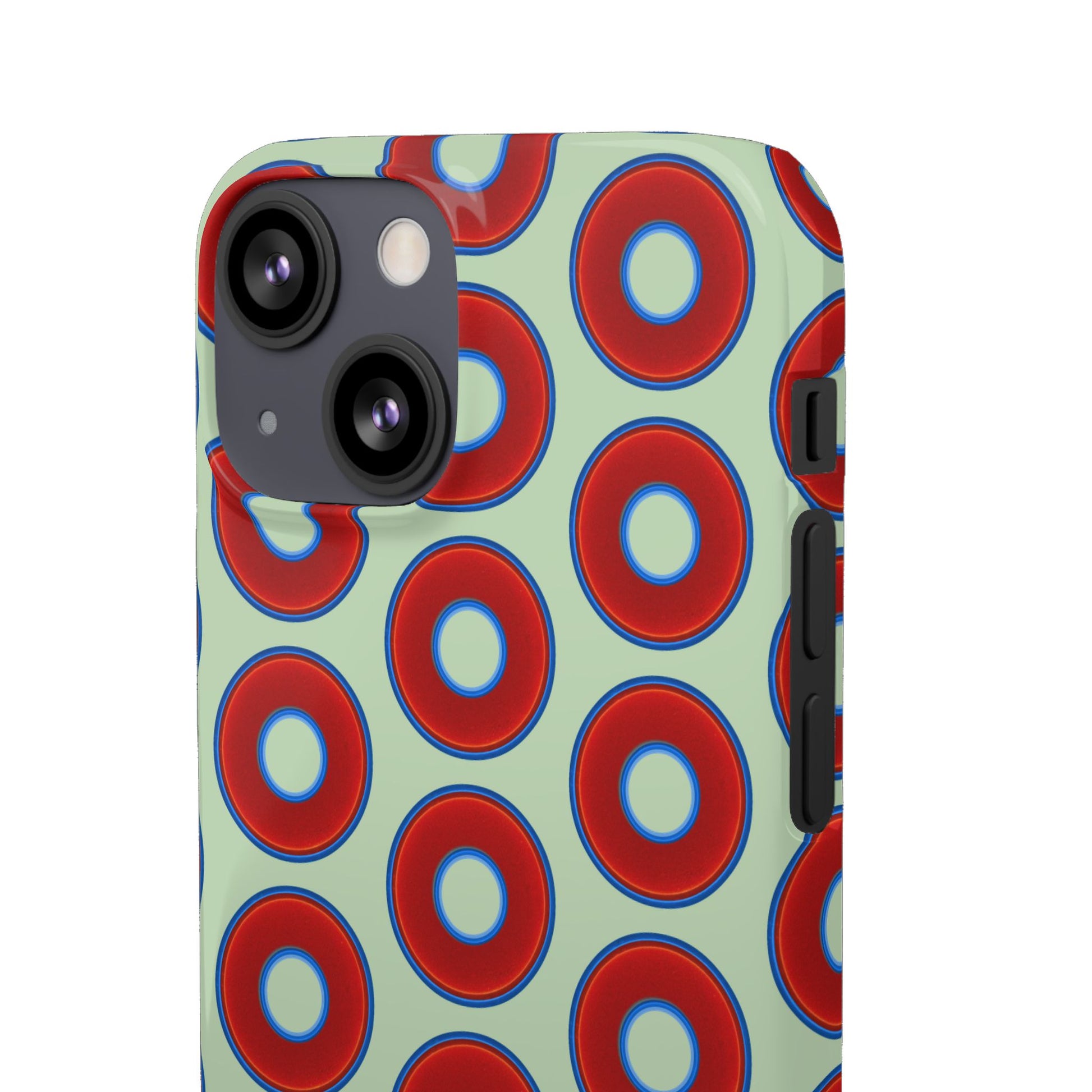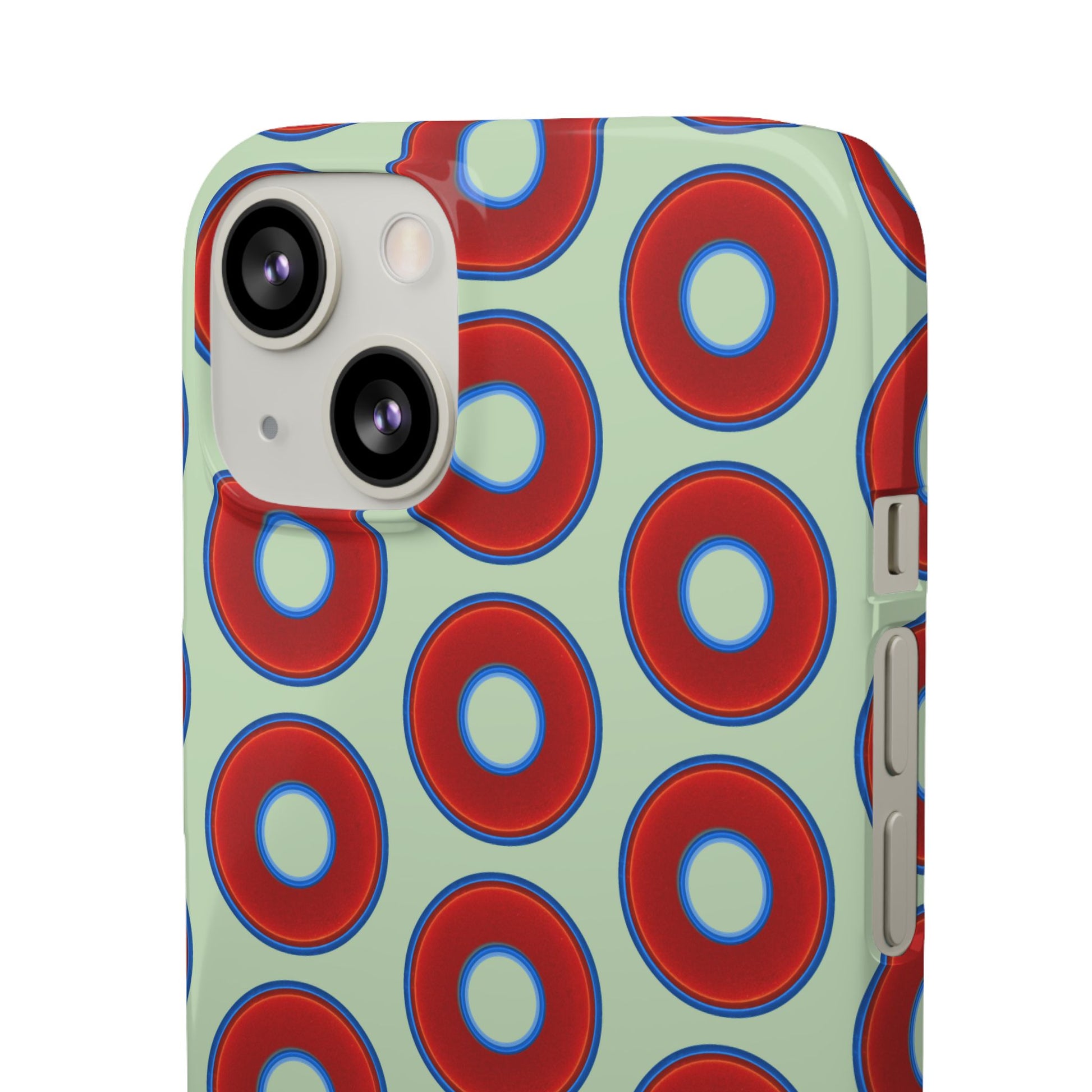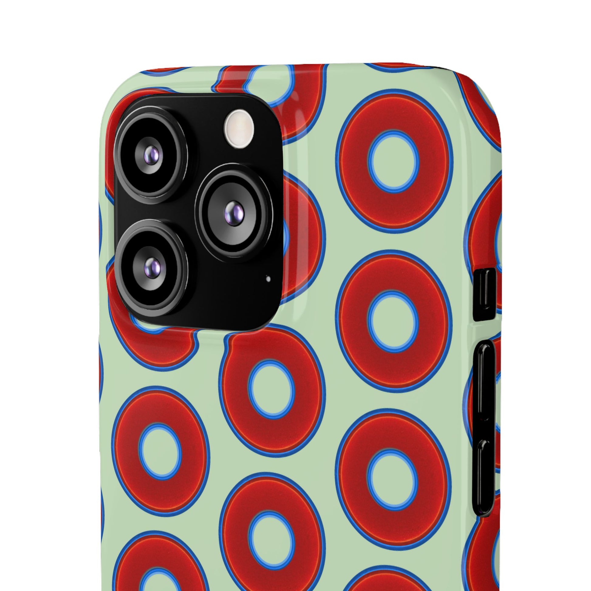 Lumpy Donut Snap Case - red vivid donut print w/seafoam green background