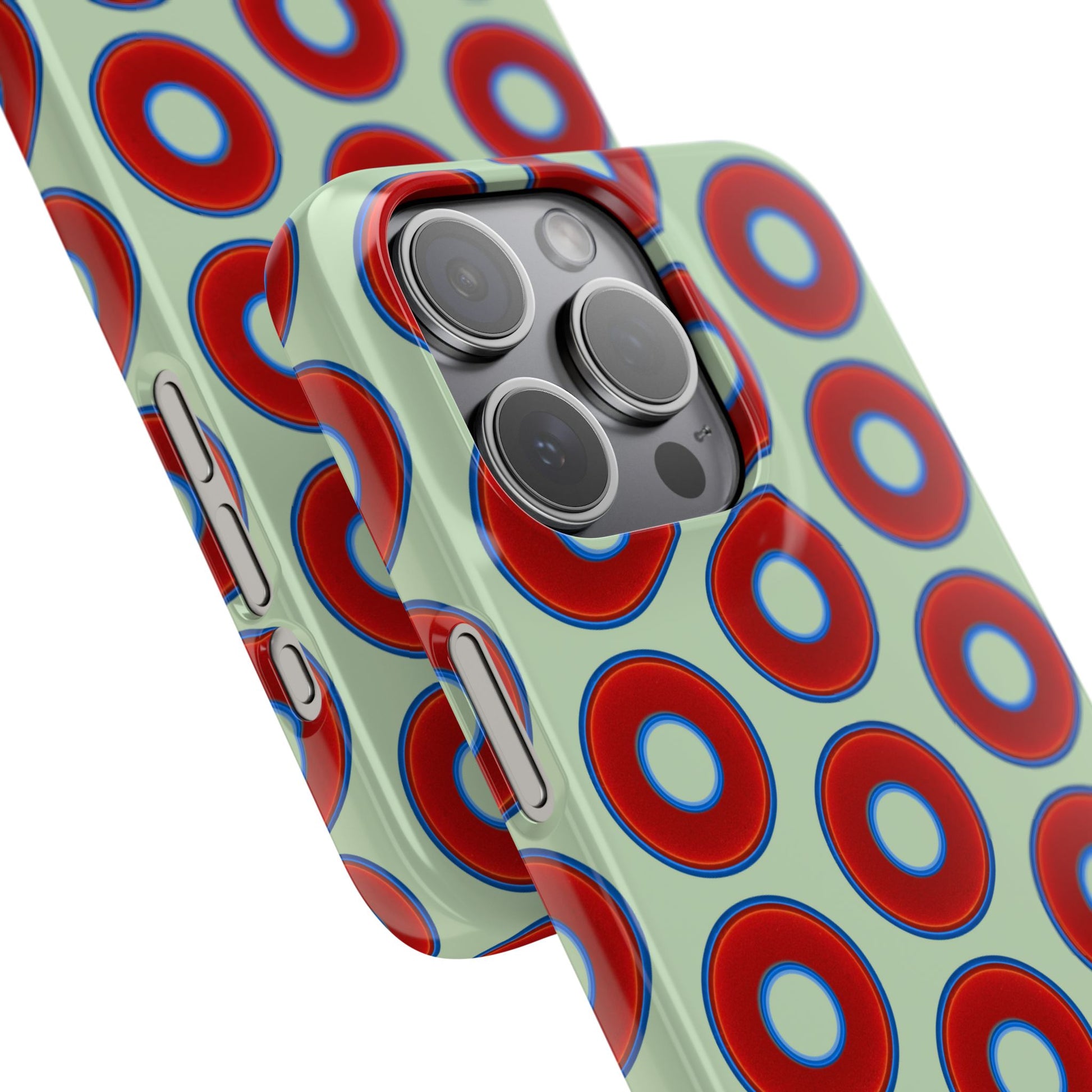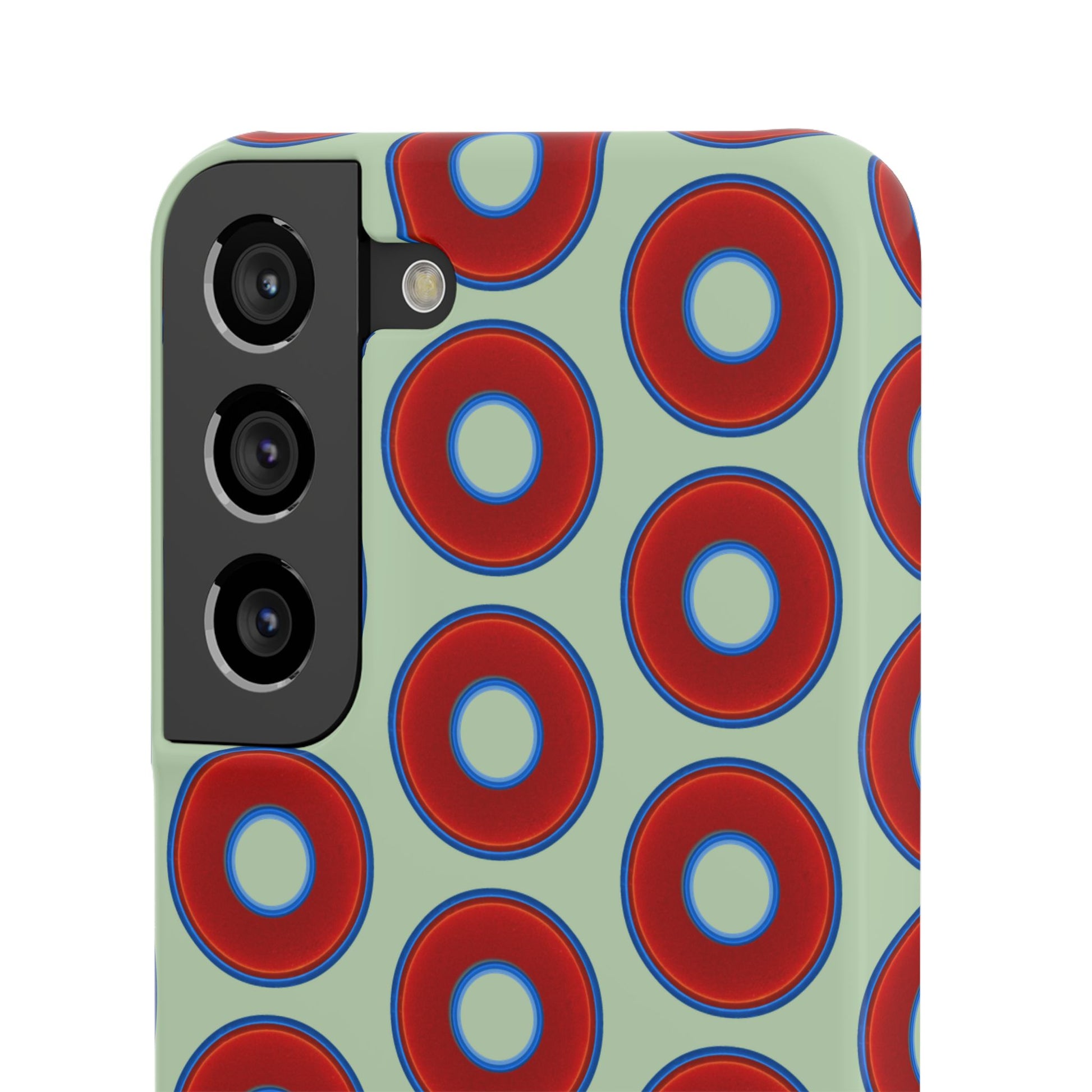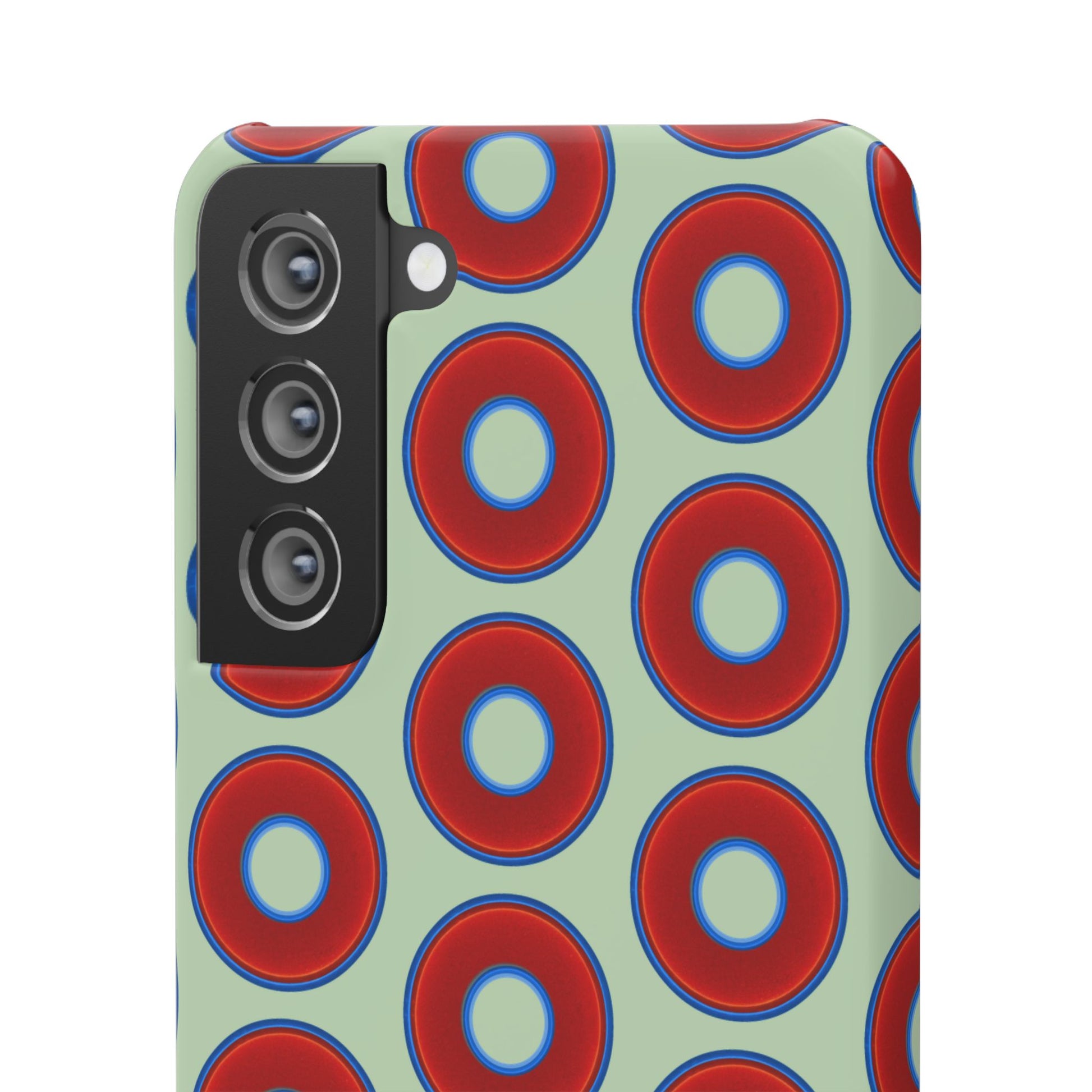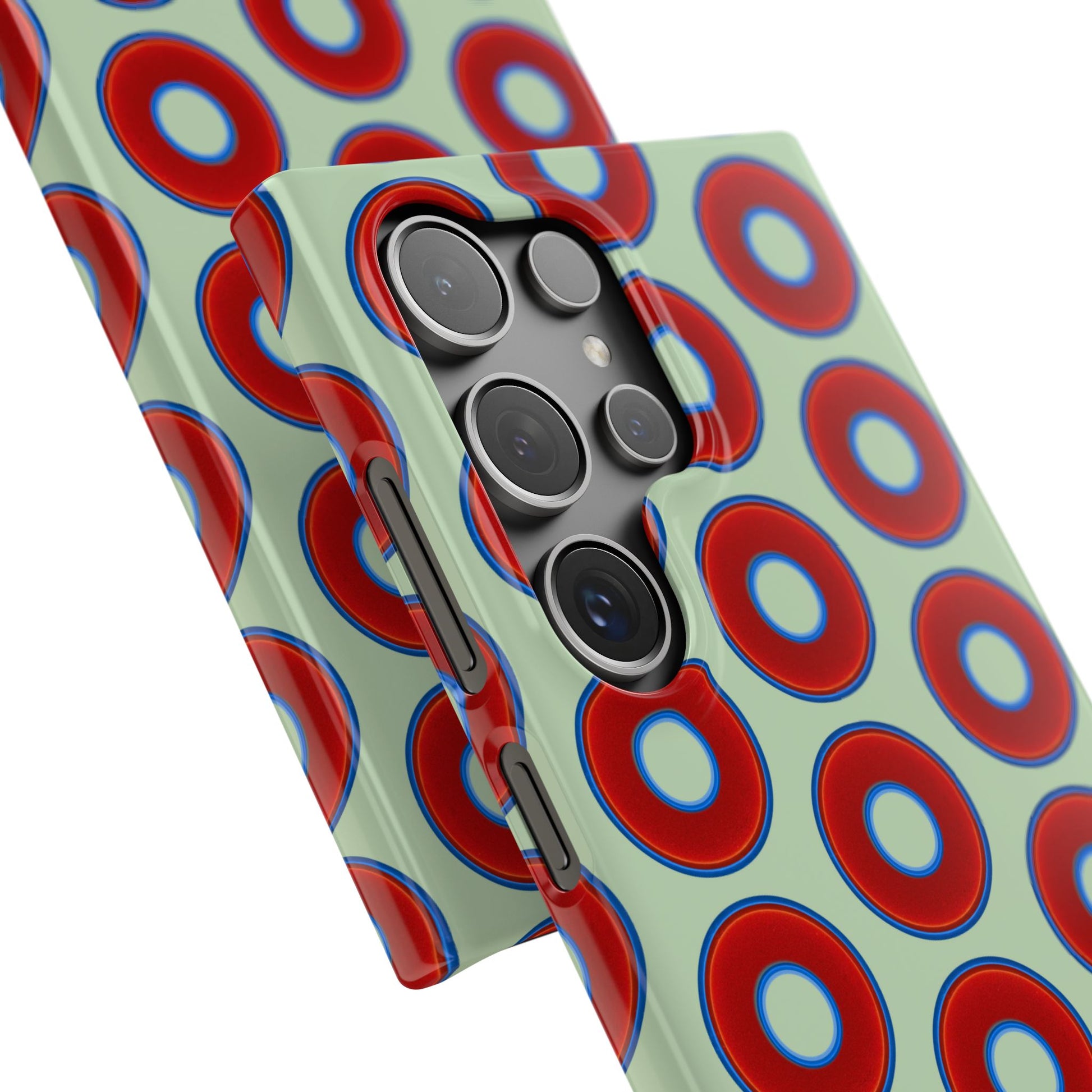 Lumpy Donut Snap Case - red vivid donut print w/seafoam green background