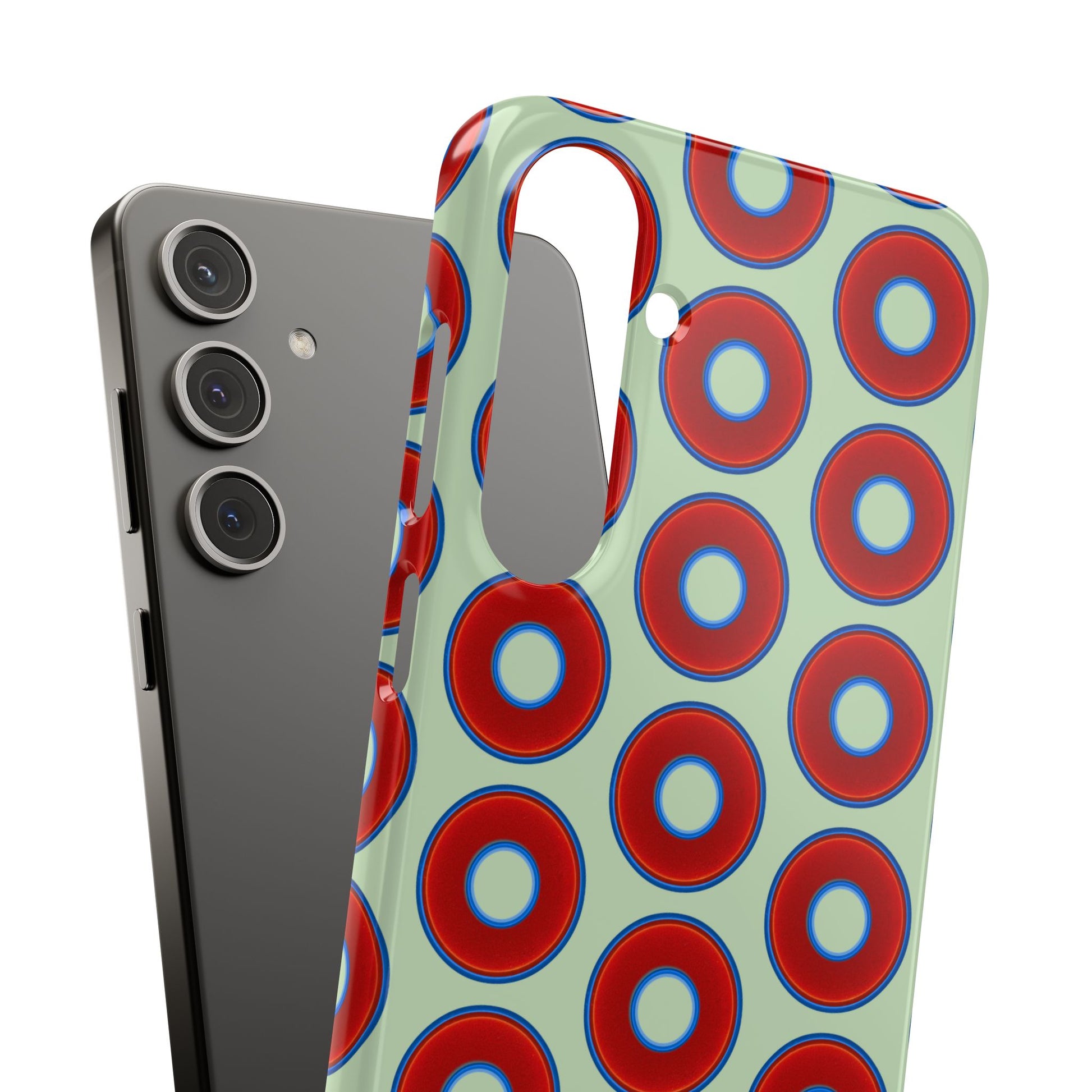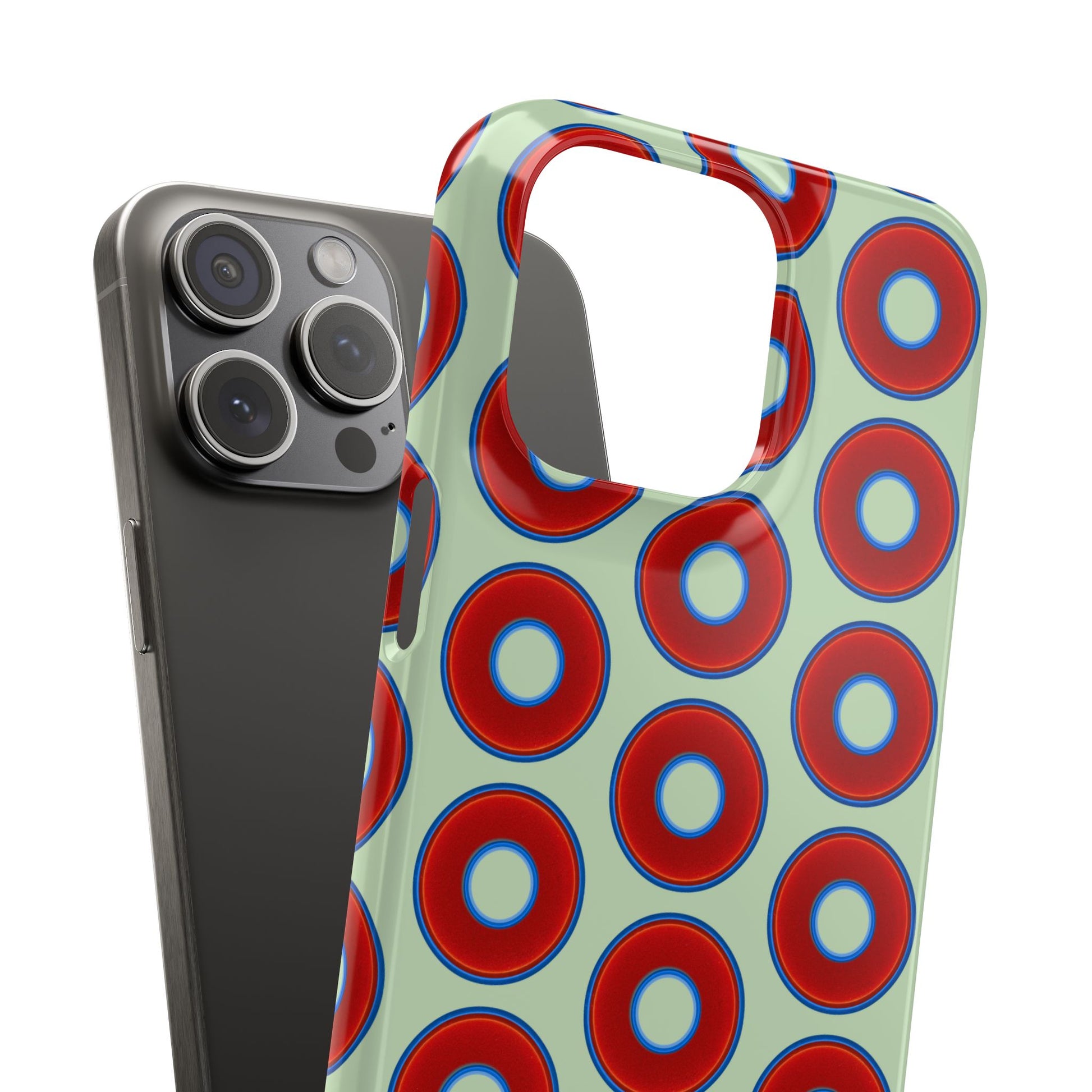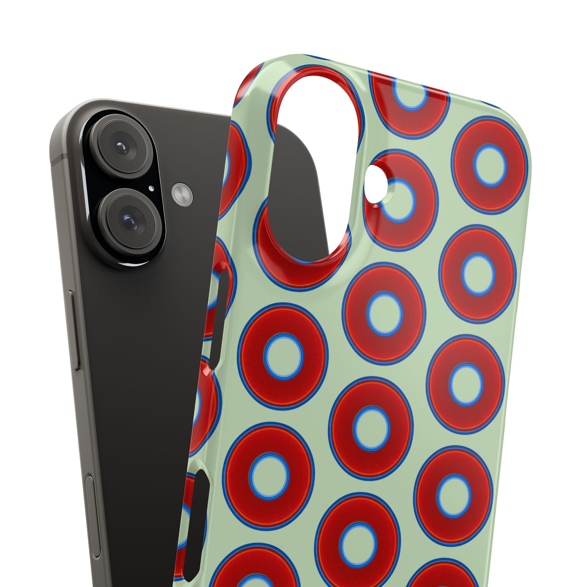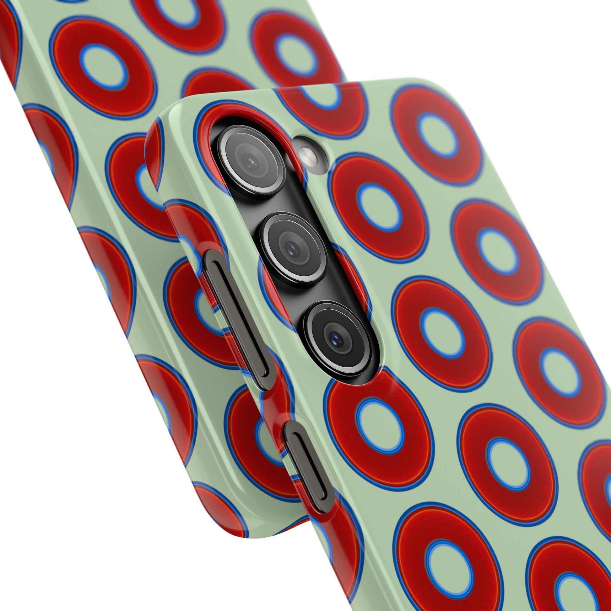 Lumpy Donut Snap Case - red vivid donut print w/seafoam green background