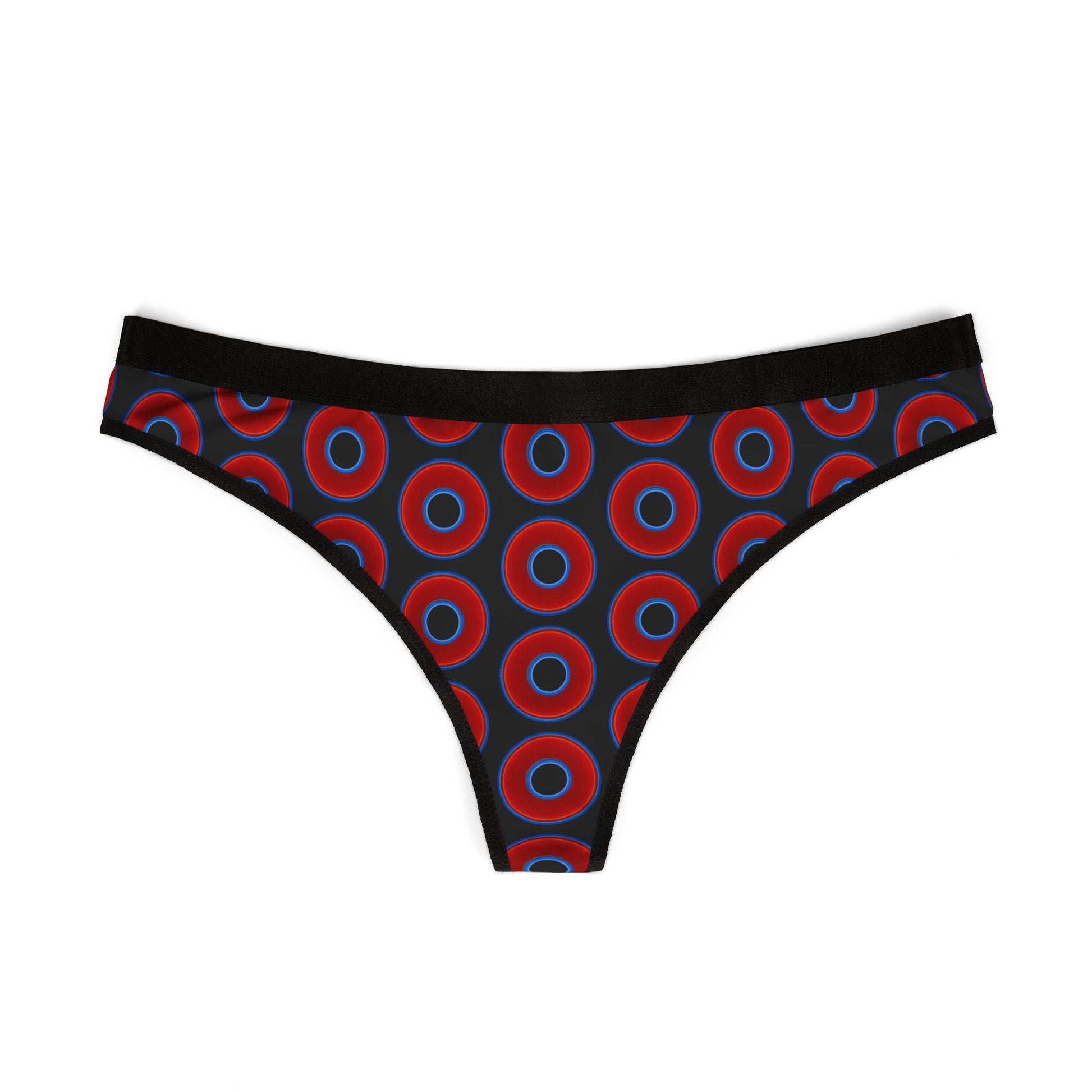 Lumpy Donut Thongs - red vivid donut print w/black background