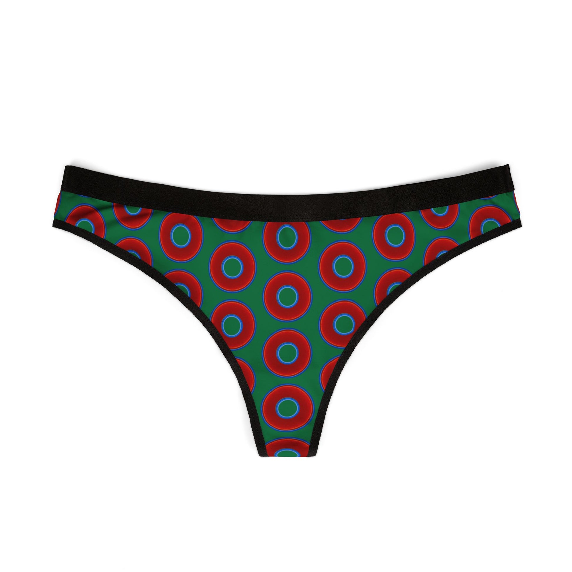 Lumpy Donut Thongs - red vivid donut print w/green background