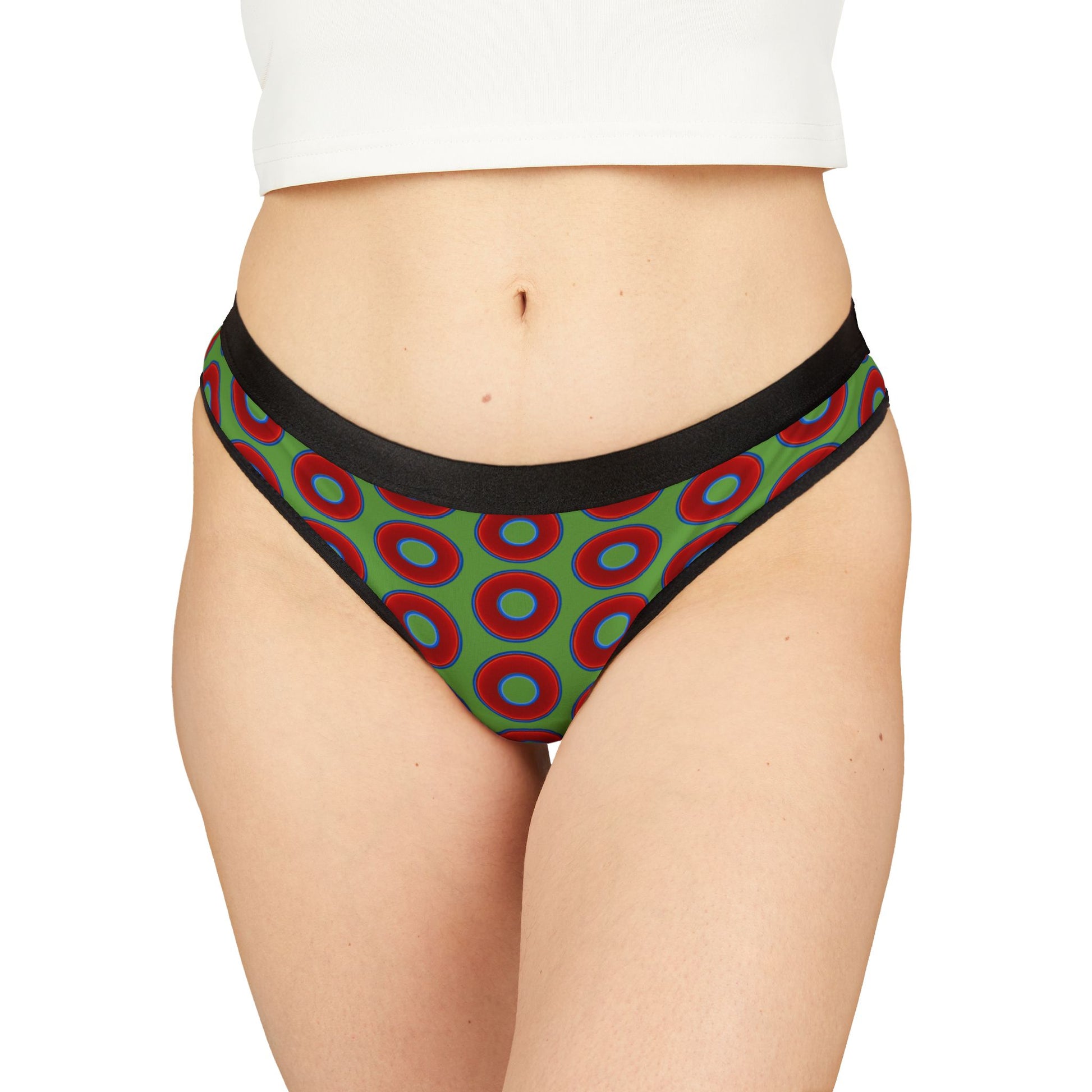 Lumpy Donut Thongs - red vivid donut print w/light green background