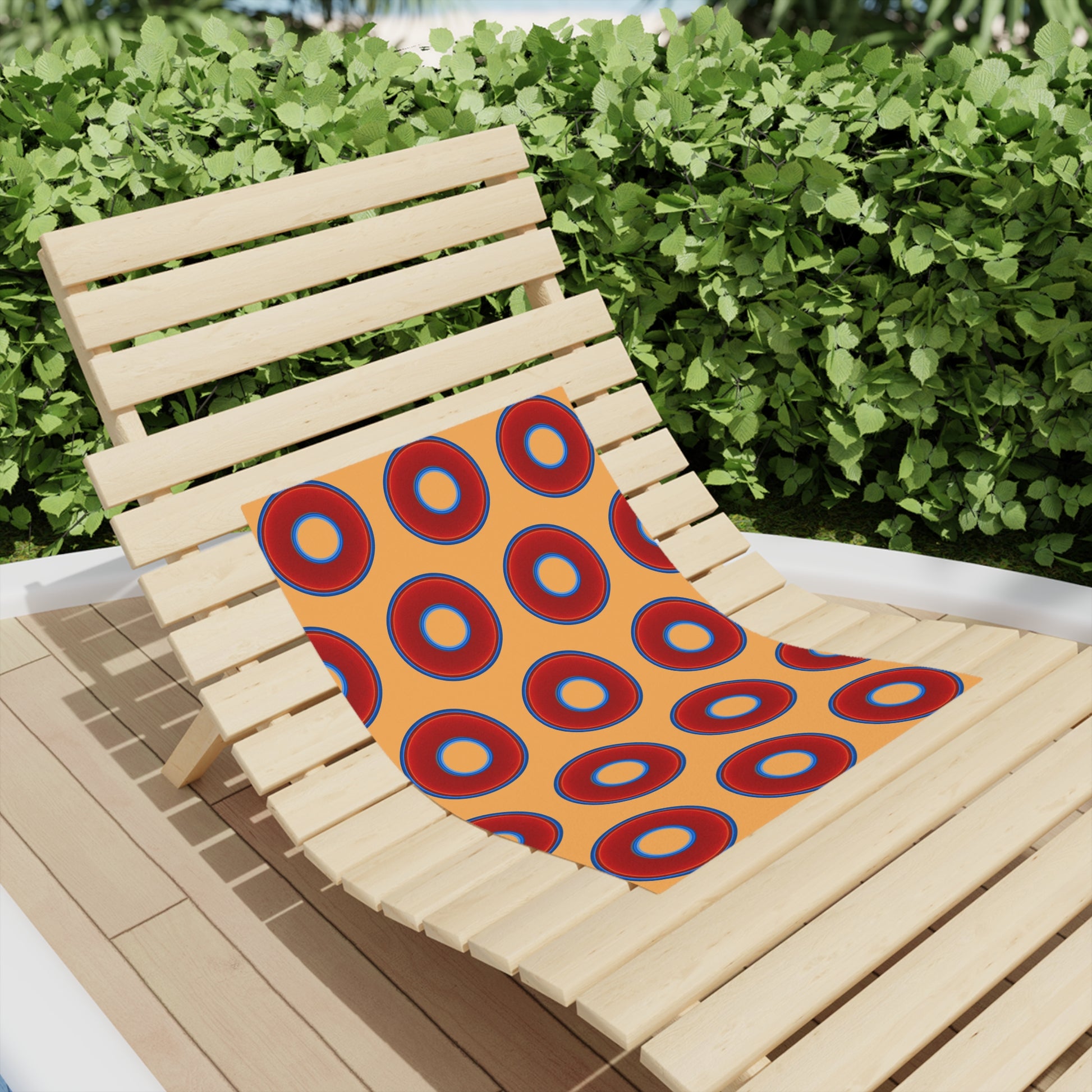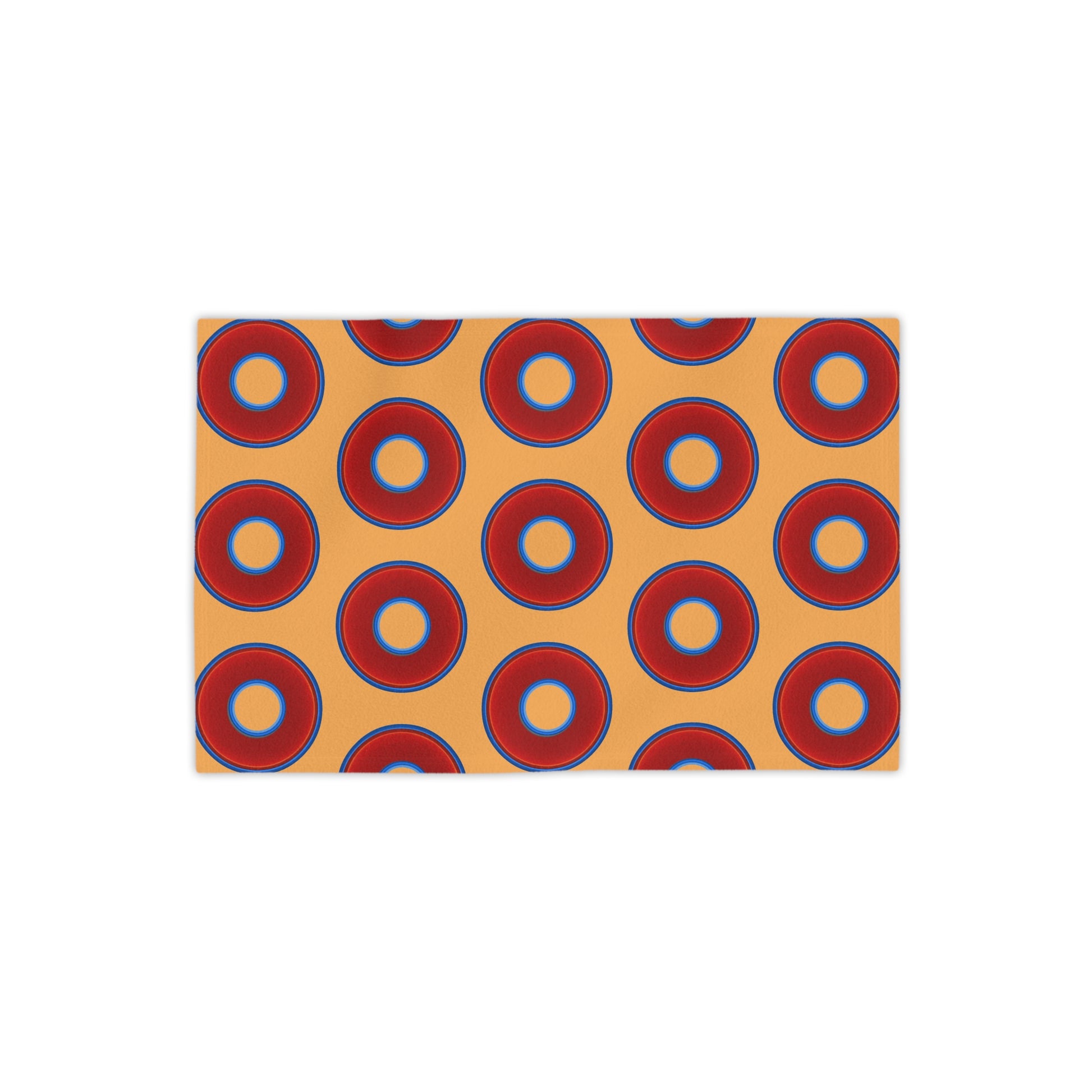 Lumpy Donut Towels - vivid red donuts w/creamsicle orange background