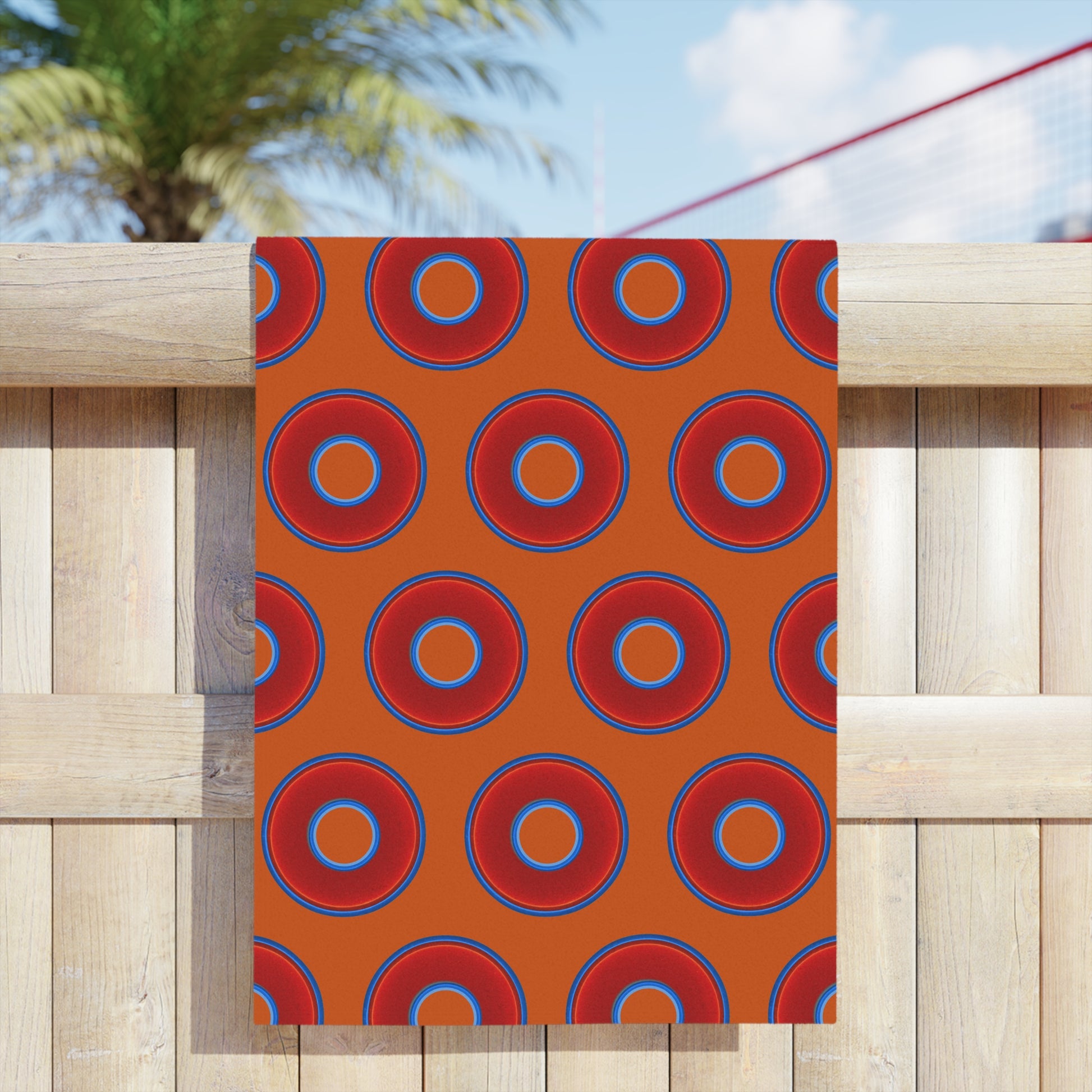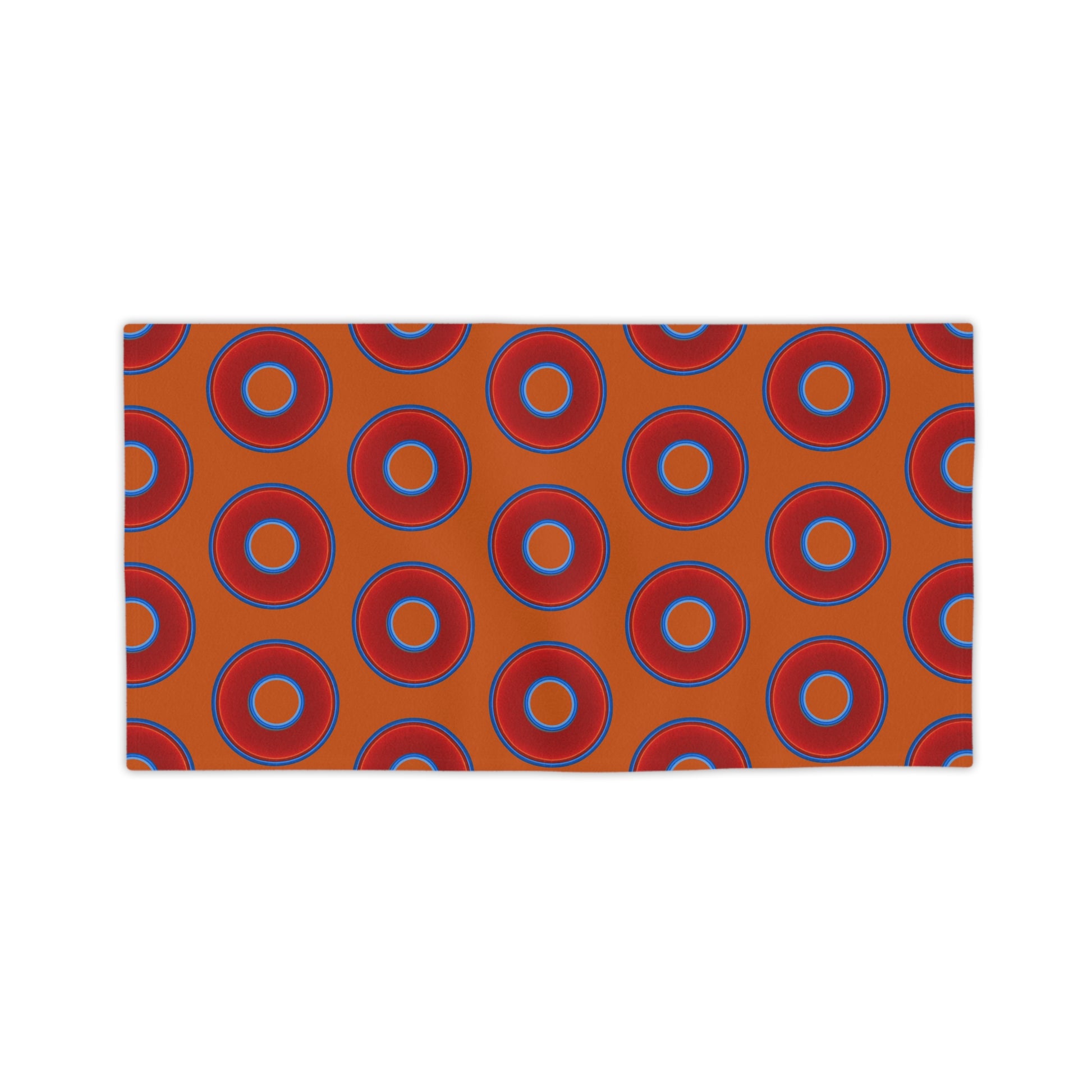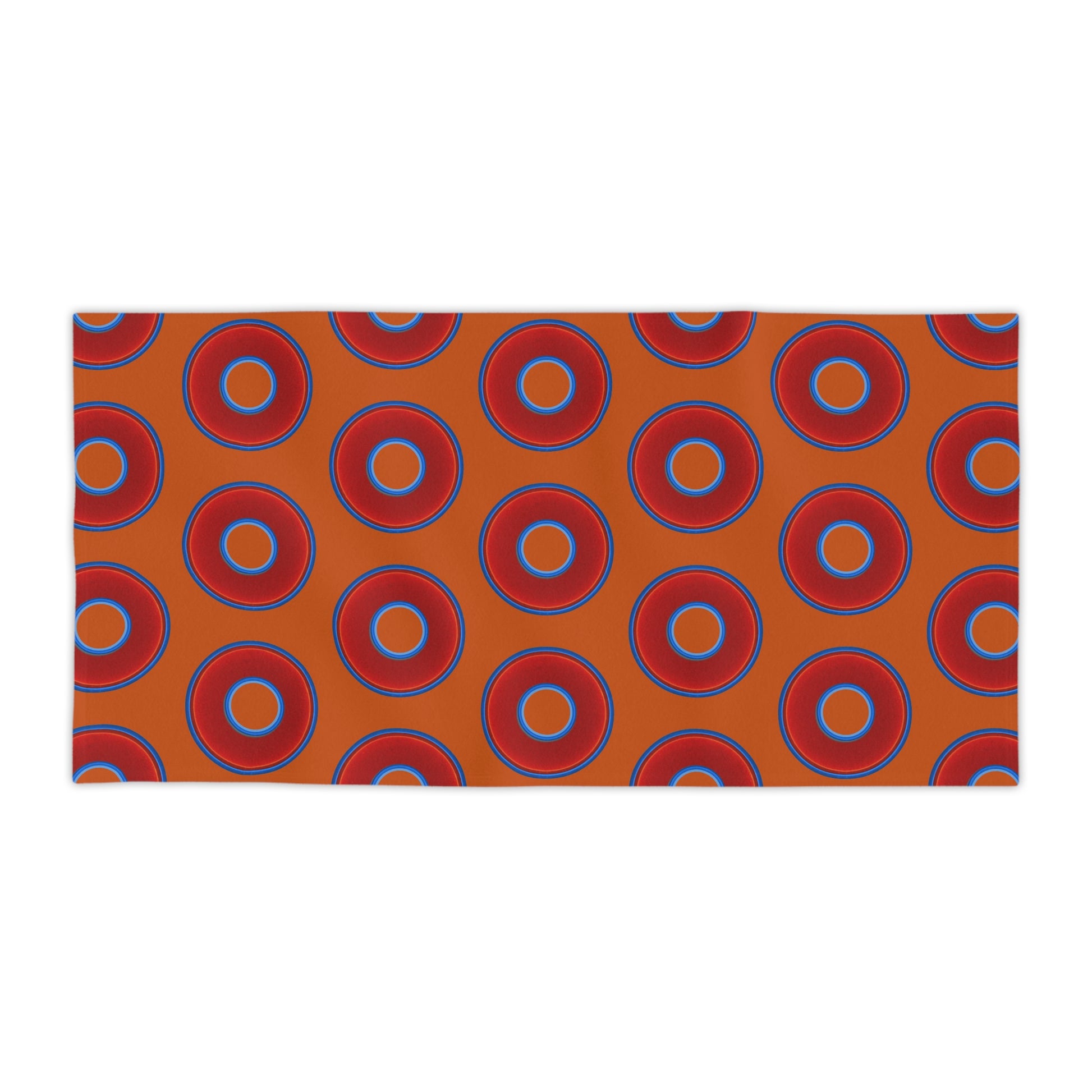 Lumpy Donut Towels - vivid red donuts w/dark orange background