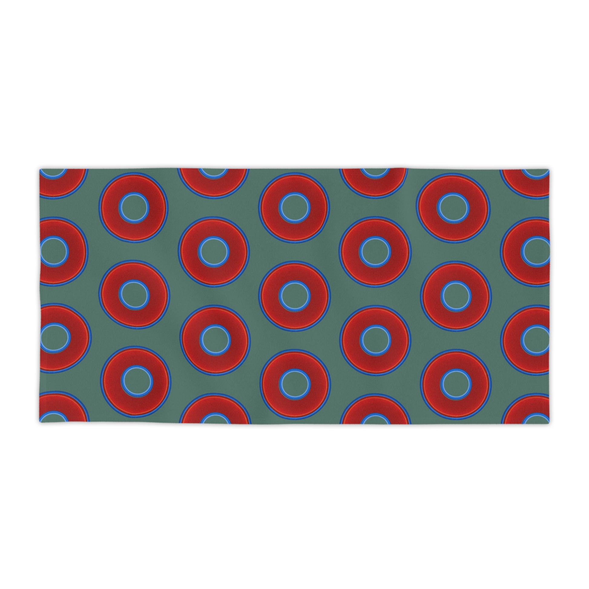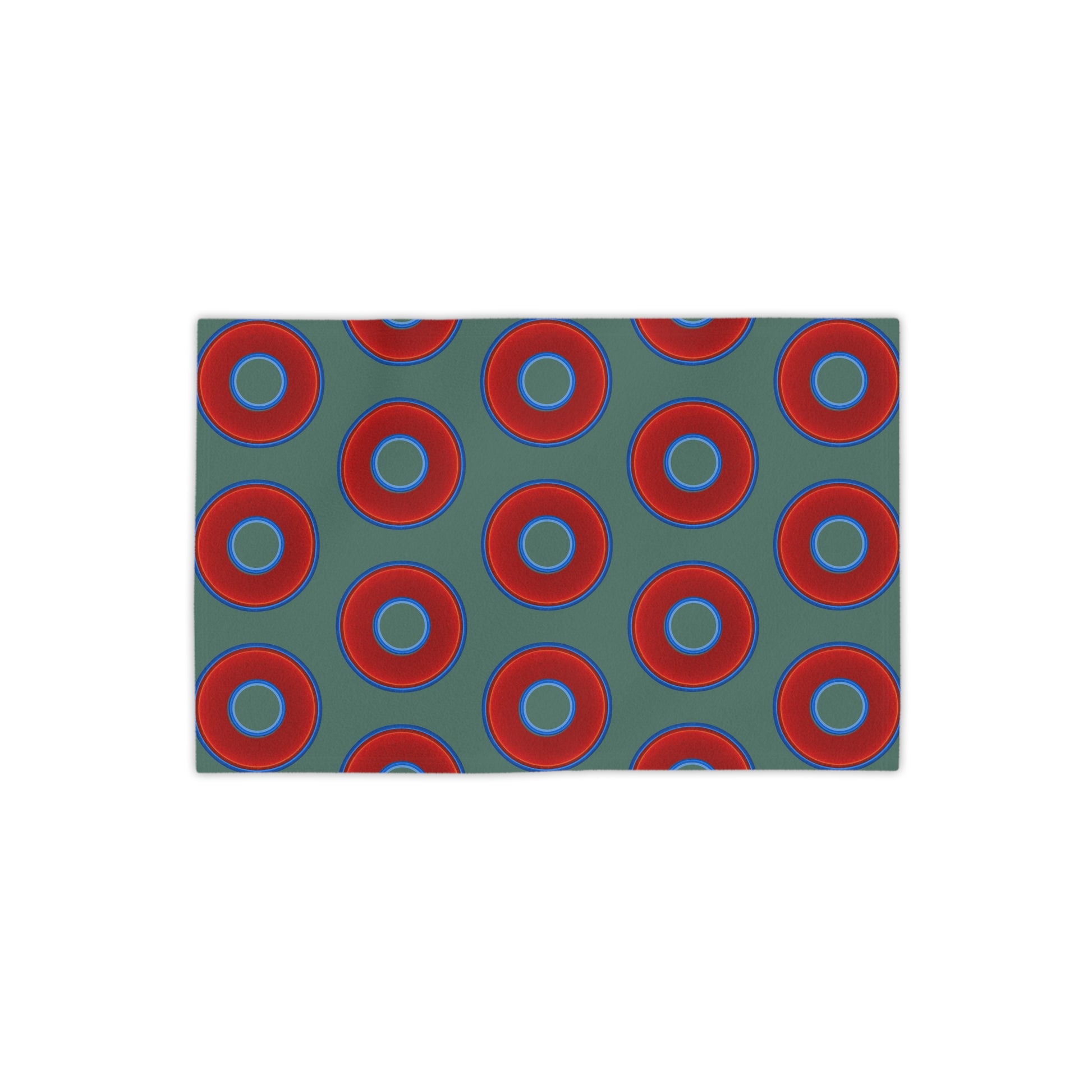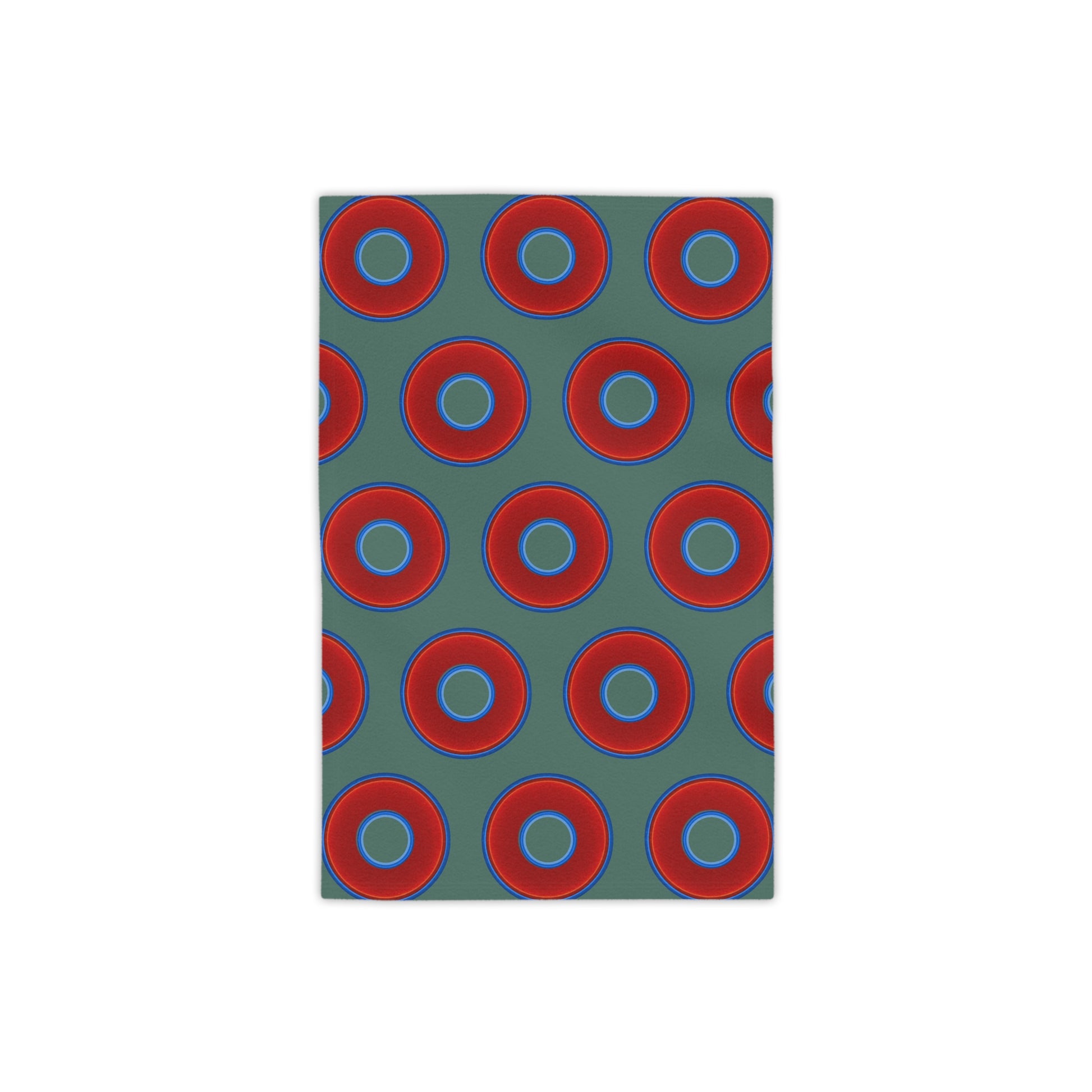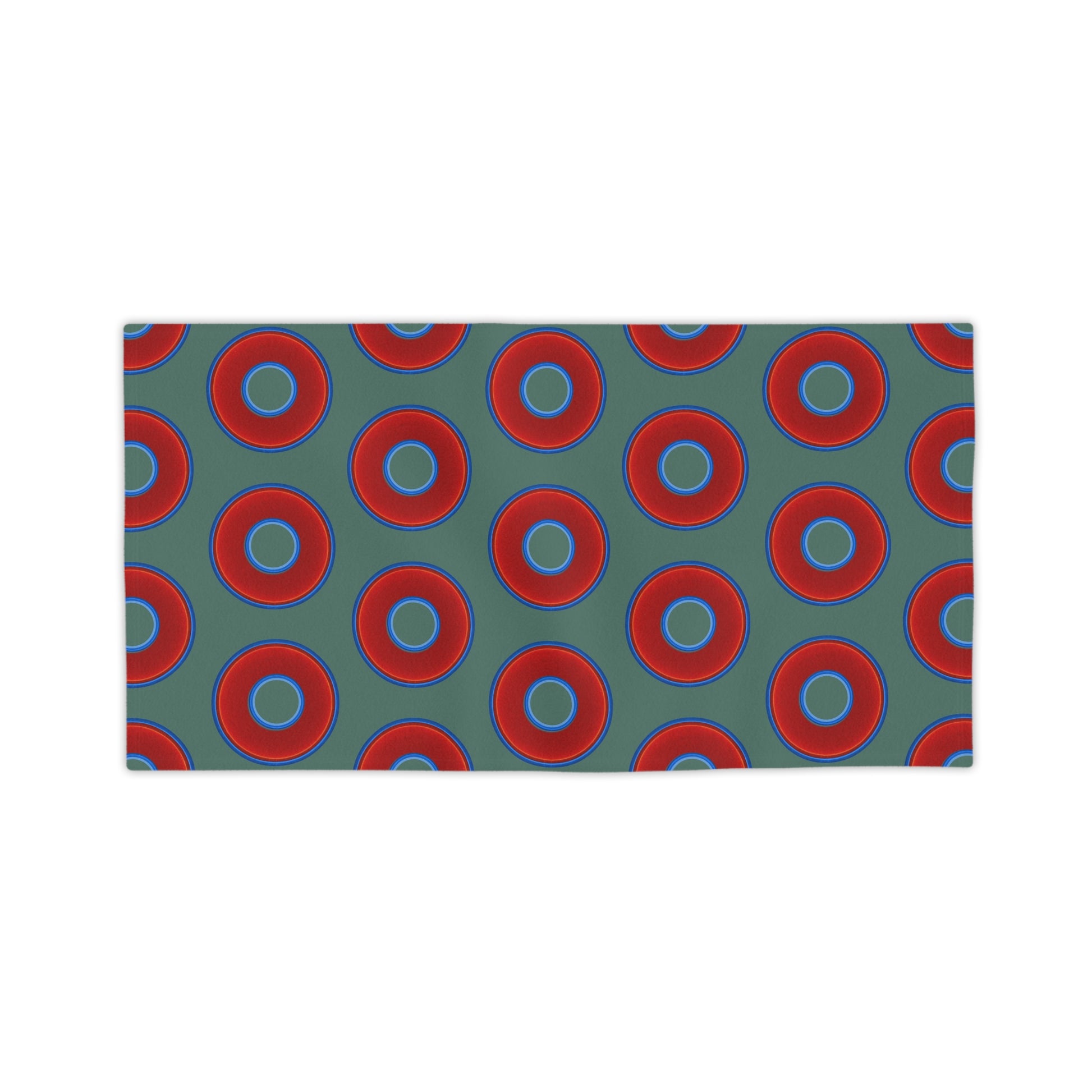 Lumpy Donut Towels - vivid red donuts w/Fenway green background