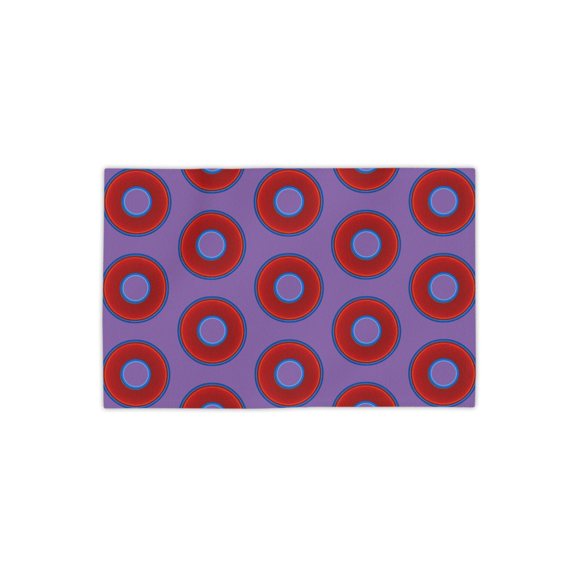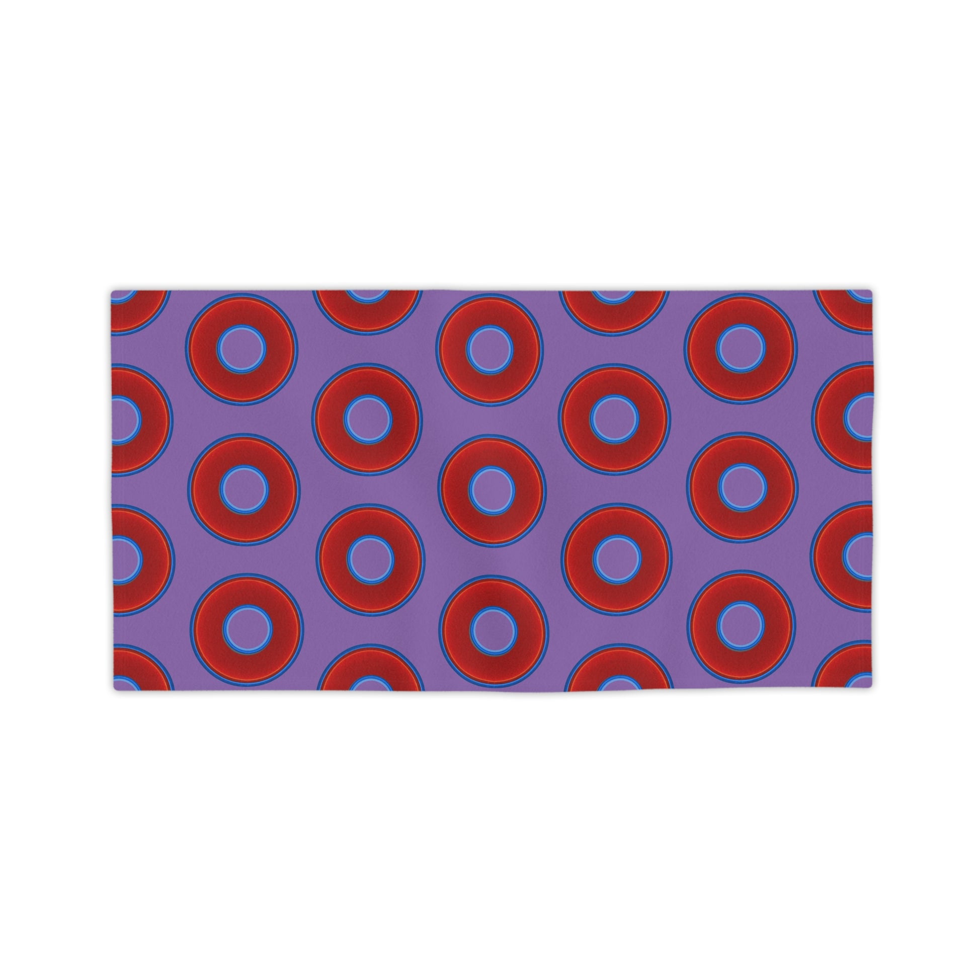 Lumpy Donut Towels - vivid red donuts w/light purple background