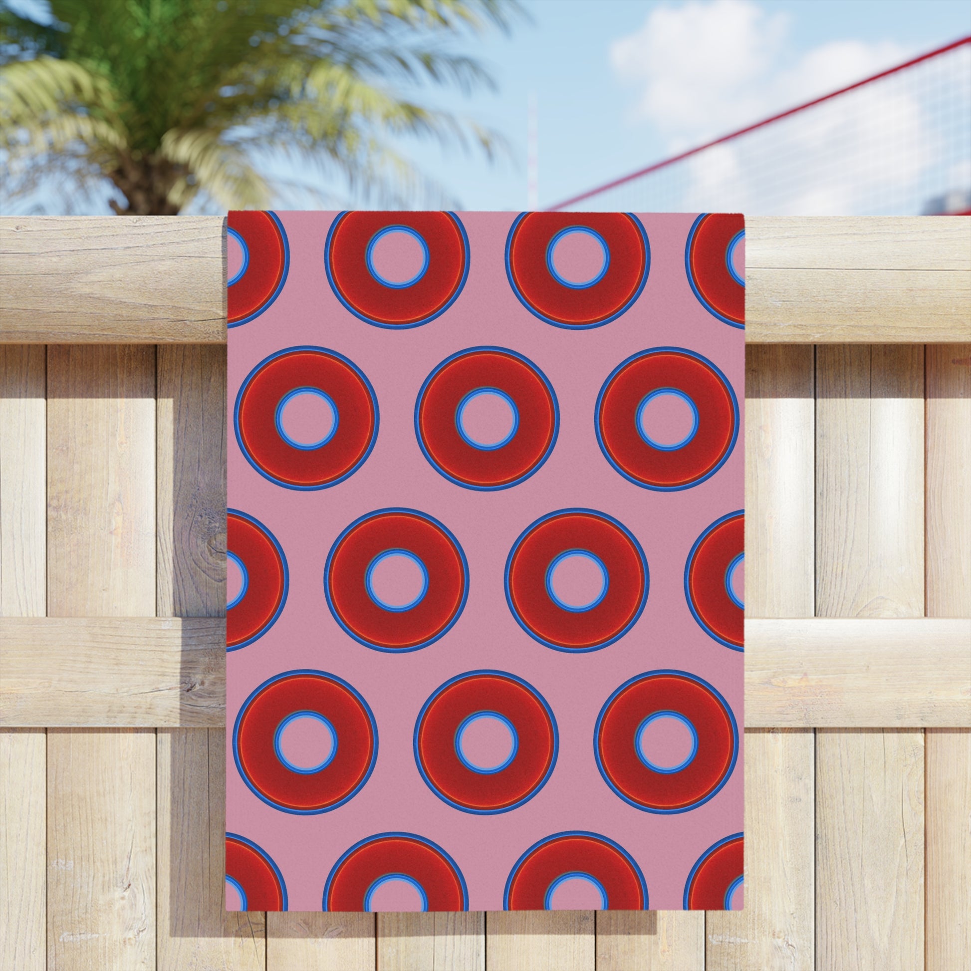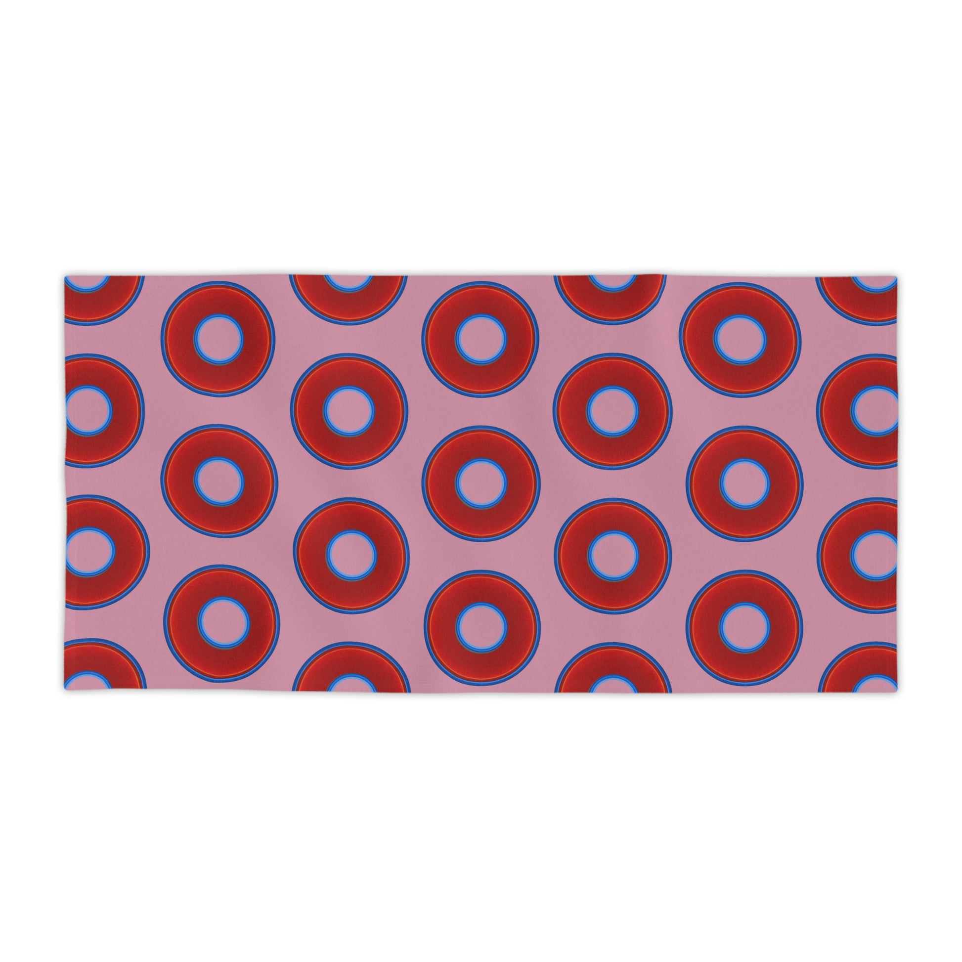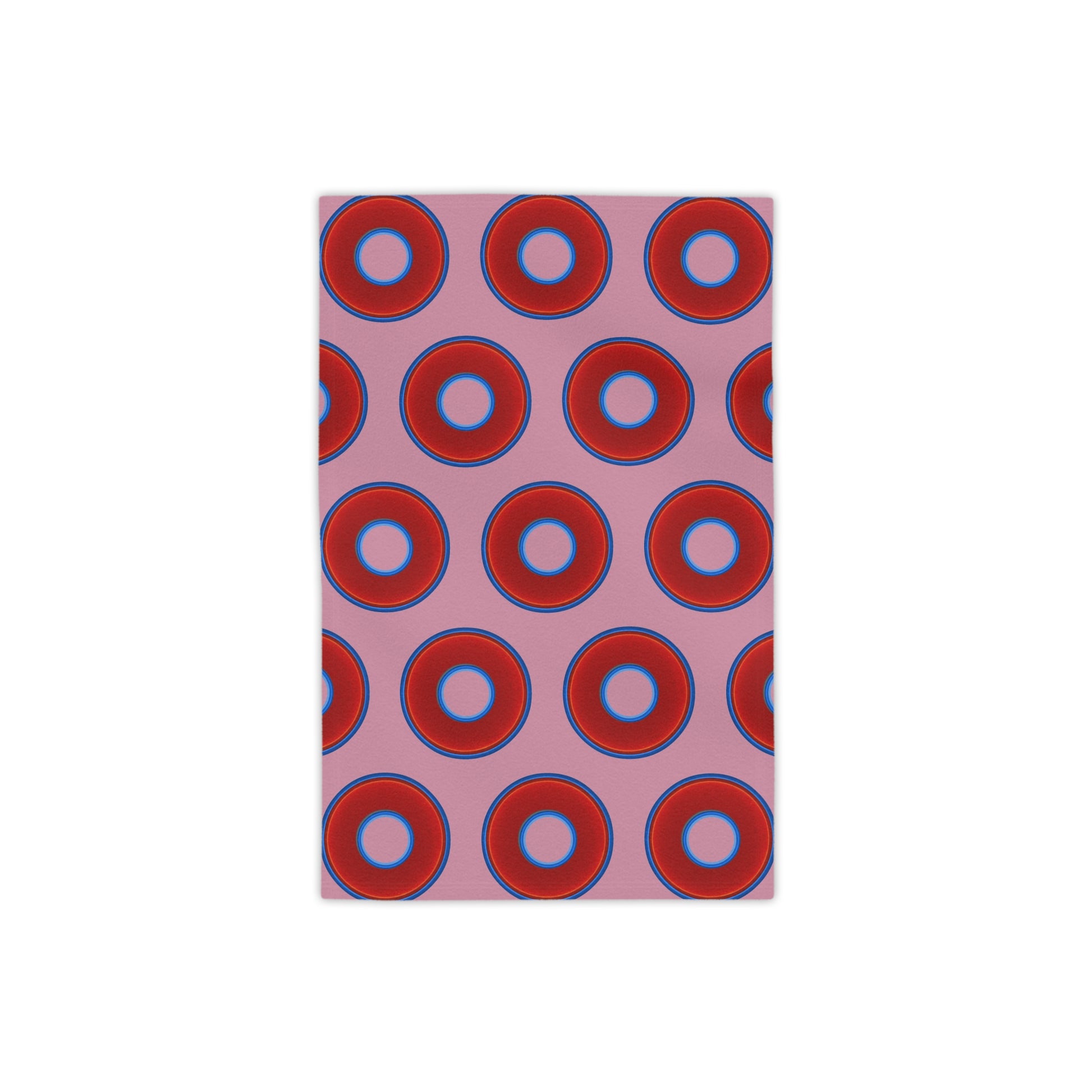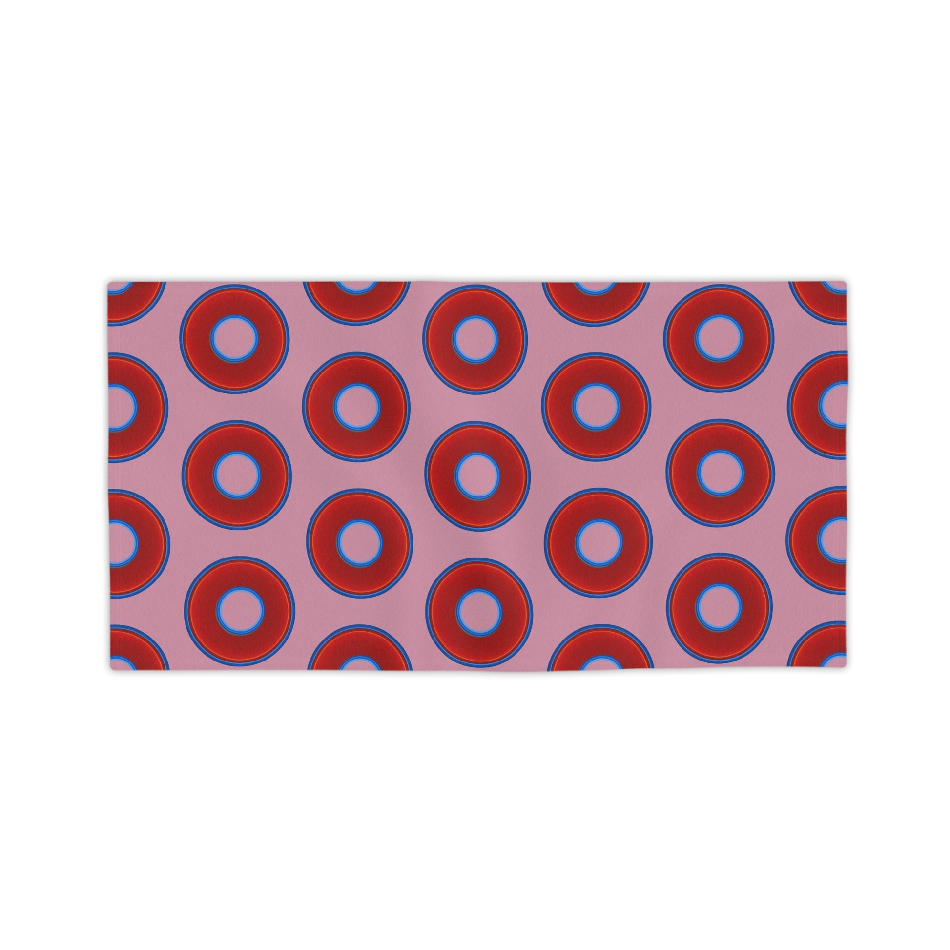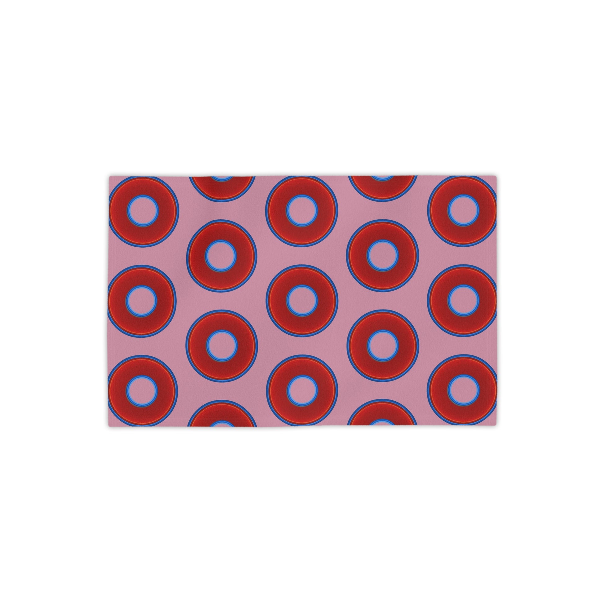 Lumpy Donut Towels - vivid red donuts w/pale magenta background