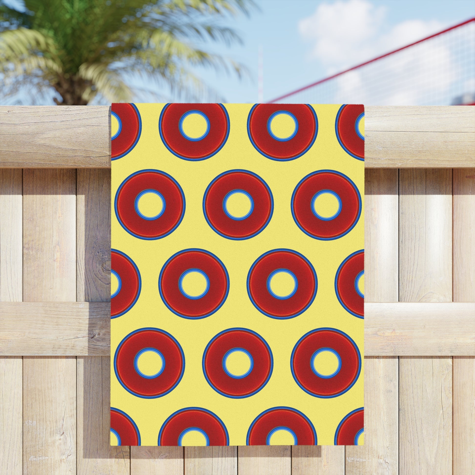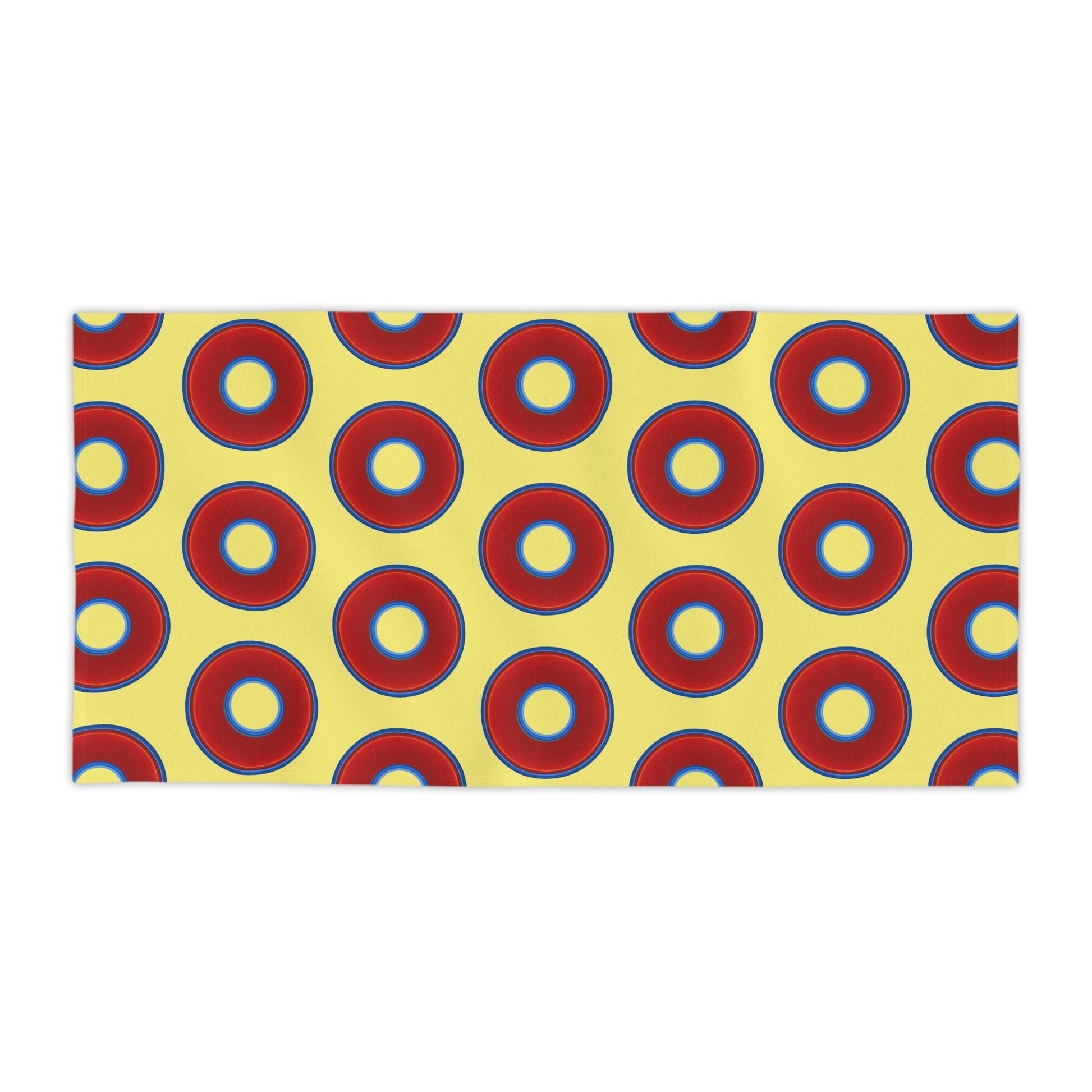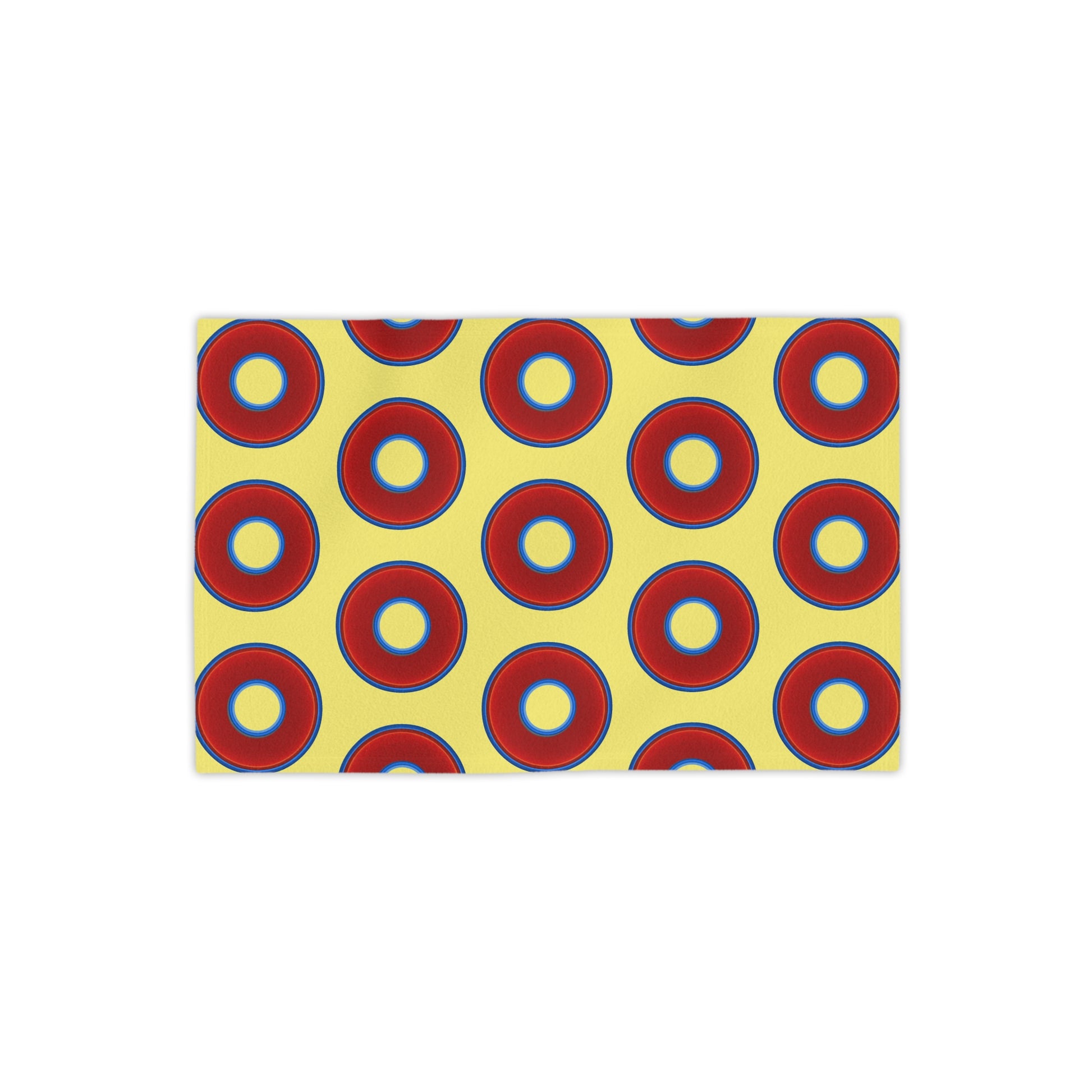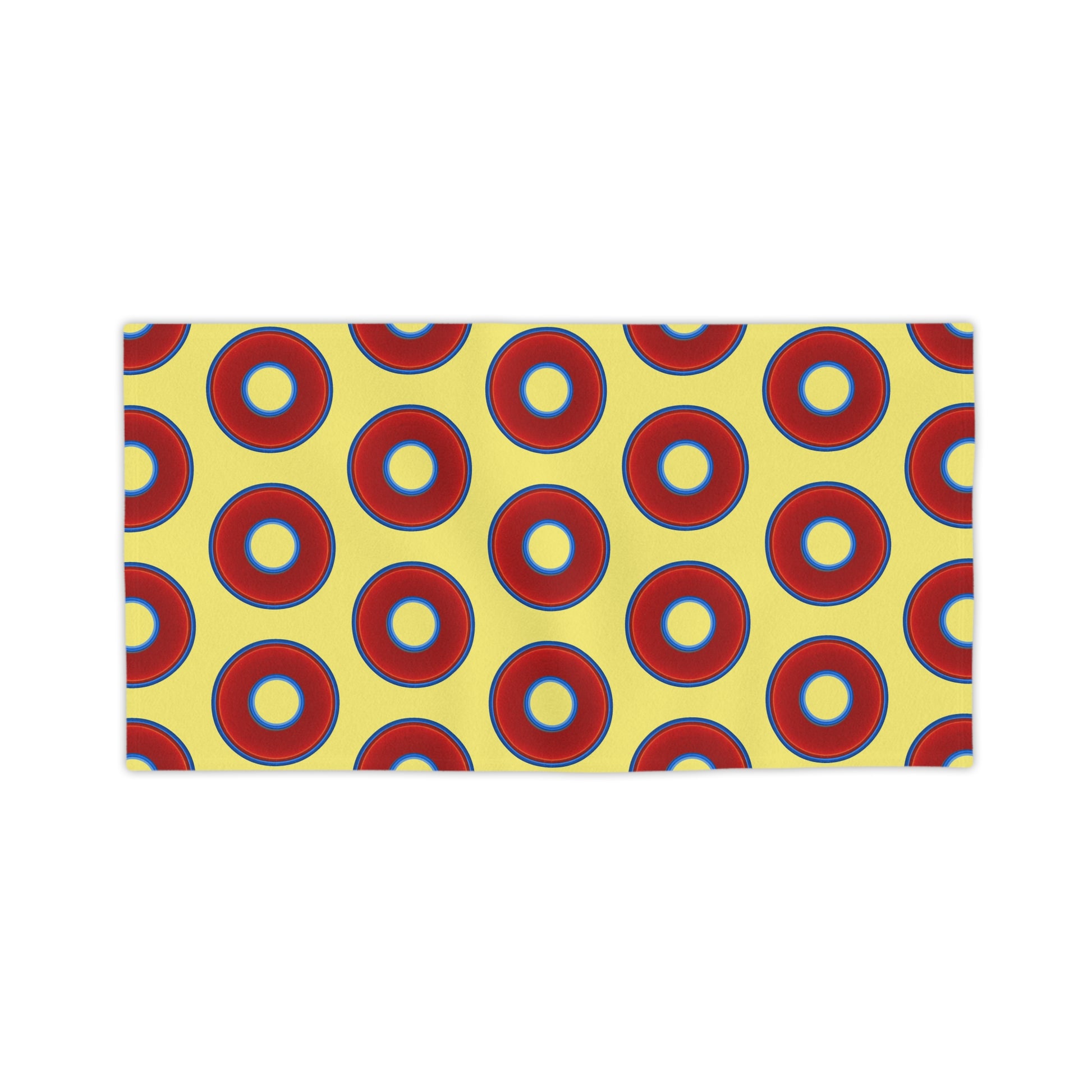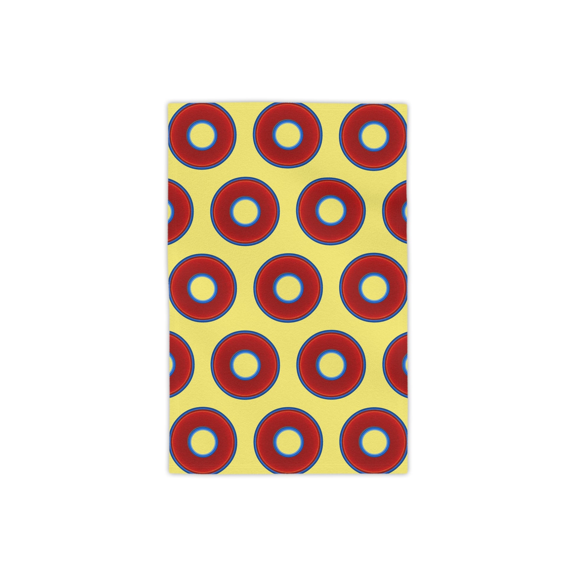 Lumpy Donut Towels - vivid red donuts w/yellow background