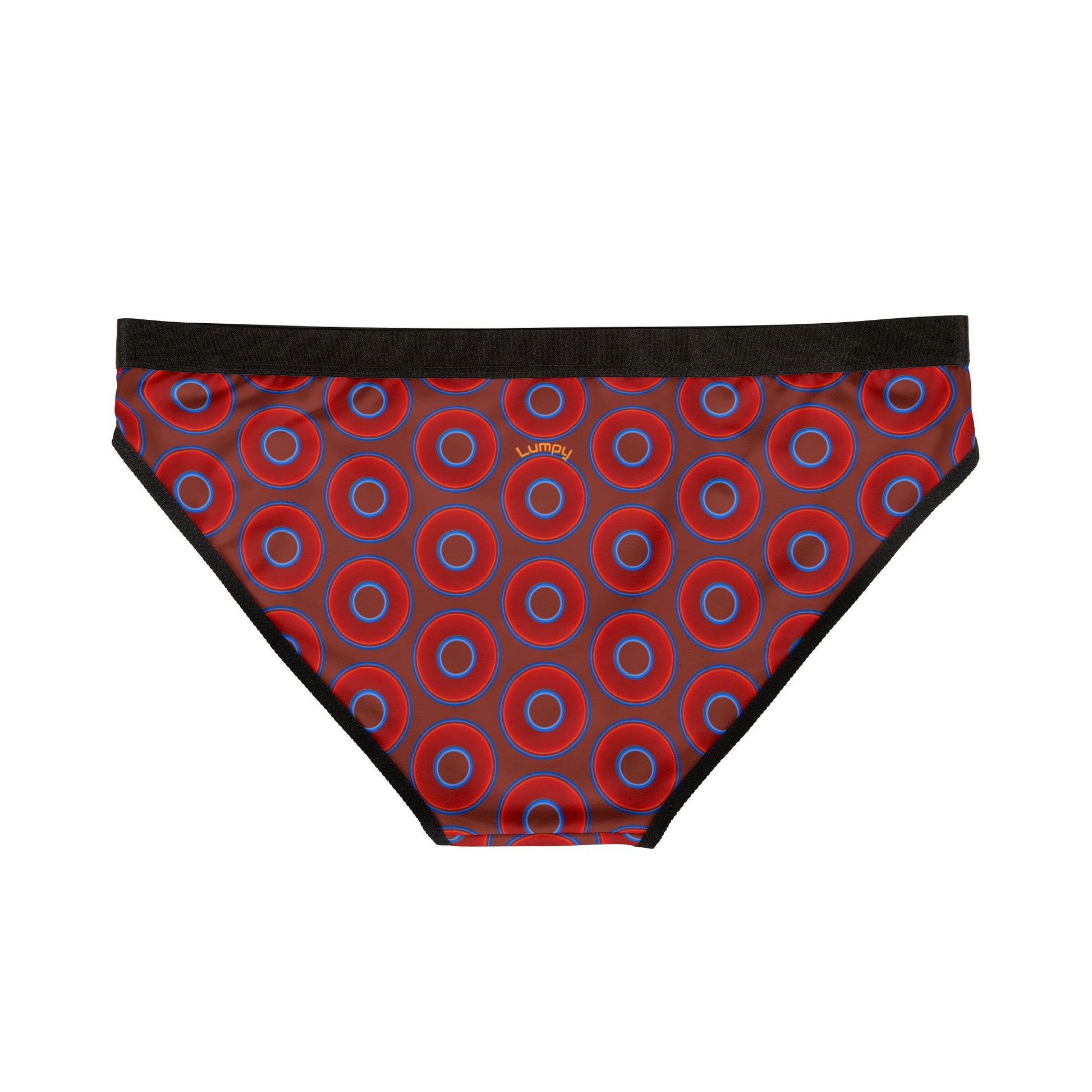 Lumpy Donut Underwear - vivid red donut print w/burnt umber background