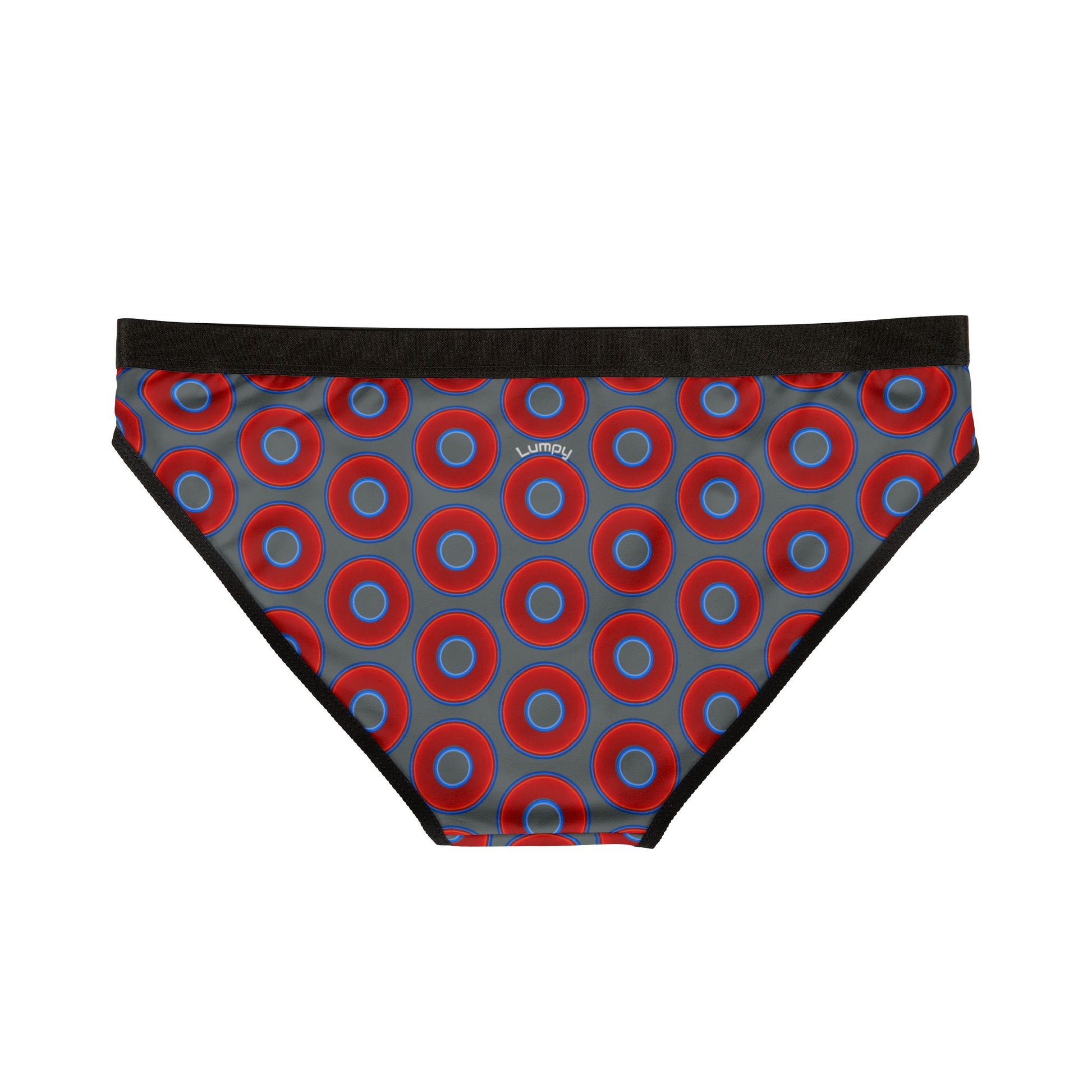 Lumpy Donut Underwear - vivid red donut print w/dark gray background