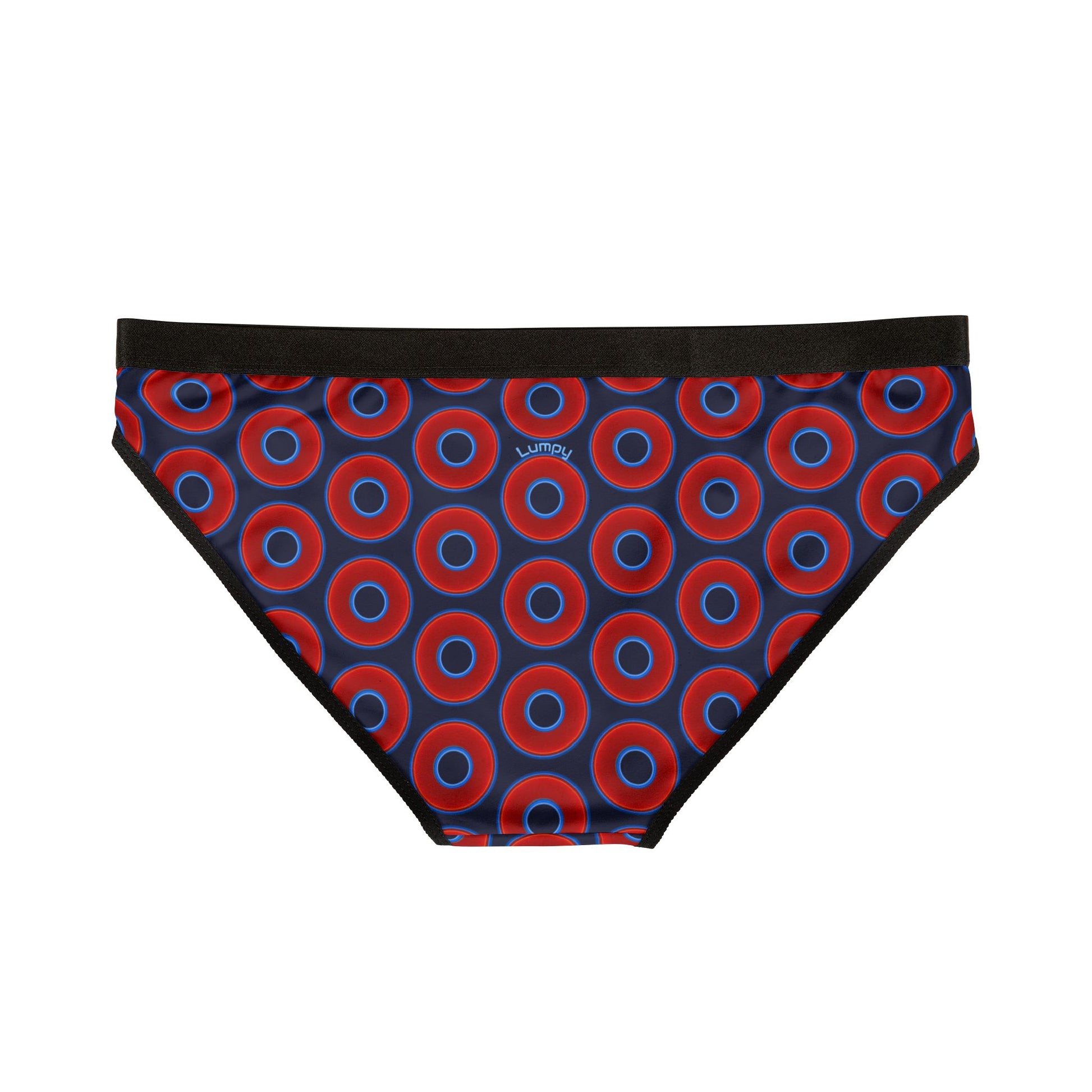 Lumpy Donut Underwear - vivid red donut print w/dark navy blue background
