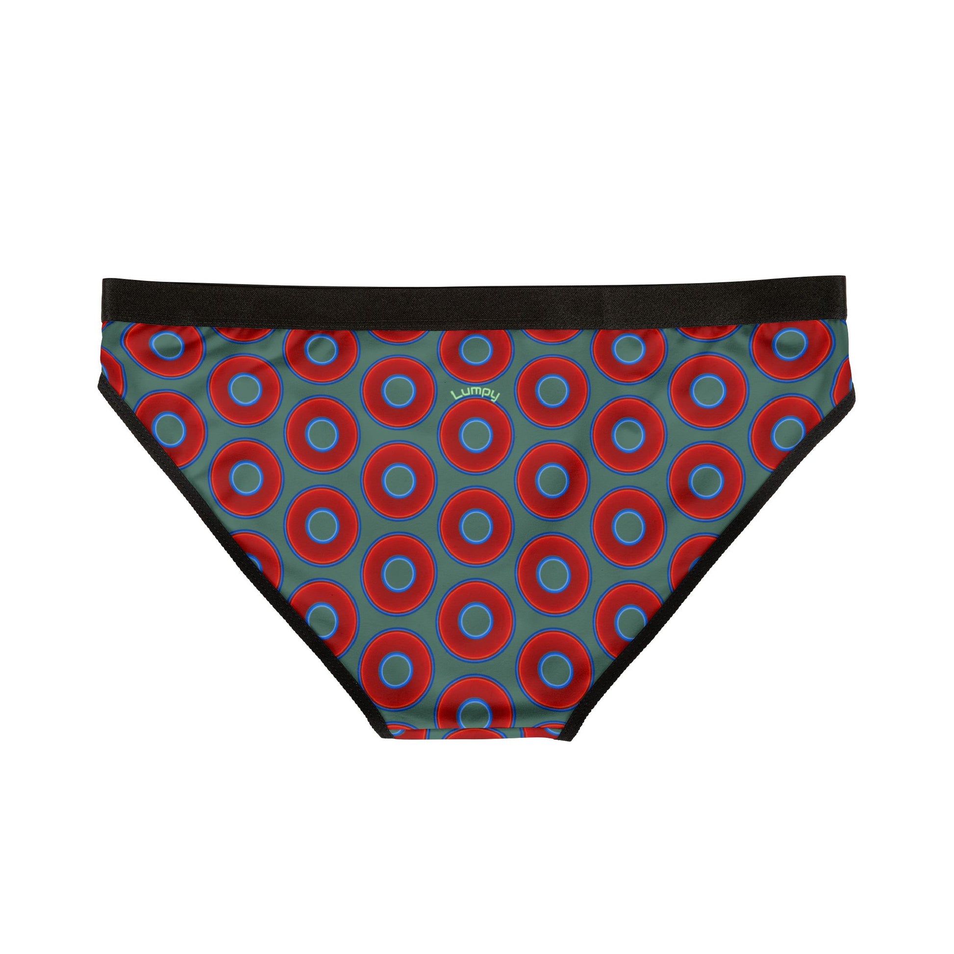 Lumpy Donut Underwear - vivid red donut print w/Fenway green background