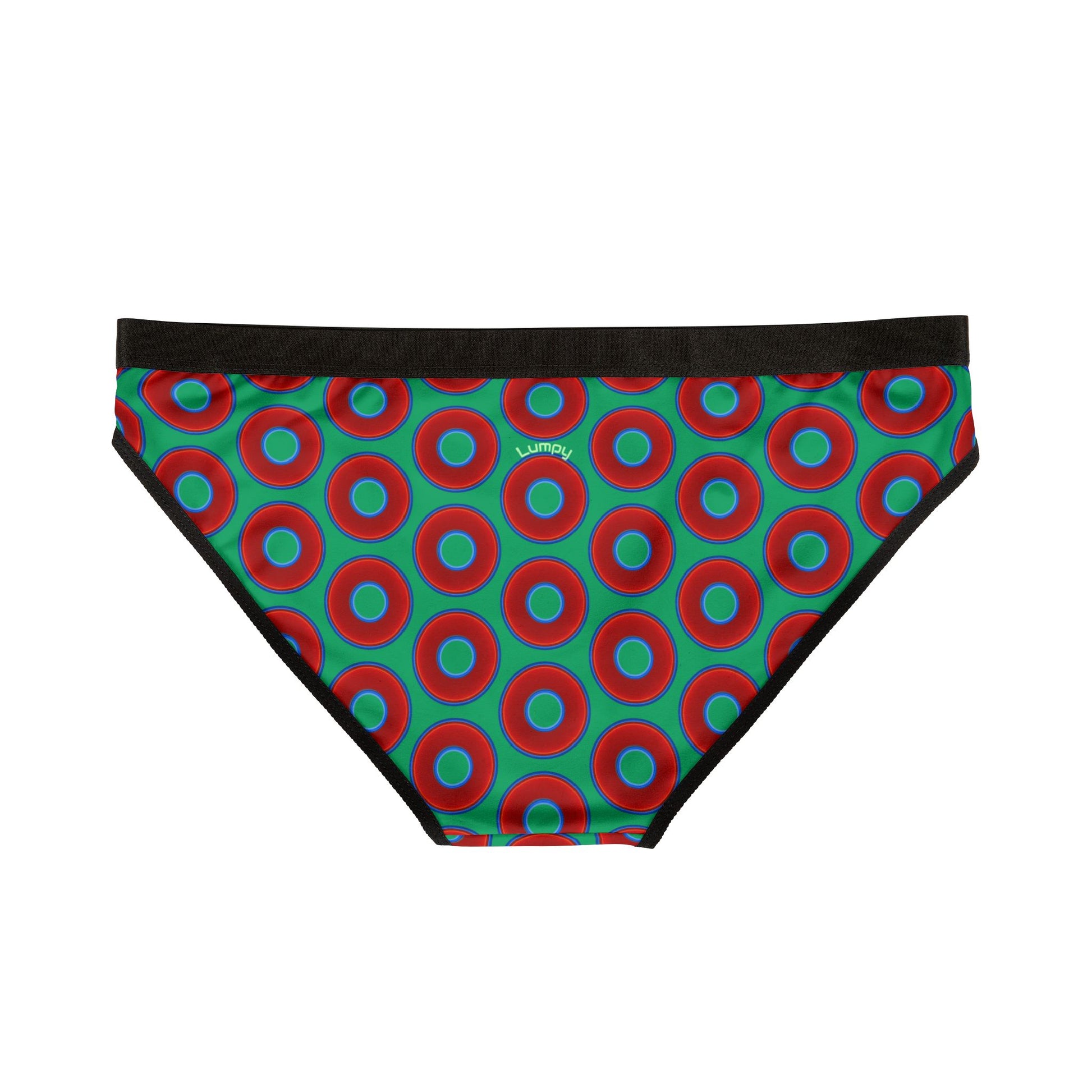 Lumpy Donut Underwear - vivid red donut print w/jade green background
