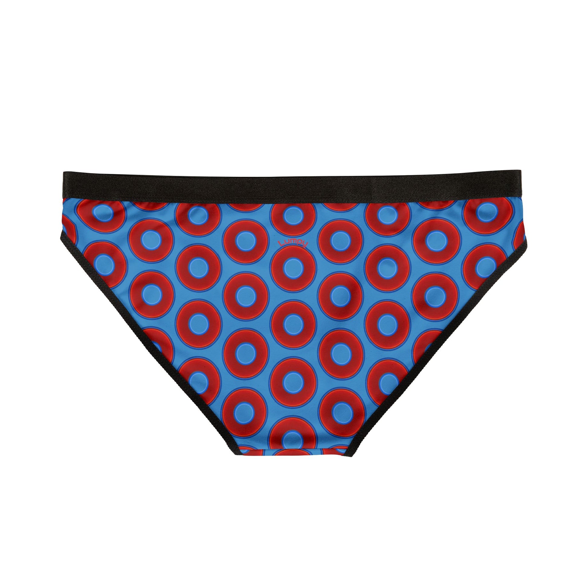 Lumpy Donut Underwear - vivid red donut print w/light steel blue background
