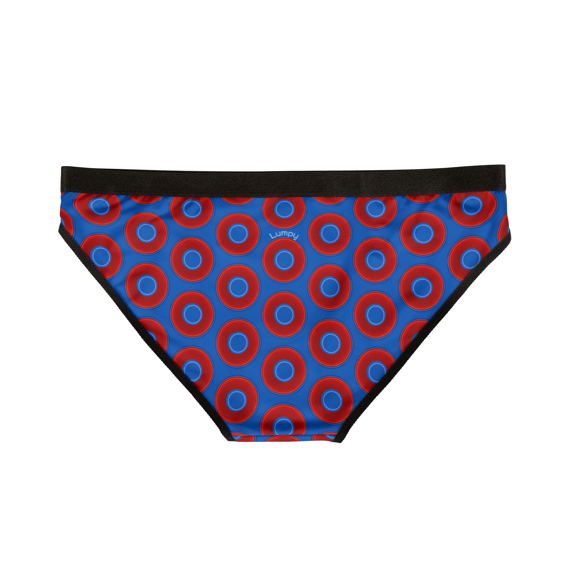 Lumpy Donut Underwear - vivid red donut print w/medium royal blue background