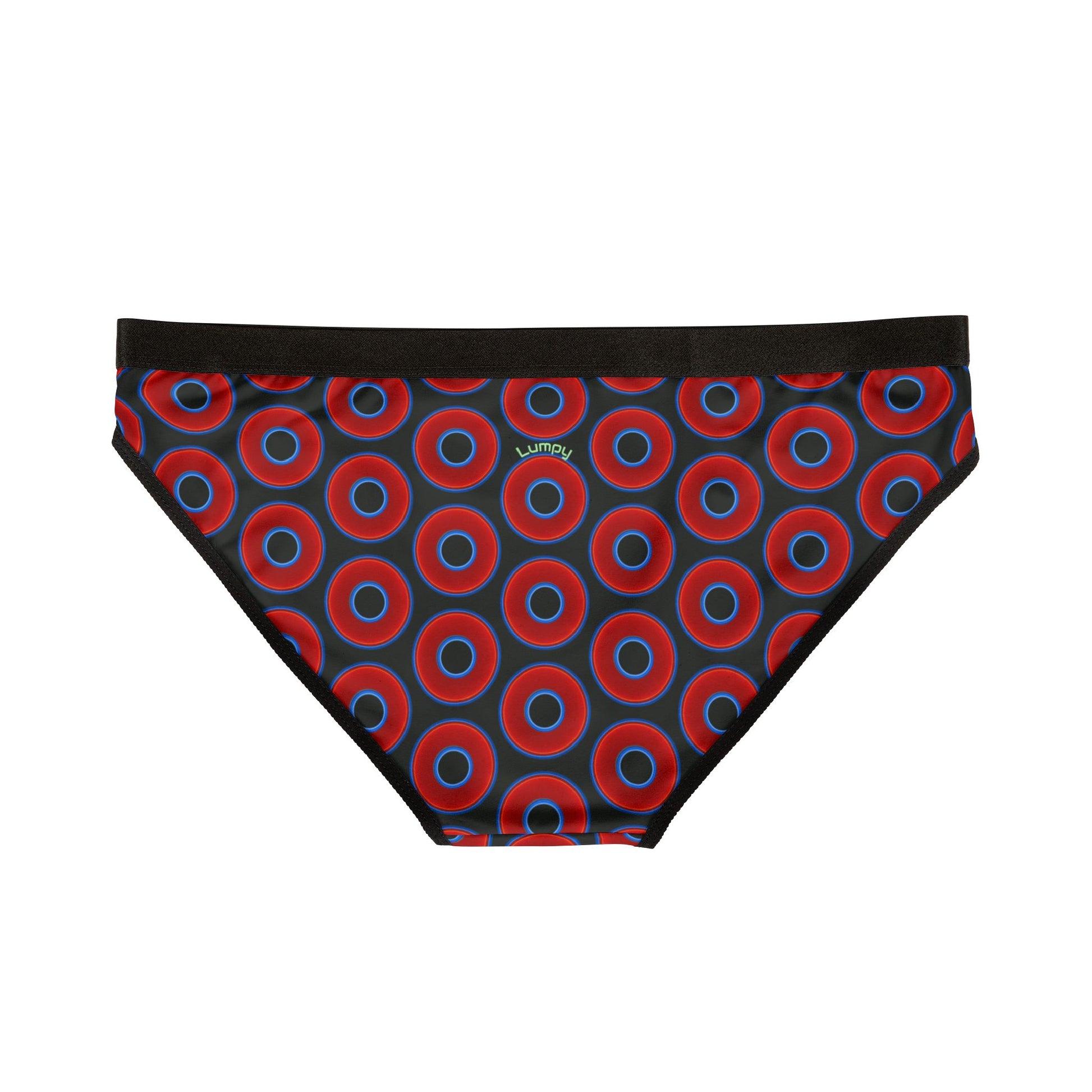 Lumpy Donut Underwear - vivid red donut print w/midnight moss green background