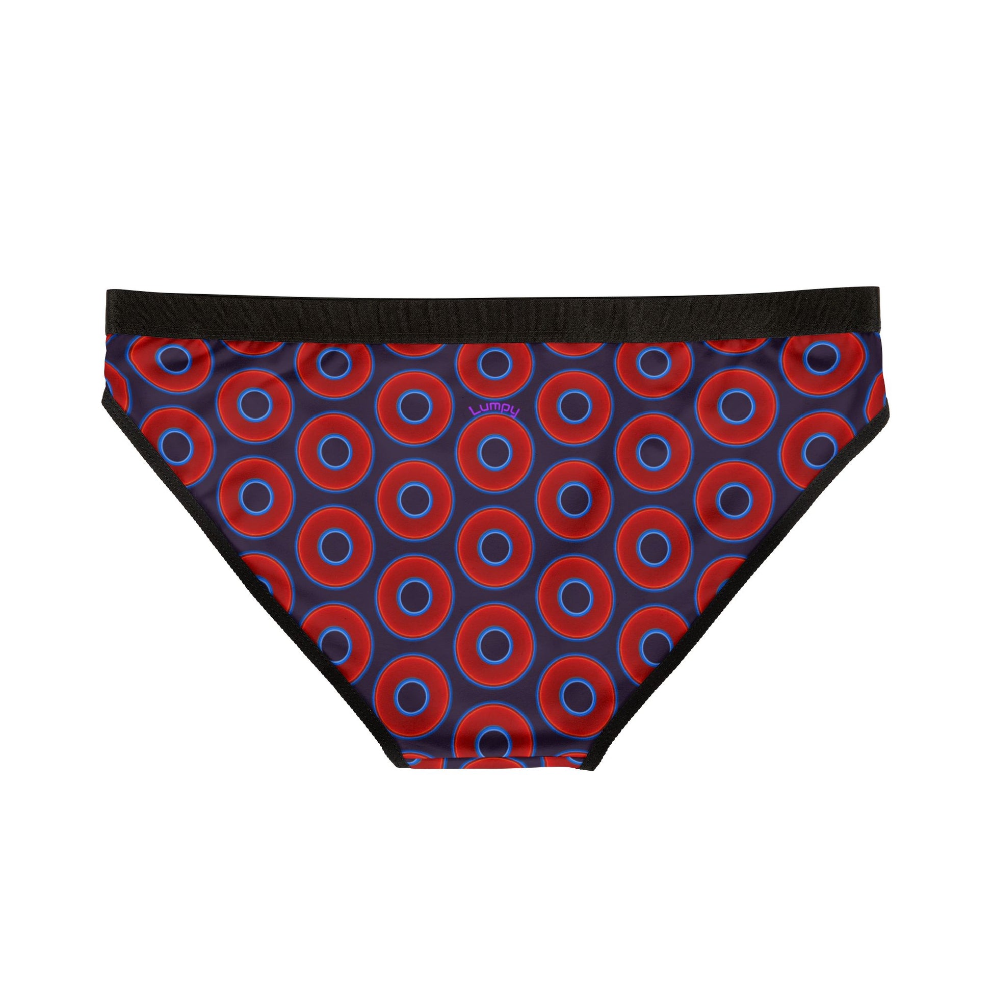 Lumpy Donut Underwear - vivid red donut print w/midnight purple background
