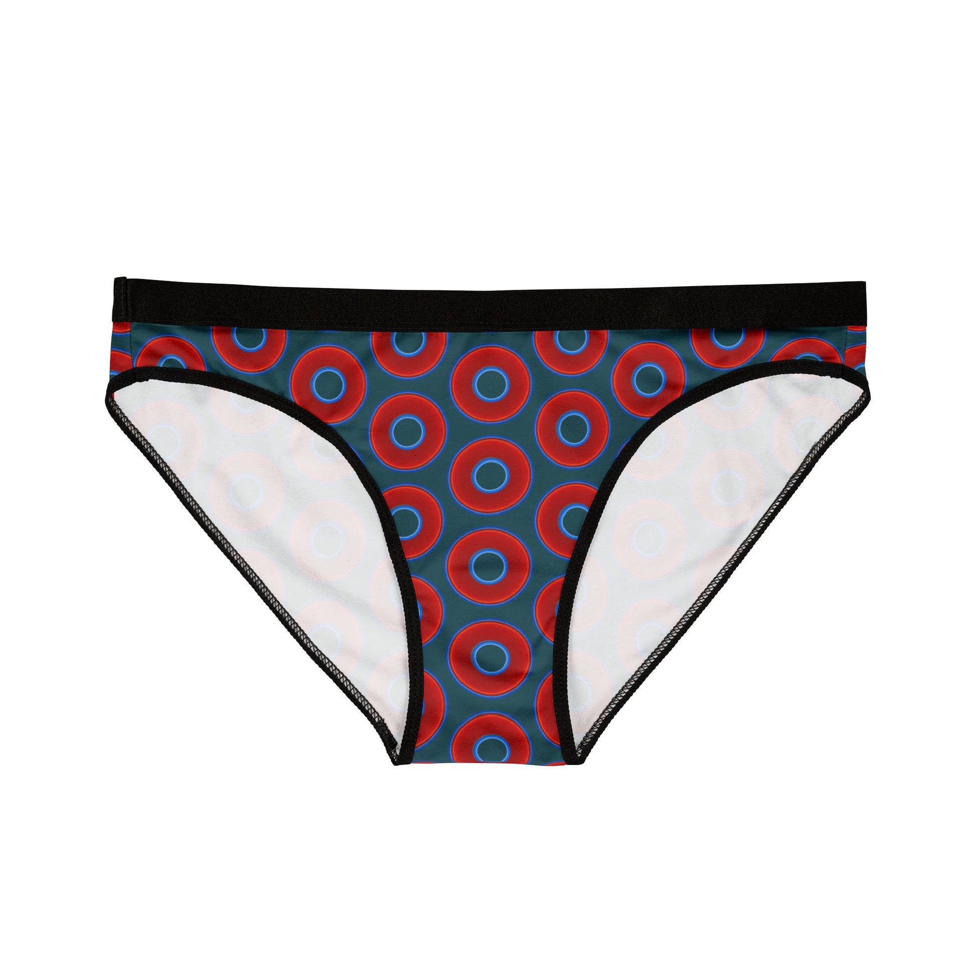 Lumpy Donut Underwear - vivid red donut print w/midnight teal green background