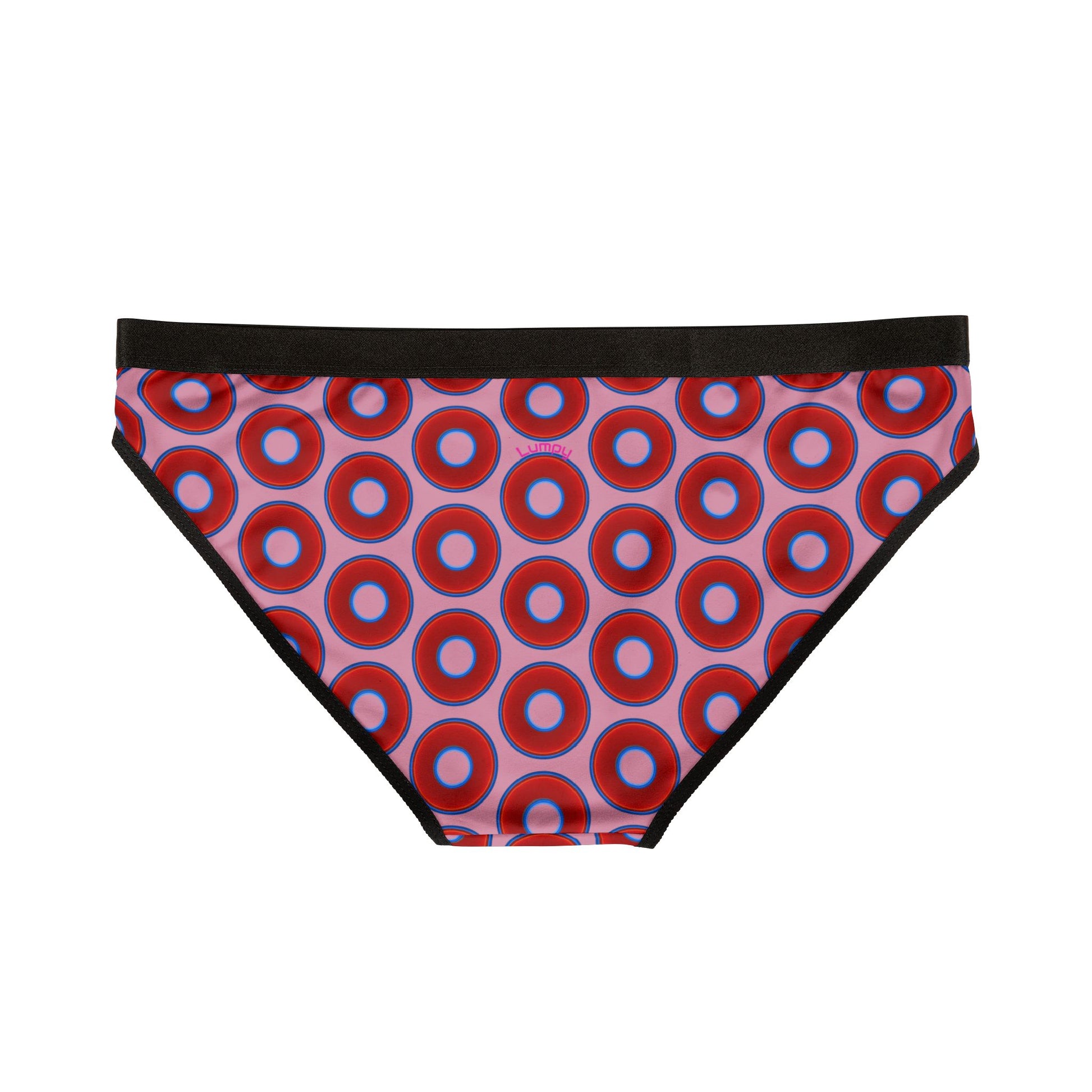 Lumpy Donut Underwear - vivid red donut print w/pale magenta background