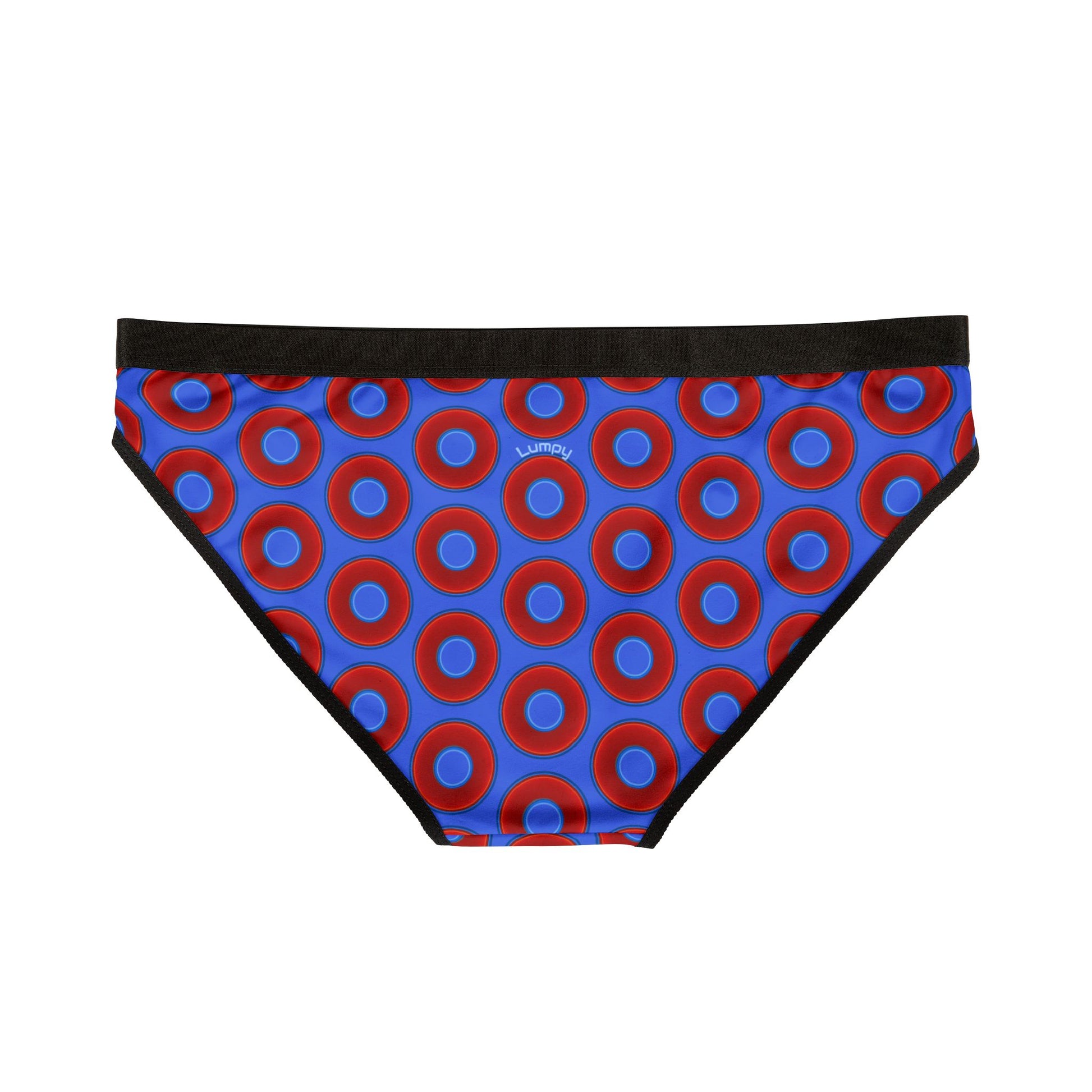 Lumpy Donut Underwear - vivid red donut print w/royal blue background