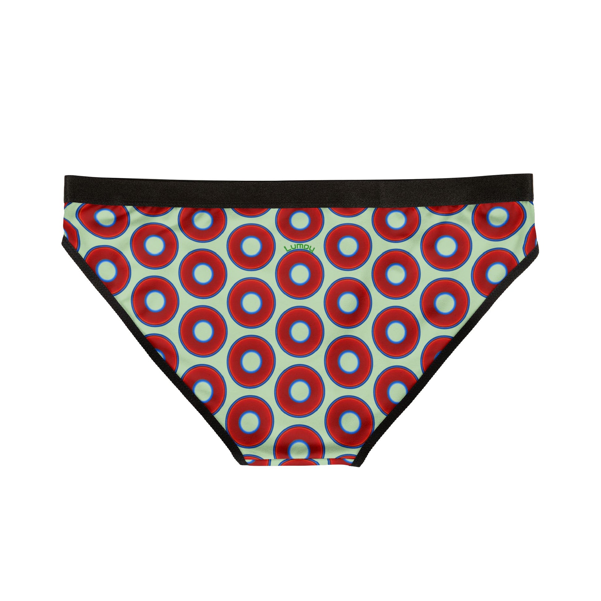 Lumpy Donut Underwear - vivid red donut print w/seafoam green background