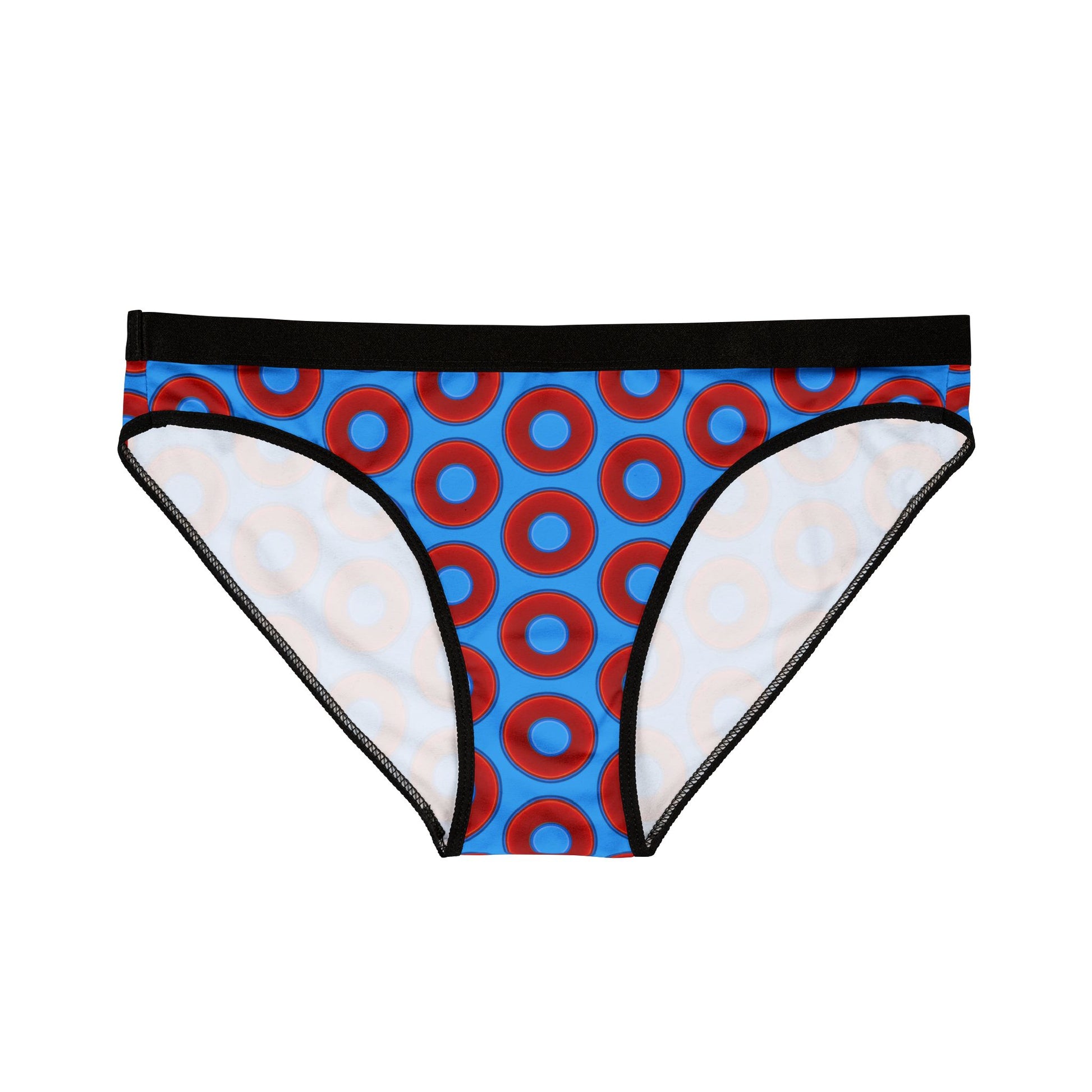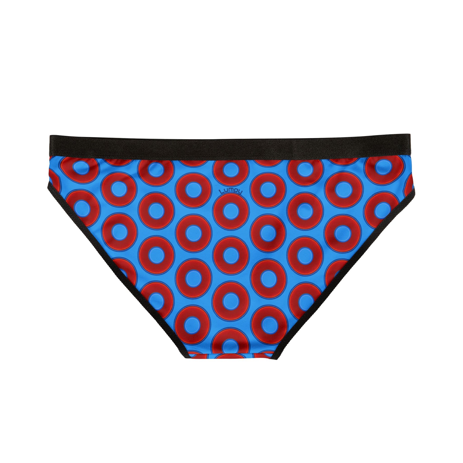 Lumpy Donut Underwear - vivid red donut print w/sky royal blue background