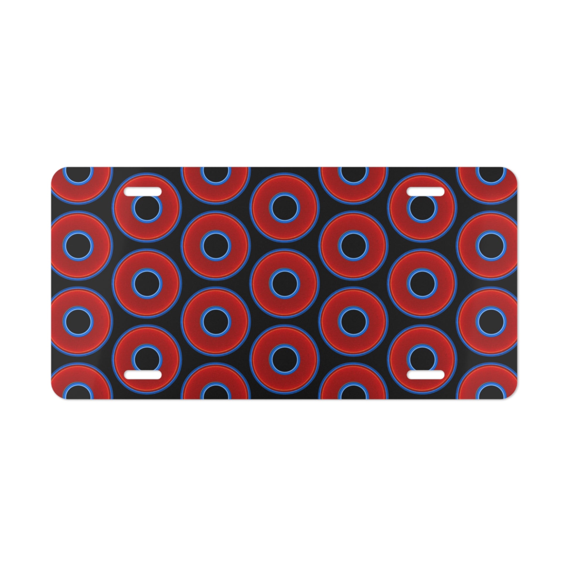 Lumpy Donut Vanity Plate - red vivid donut print w/black background